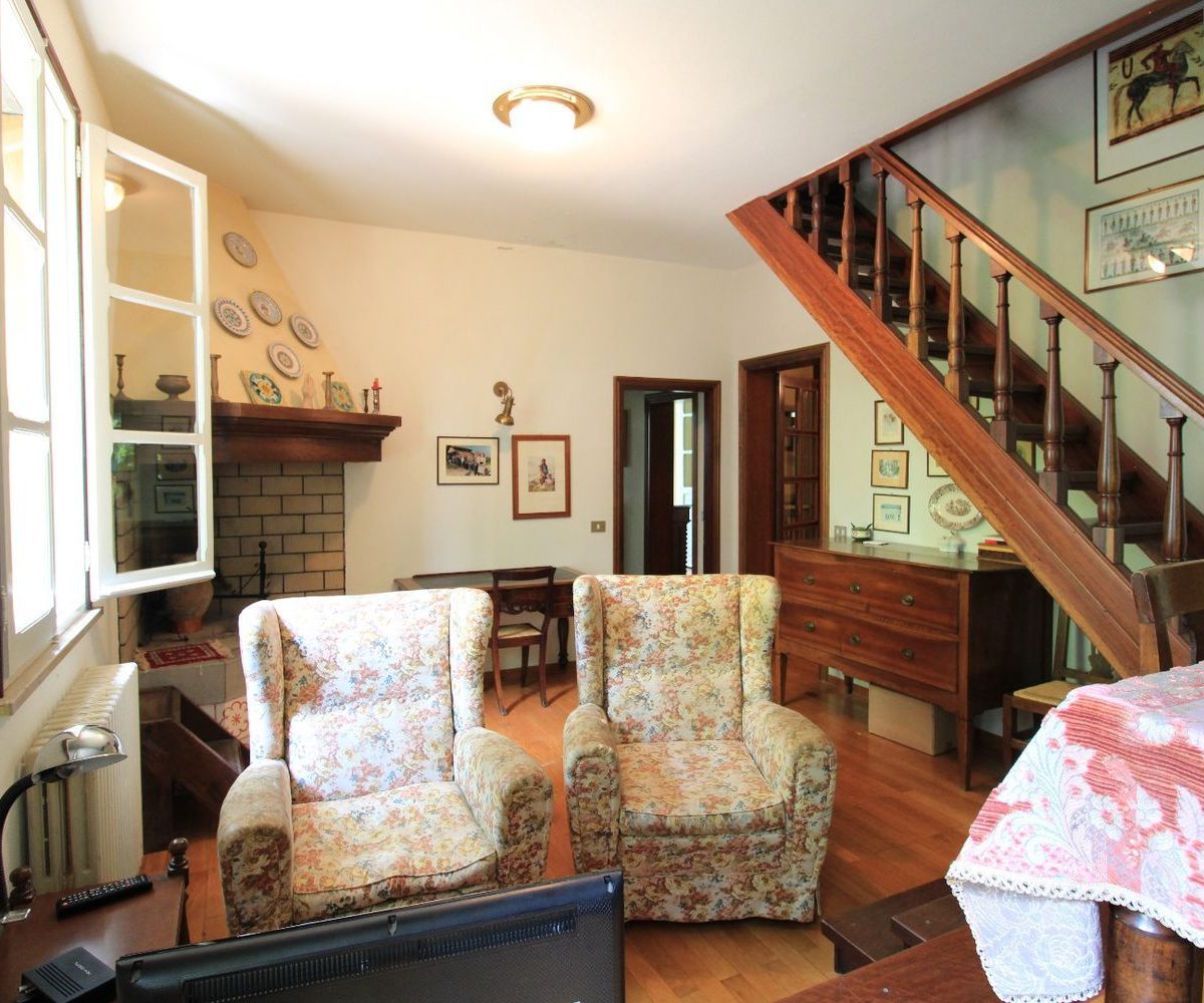 Al piano terra si trovano un ampio ingresso, un comodo ripostiglio, ampia cucina con dispensa collegata ed affacciata ad un ampio porticato abitabile con vista sul verde, sala da pranzo sempre con accesso al portico, ampio soggiorno con camino ed infine bagno che serve il piano.