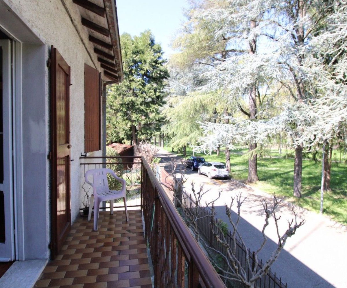Al primo piano, di circa 130 mq, raggiungibile da scala interna, ingresso su ampio corridoio arredabile, cucinotto, sala da pranzo, balcone con vista sul parco, disimpegno notte, tre camere matrimoniali e bagno finestrato.