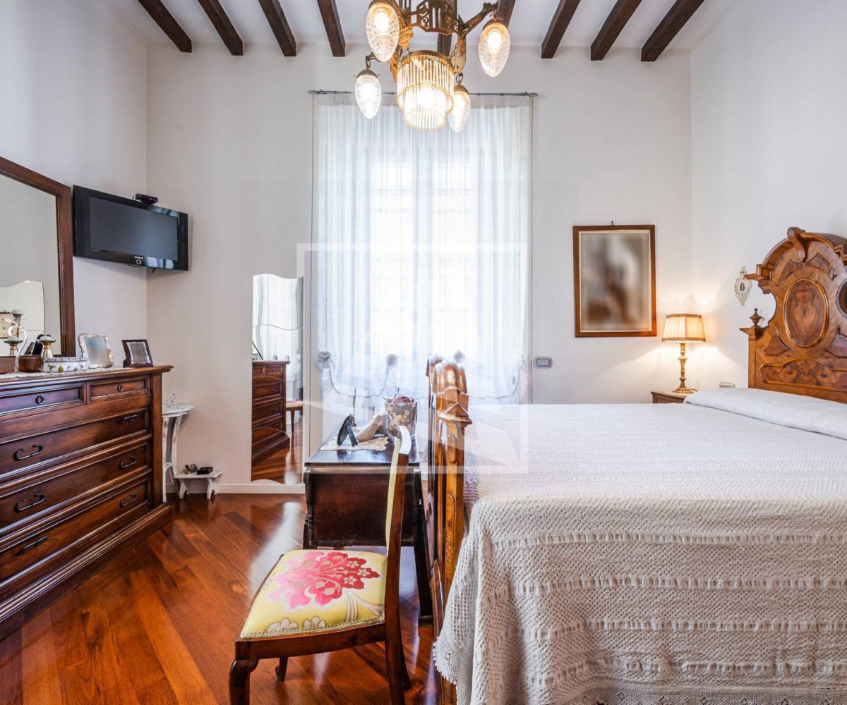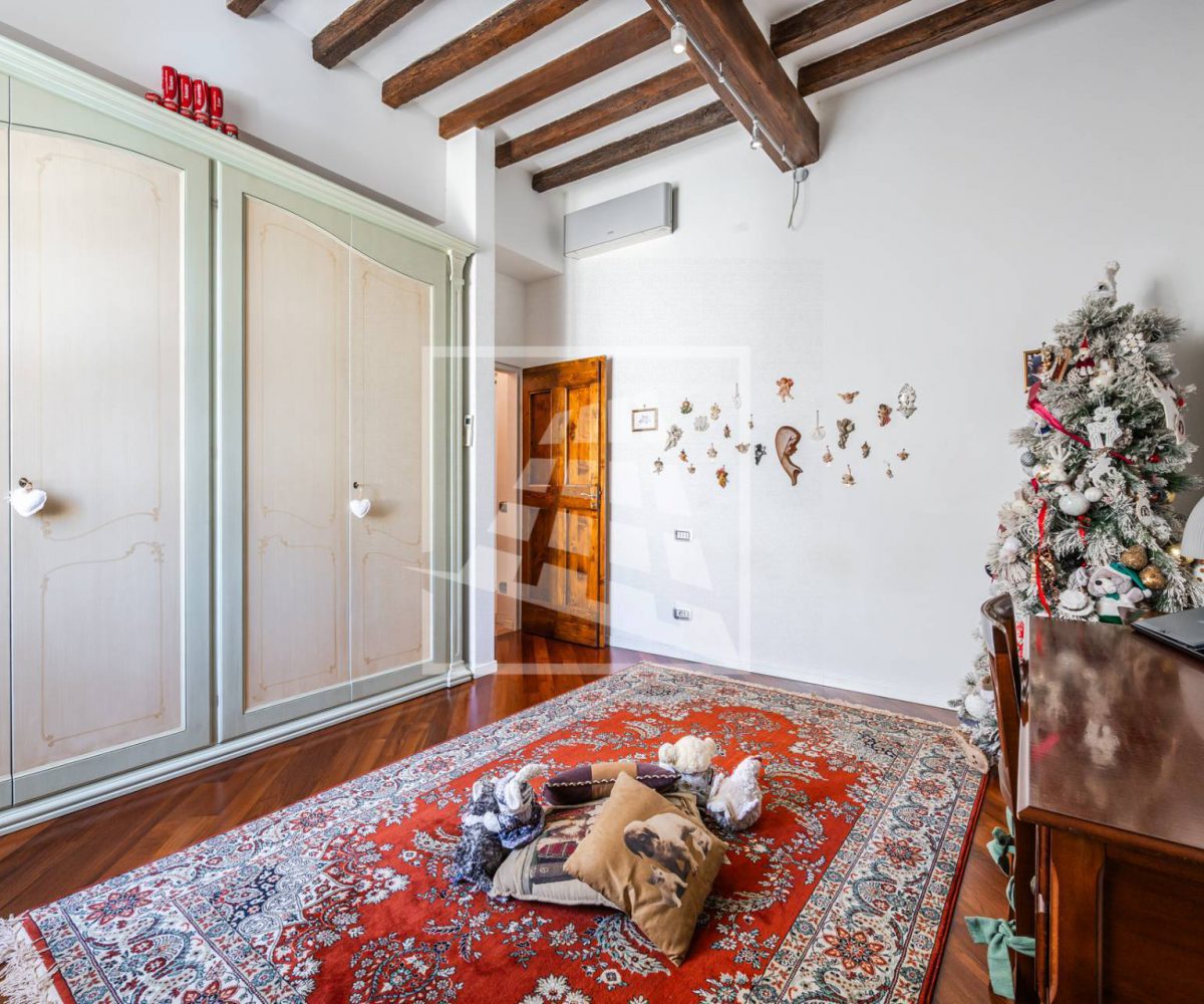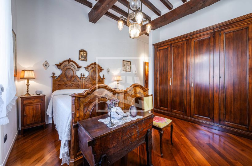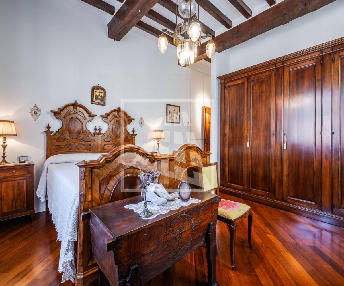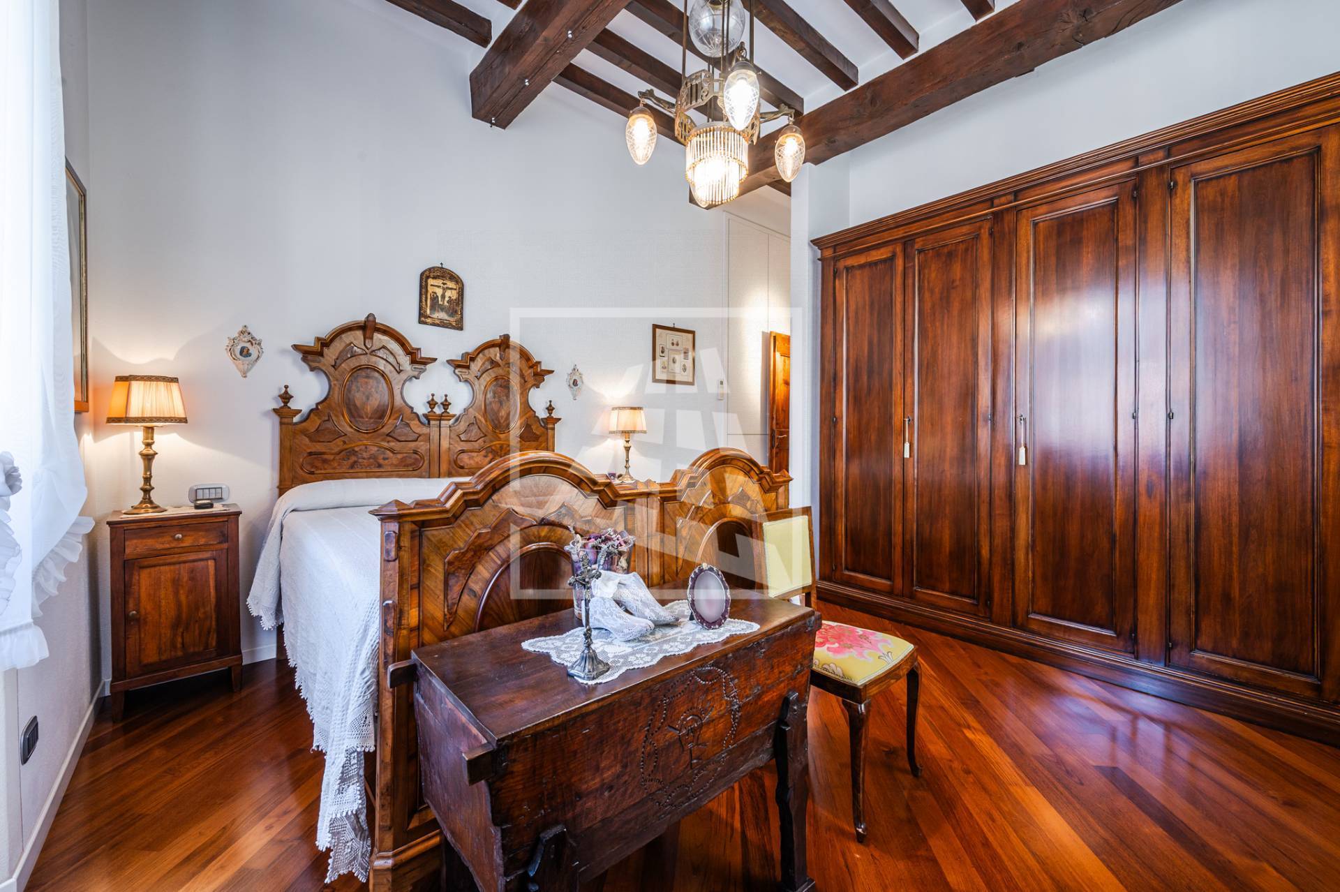 La zona notte ospita due camere da letto matrimoniali, di cui una dallo stile classico con travi a vista e pavimento in legno massello, oltre ad un bagno raffinato con doppio lavabo, ampie finestre con vetri decorati in stile liberty e doccia spaziosa.