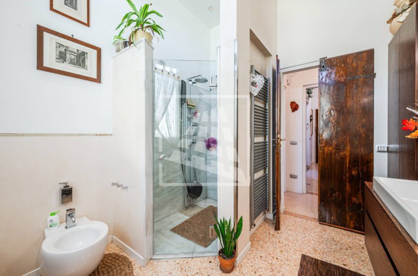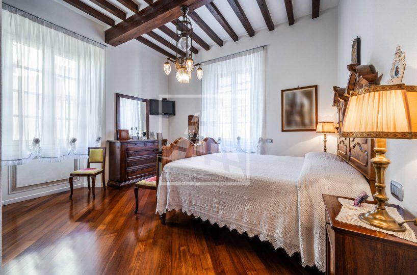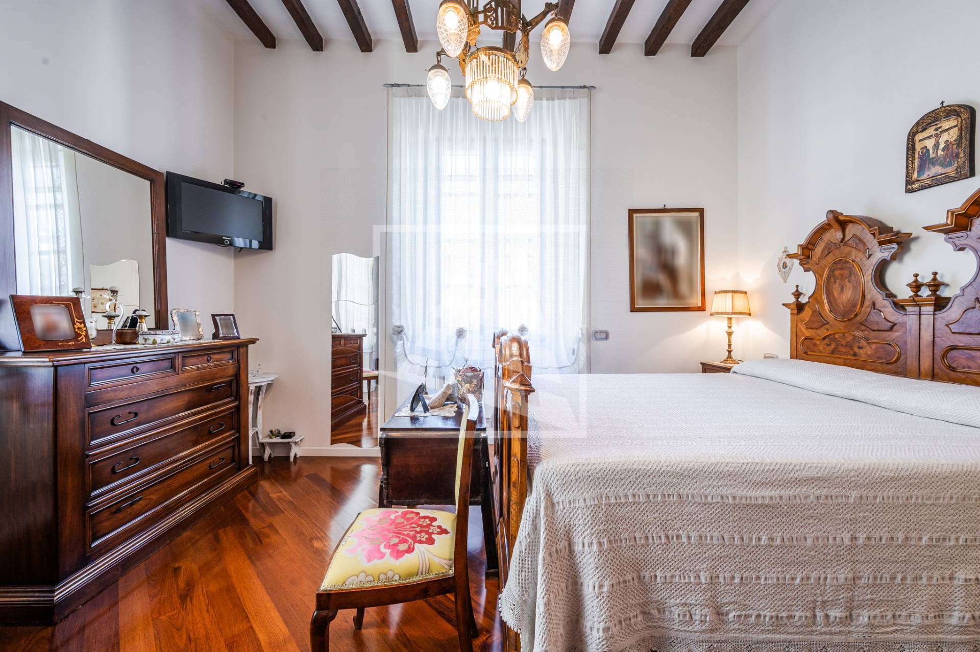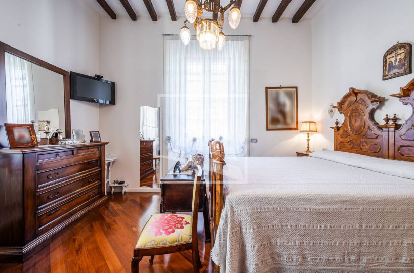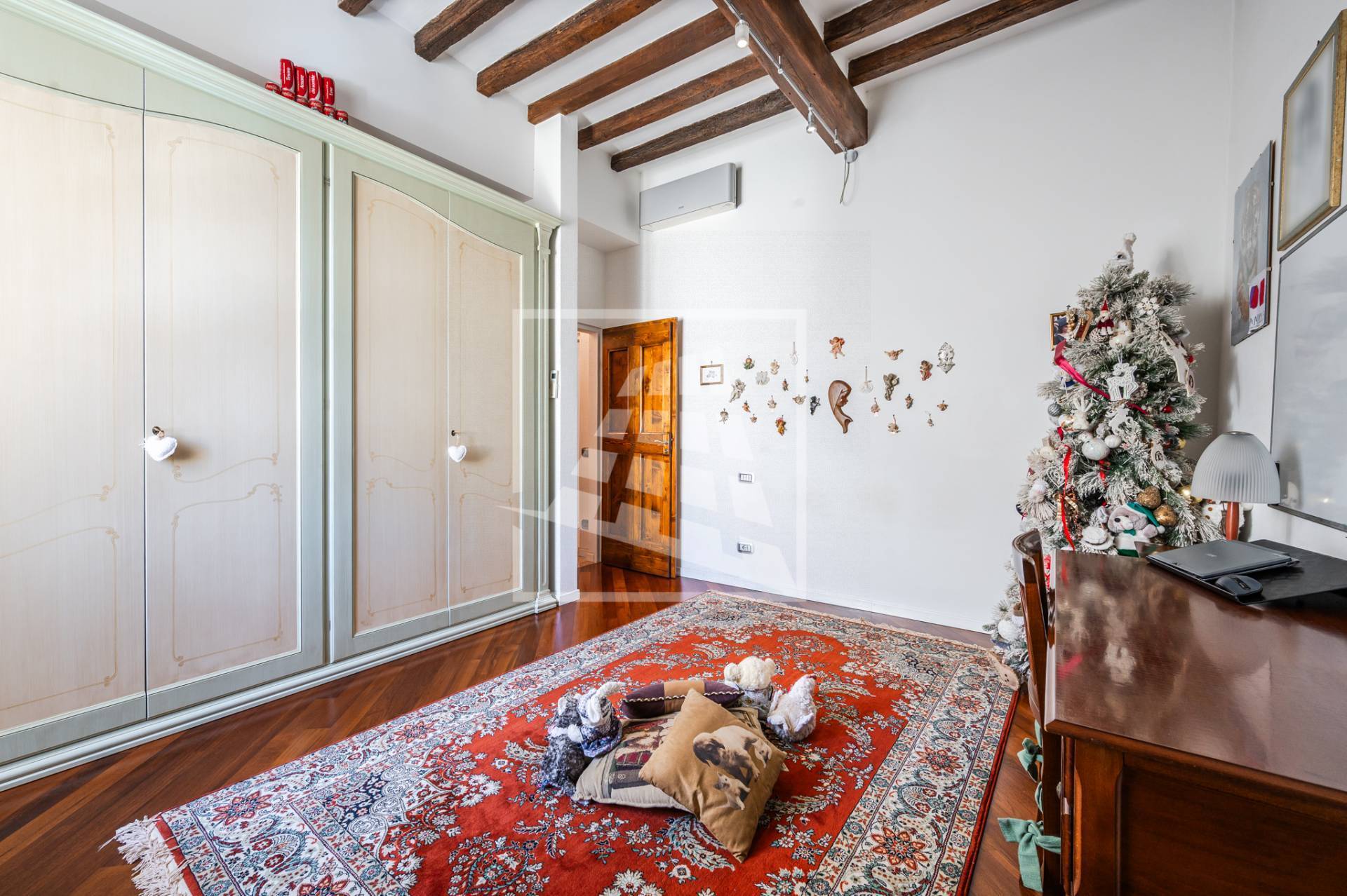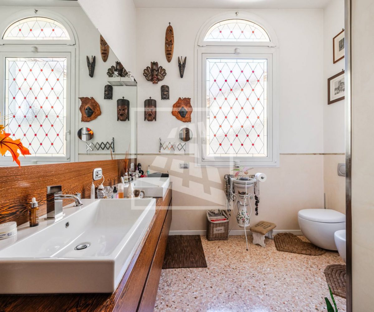 La zona notte ospita due camere da letto matrimoniali, di cui una dallo stile classico con travi a vista e pavimento in legno massello, oltre ad un bagno raffinato con doppio lavabo, ampie finestre con vetri decorati in stile liberty e doccia spaziosa.
