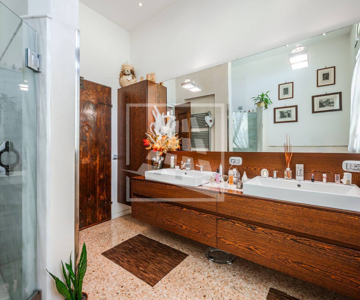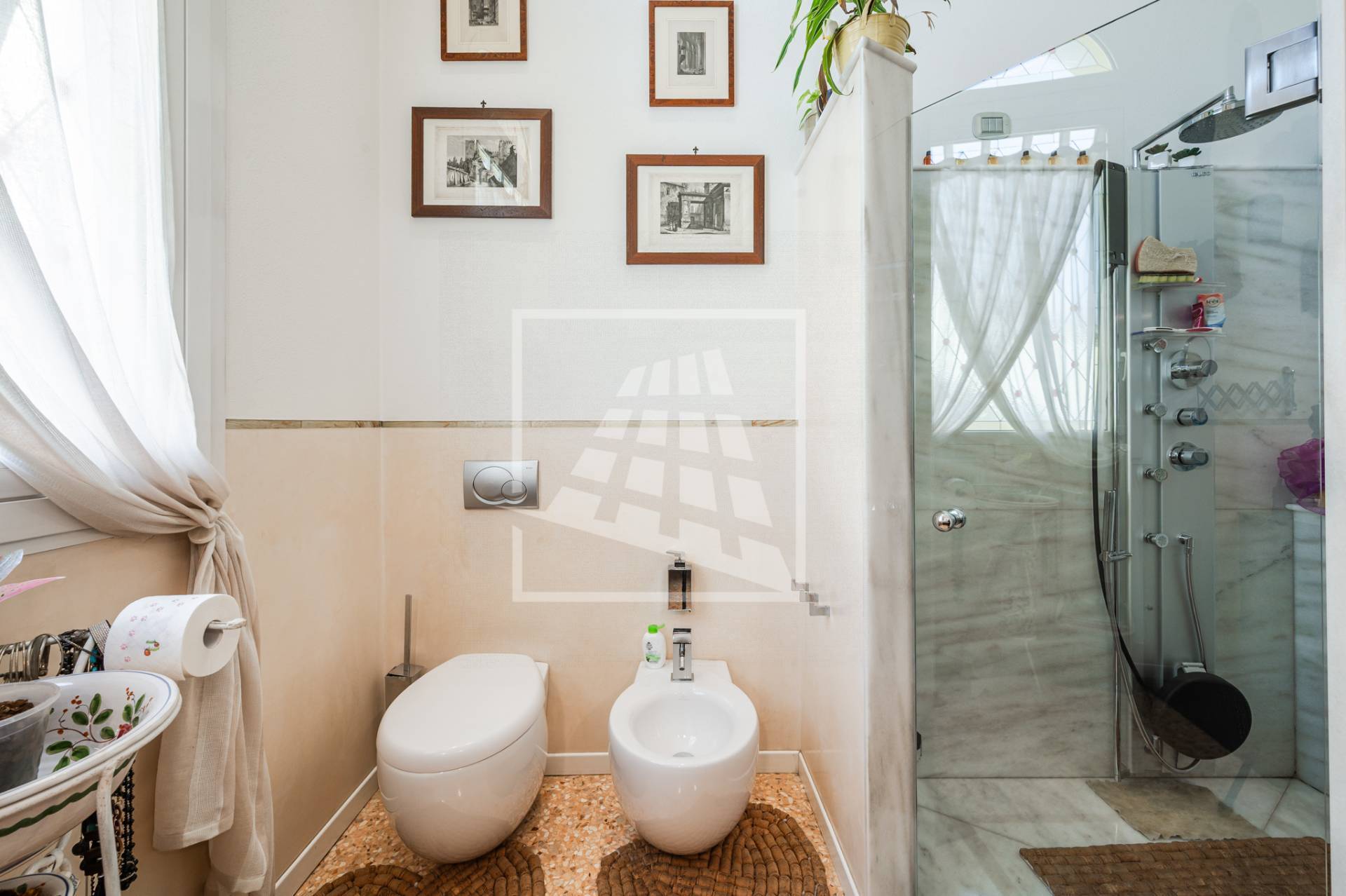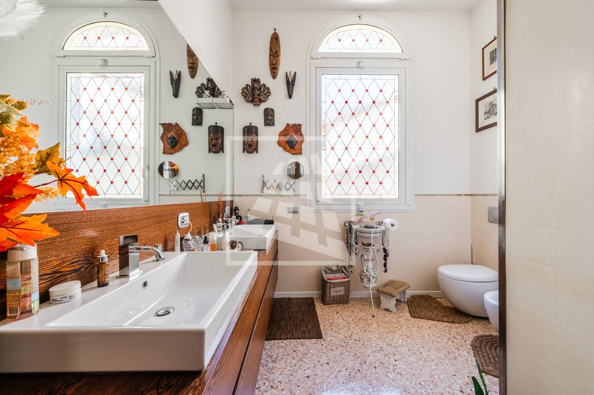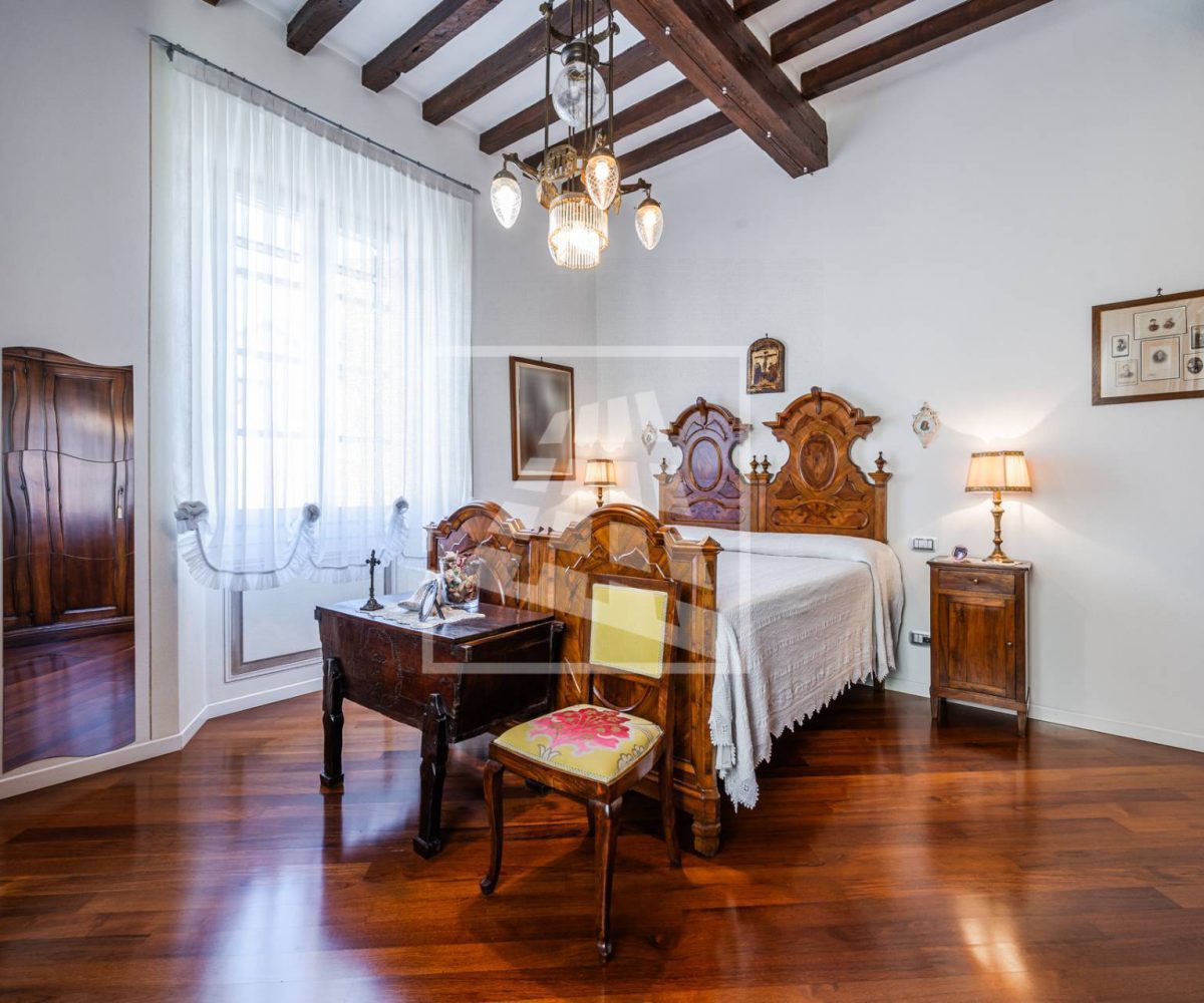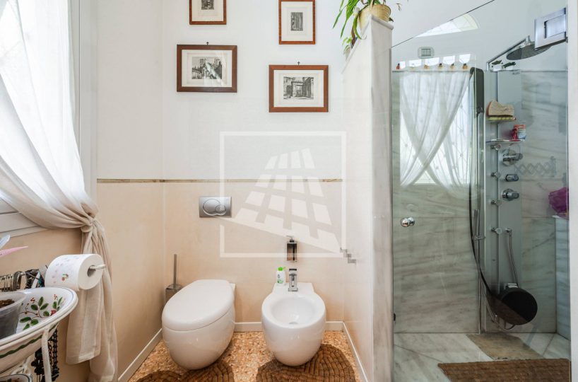 La zona notte ospita due camere da letto matrimoniali, di cui una dallo stile classico con travi a vista e pavimento in legno massello, oltre ad un bagno raffinato con doppio lavabo, ampie finestre con vetri decorati in stile liberty e doccia spaziosa.