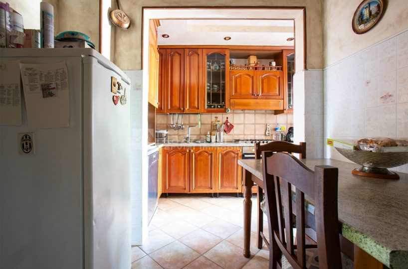 La zona giorno prosegue con una cucina abitabile, anch’essa servita da una seconda loggia che ne aumenta la funzionalità .