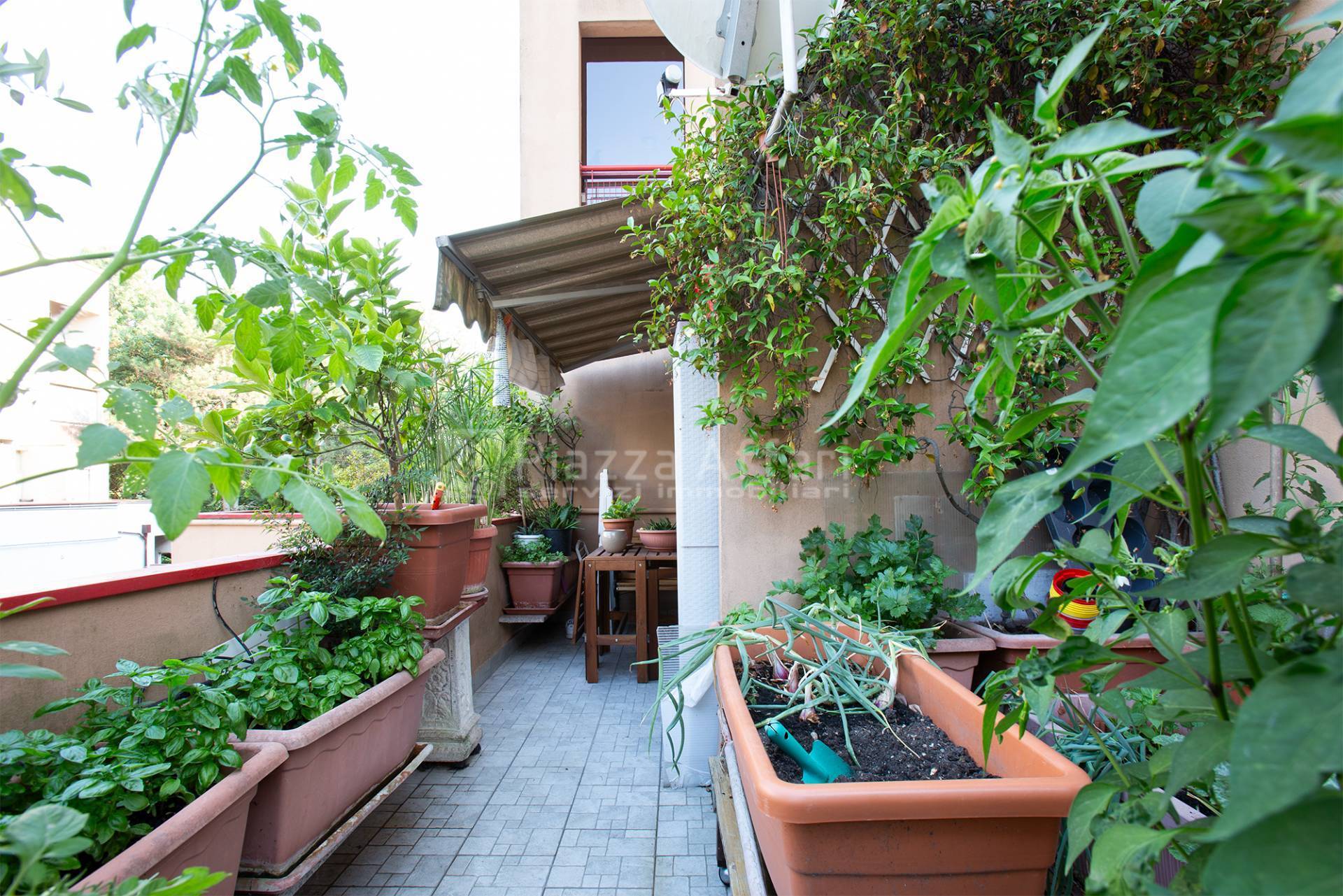 L’ingresso si apre su un accogliente soggiorno che accede direttamente a una splendida terrazza coperta e abitabile, già completa di tende esterne e ideale per momenti di relax all’aperto.