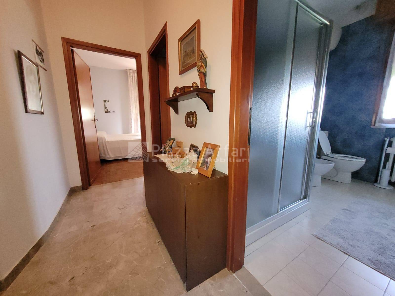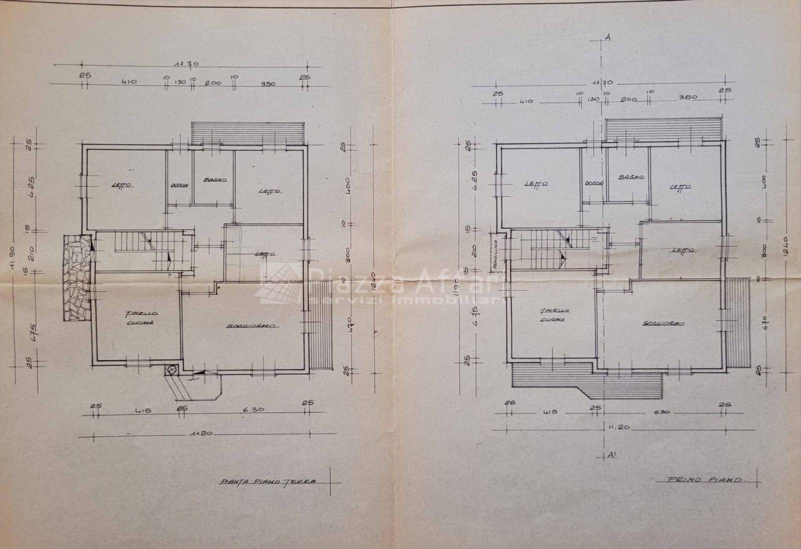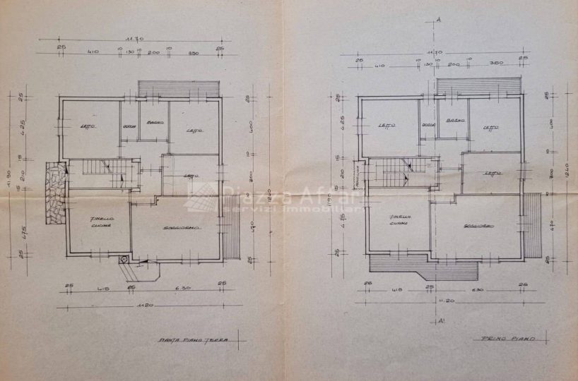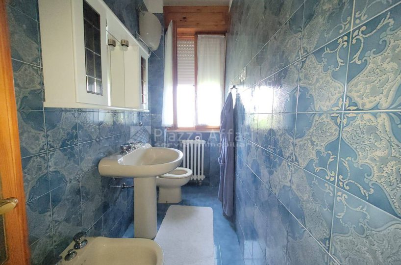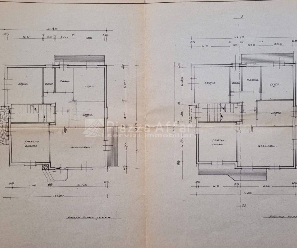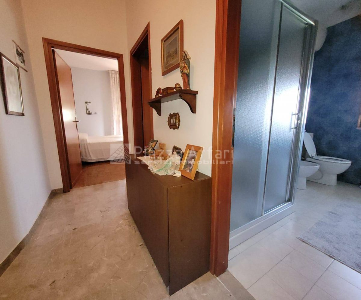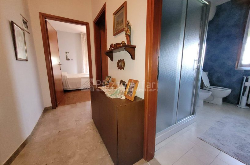 Una scala interna collega il primo piano, che dispone anche di ingresso indipendente al secondo appartamento con uno spazioso salone dotato di loggia di 22 mq e balcone panoramico, cucina abitabile di 20 mq, tre camere matrimoniali (una con balcone) e due bagni.