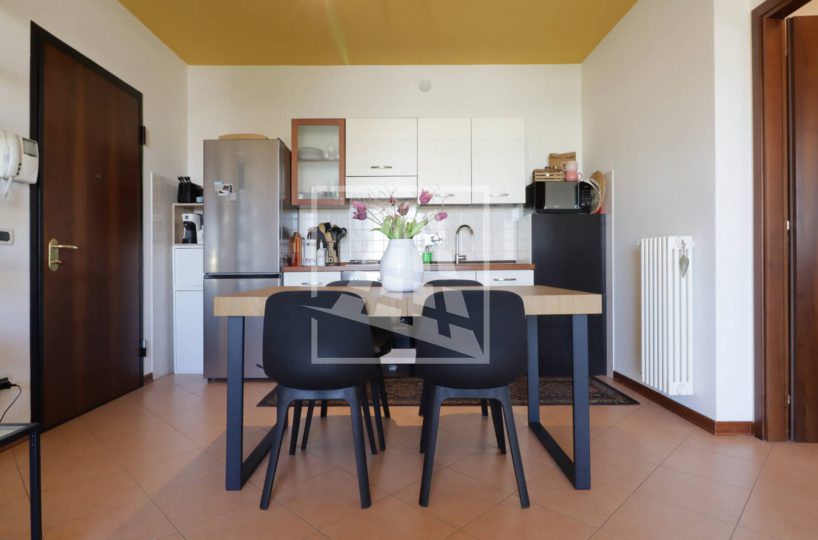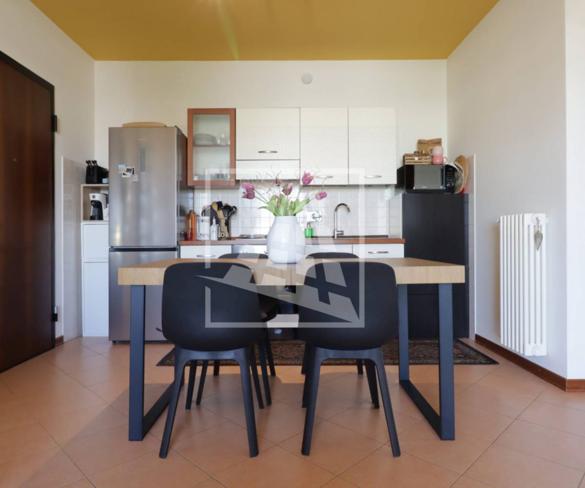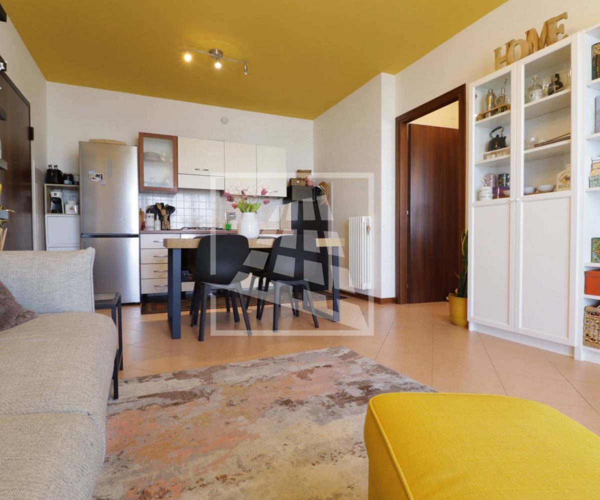 Internamente l’immobile è composto da ingresso su ampio soggiorno con angolo cottura reso particolarmente luminoso grazie all’affaccio sulla loggia coperta, piccolo disimpegno che conduce alla zona notte, camera matrimoniale e bagno finestrato completo di box doccia.