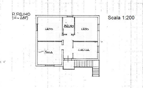 Attualmente l’immobile è composto da un’unica unità immobiliare su due livelli dove al primo piano, raggiungibile da scala esterna, è presente l’appartamento con ingresso, cucina, soggiorno, due matrimoniali e bagno.