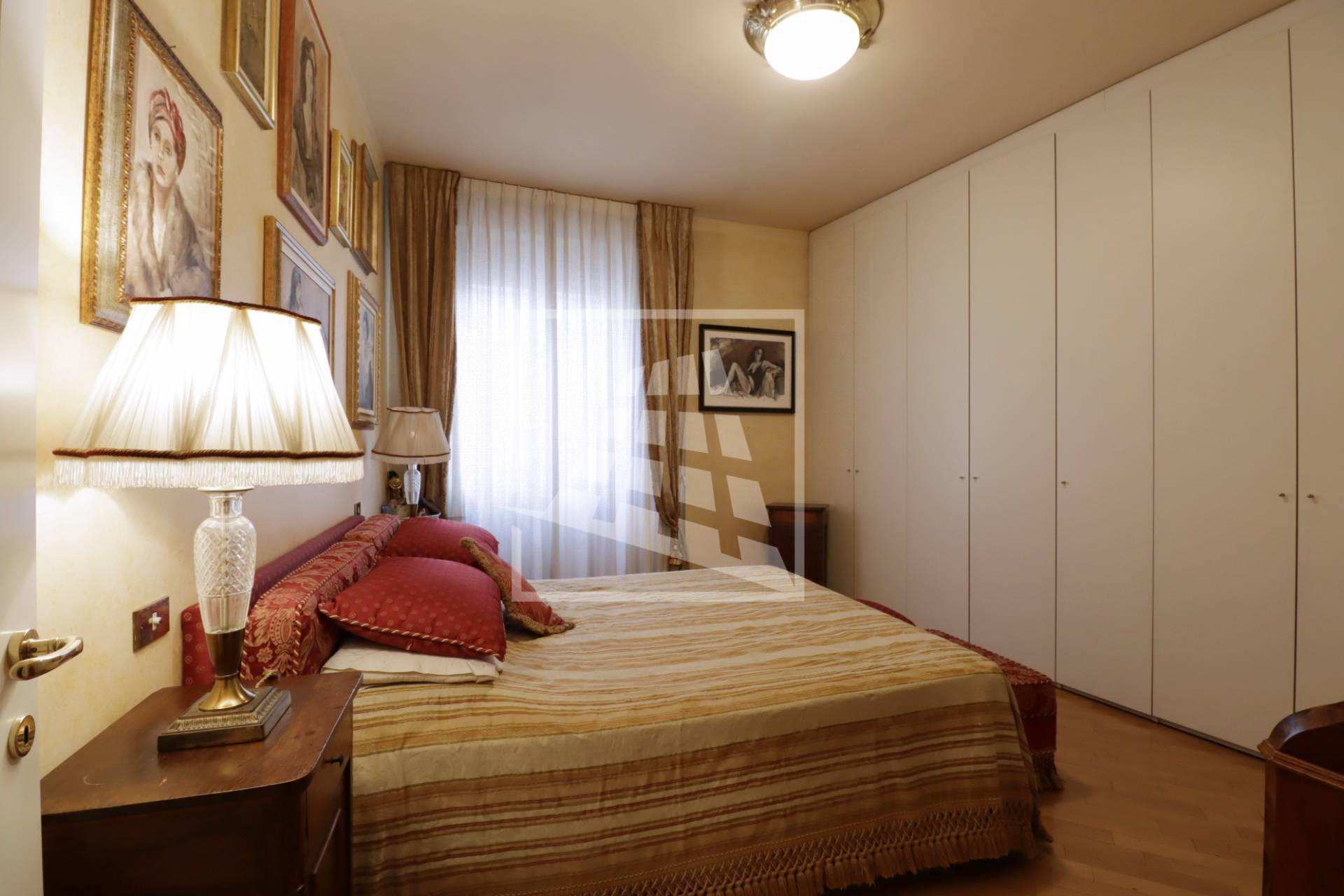 La zona notte è separata da un disimpegno, ospita due ampie camere da letto matrimoniali e un secondo bagno finestrato, con affaccio su un tranquillo cavedio interno.