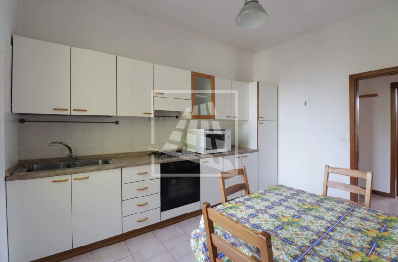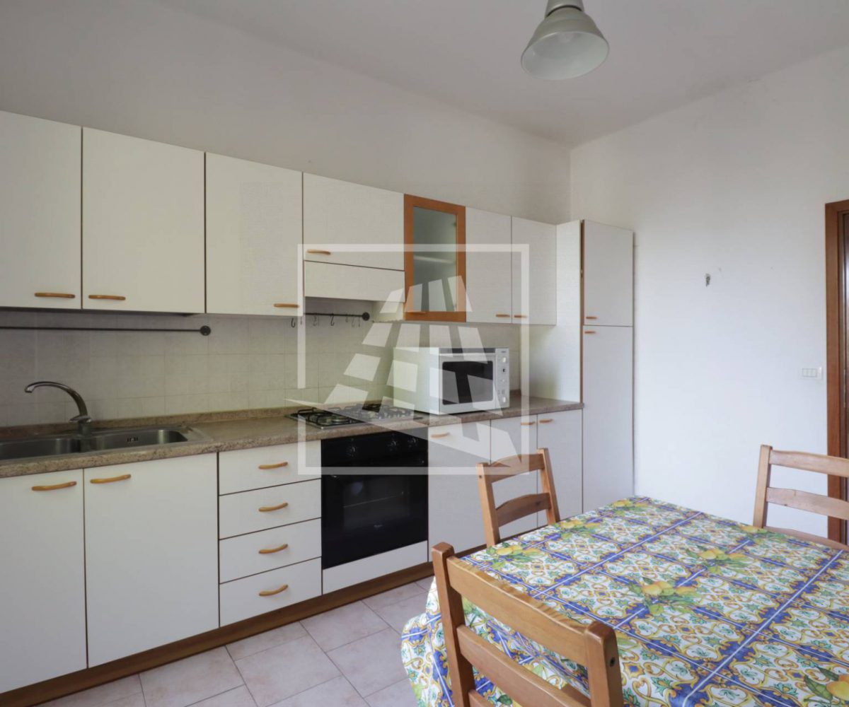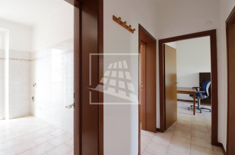 Varcando la soglia, si accede all’ingresso che conduce alla cucina abitabile e al soggiorno, reso luminoso da una porta finestra con accesso diretto al balcone.