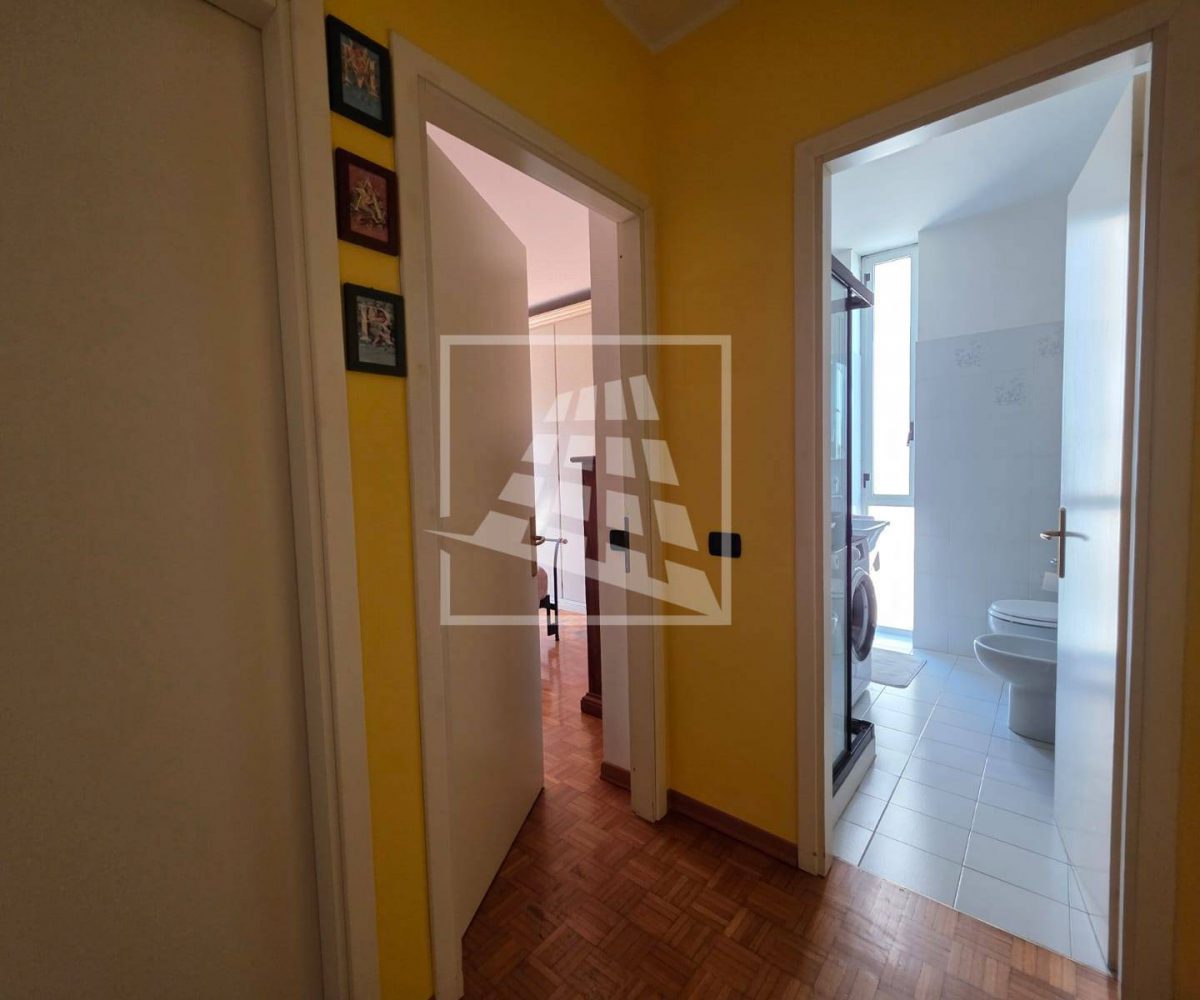 L’immobile è composto da: ingresso su luminoso soggiorno con ampio balcone rivolto a sud, cucina abitabile con secondo balcone esposto a nord, disimpegno con guardaroba, una camera singola, due ampie camere matrimoniali, bagno di servizio finestrato con doccia e bagno principale della zona notte finestrato, con vasca.