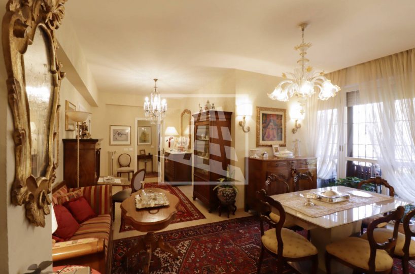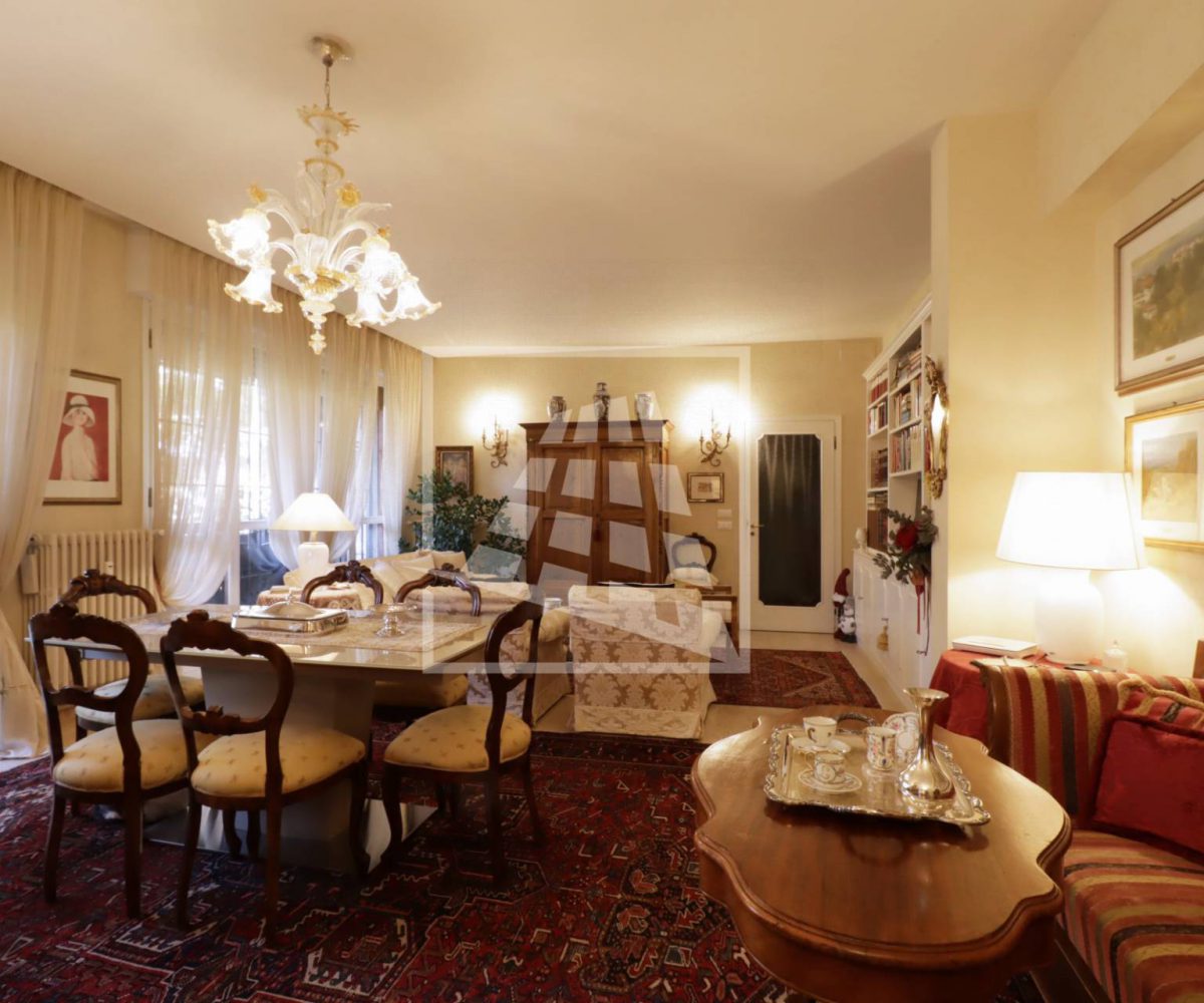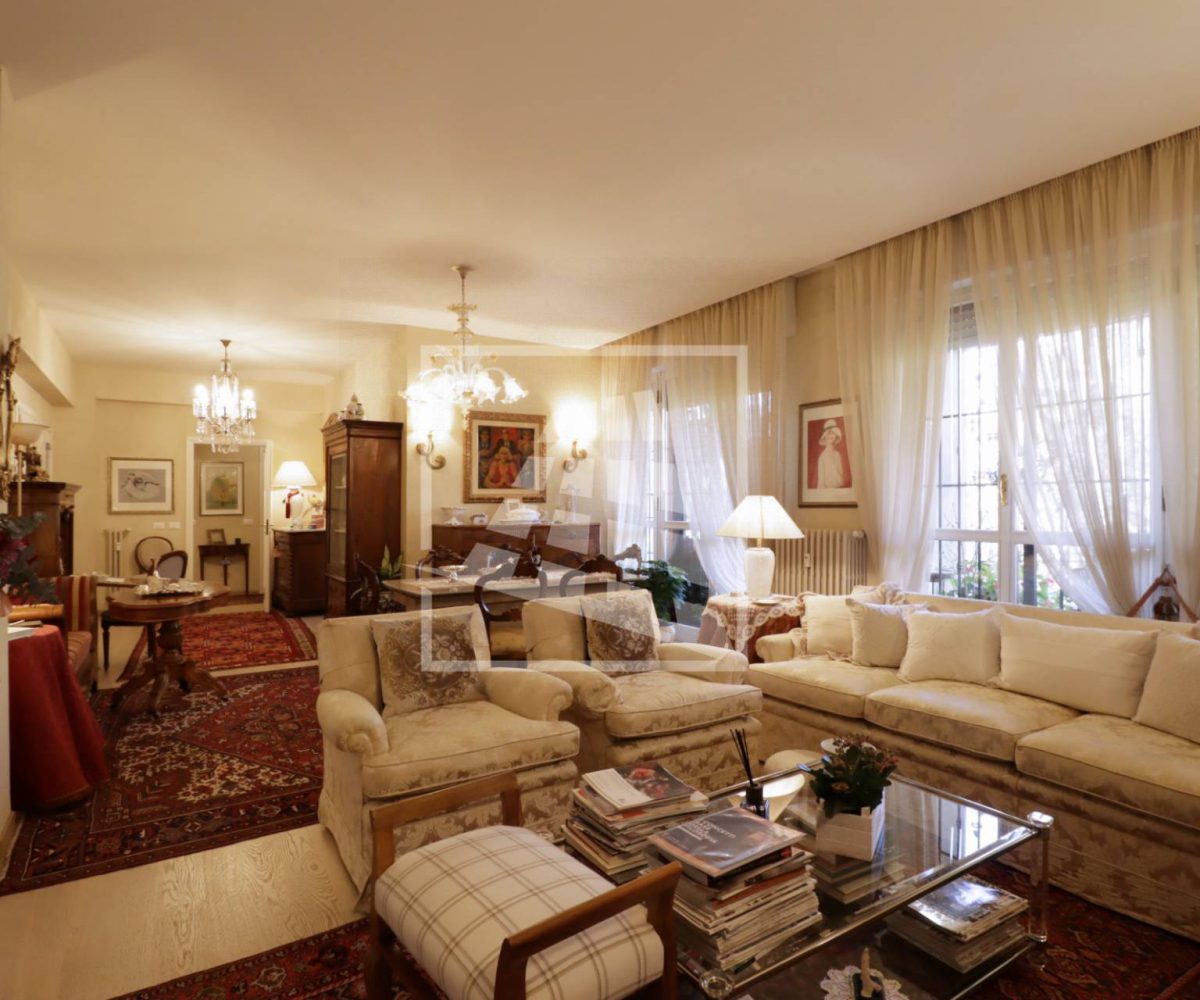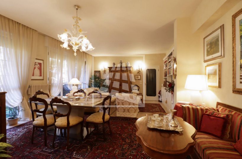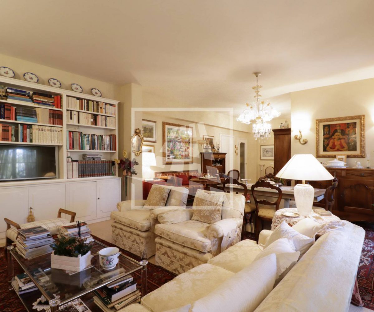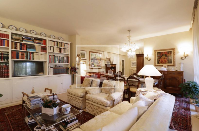 Appartamento di 175 mq, arricchito da quasi 30 mq di aree scoperte che affacciano sul verde circostante.