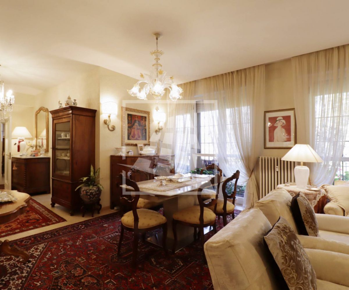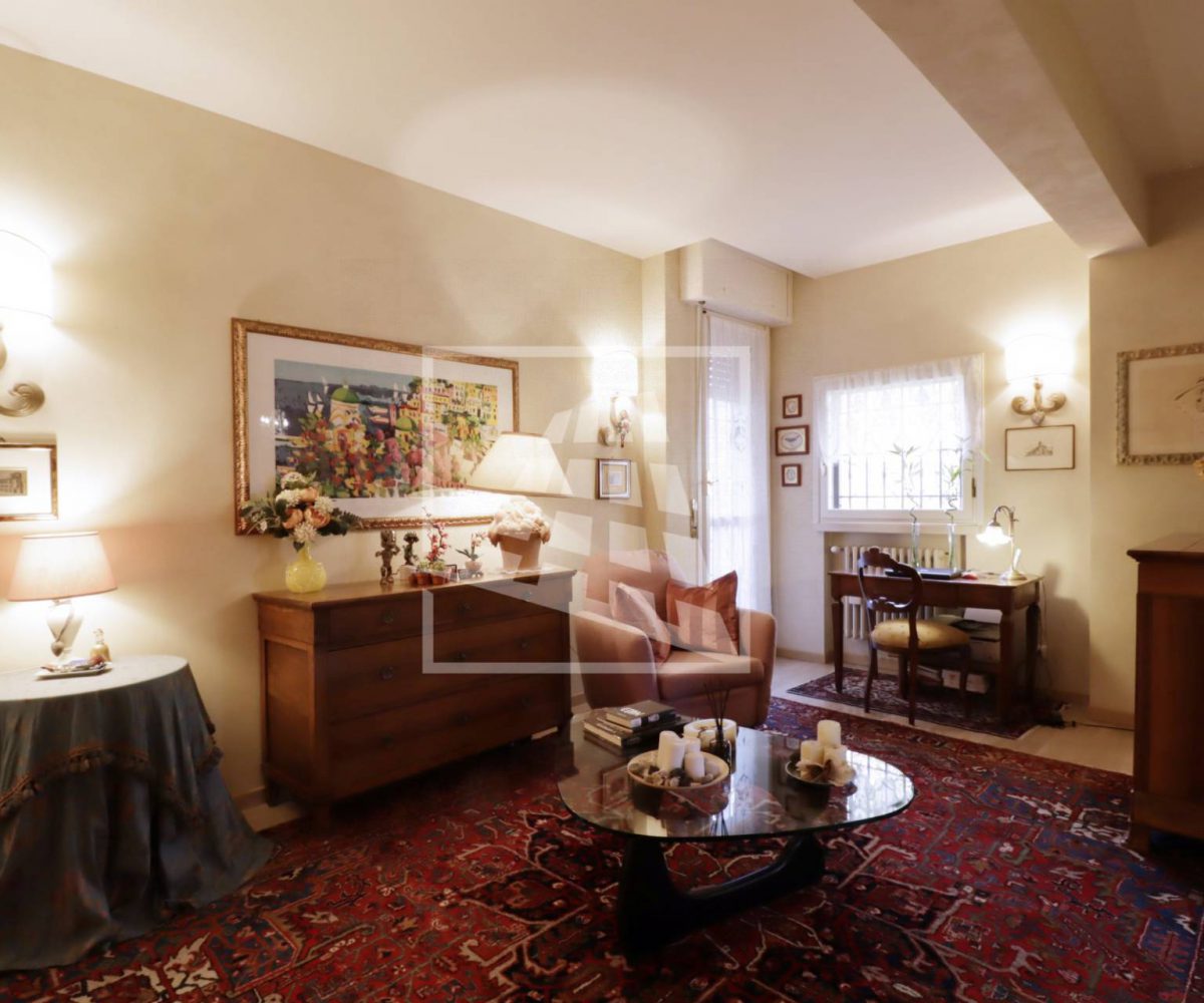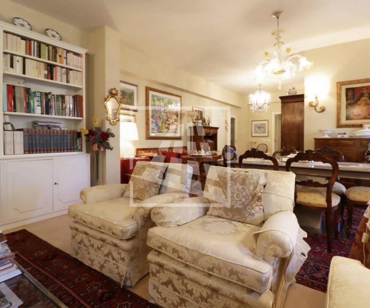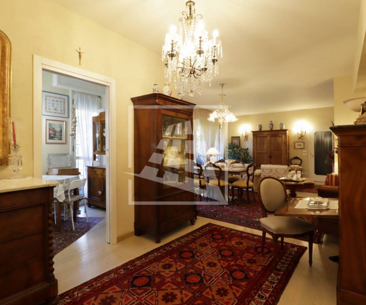 Appartamento di 175 mq, arricchito da quasi 30 mq di aree scoperte che affacciano sul verde circostante.