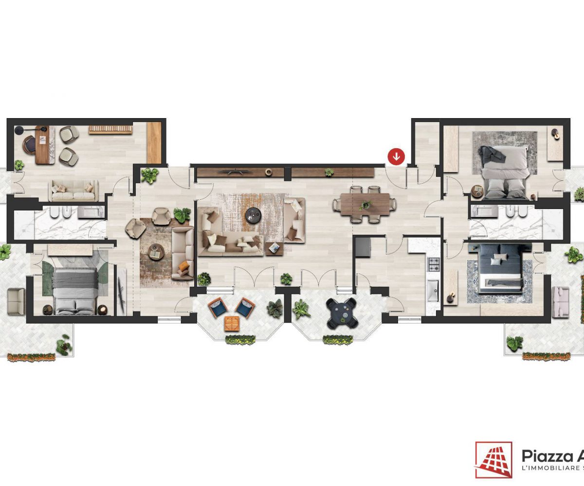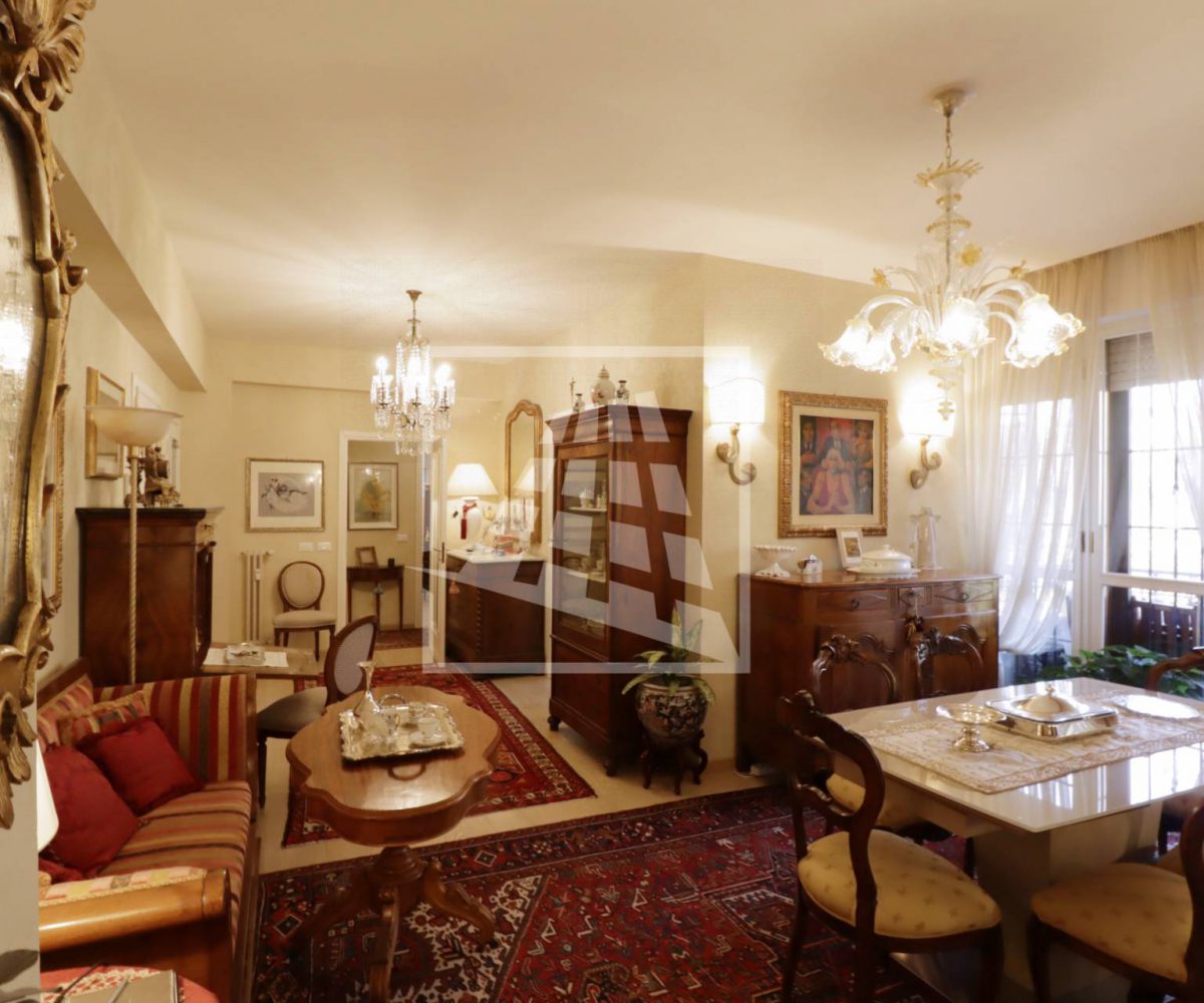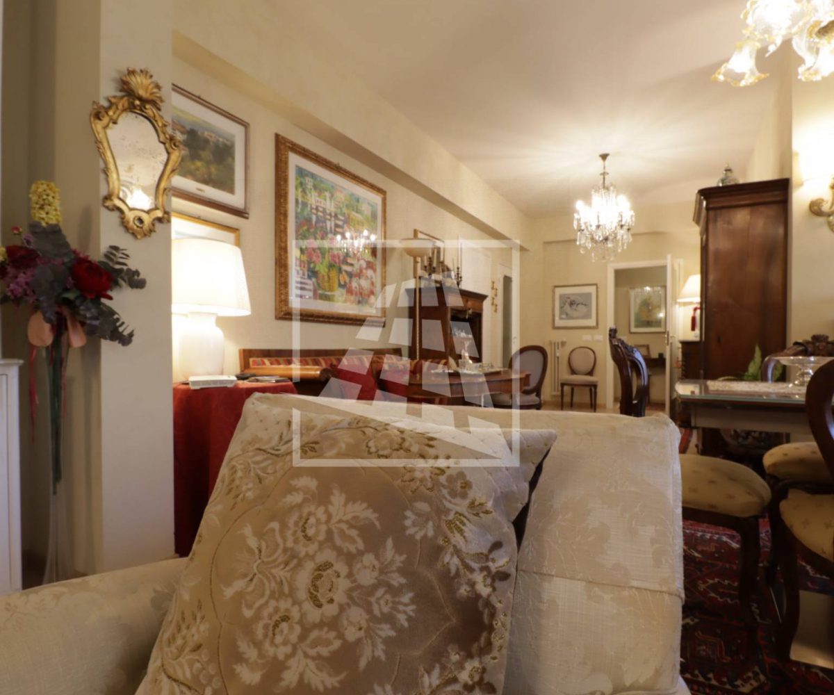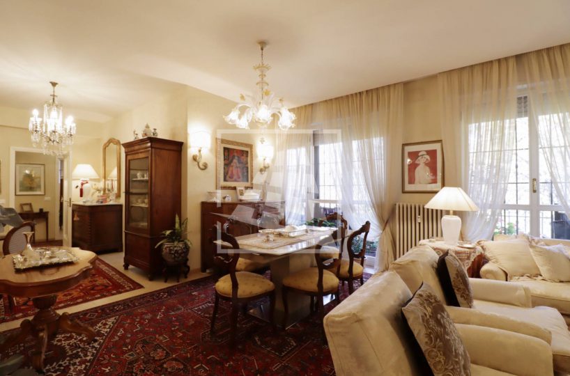 Appartamento di 175 mq, arricchito da quasi 30 mq di aree scoperte che affacciano sul verde circostante.