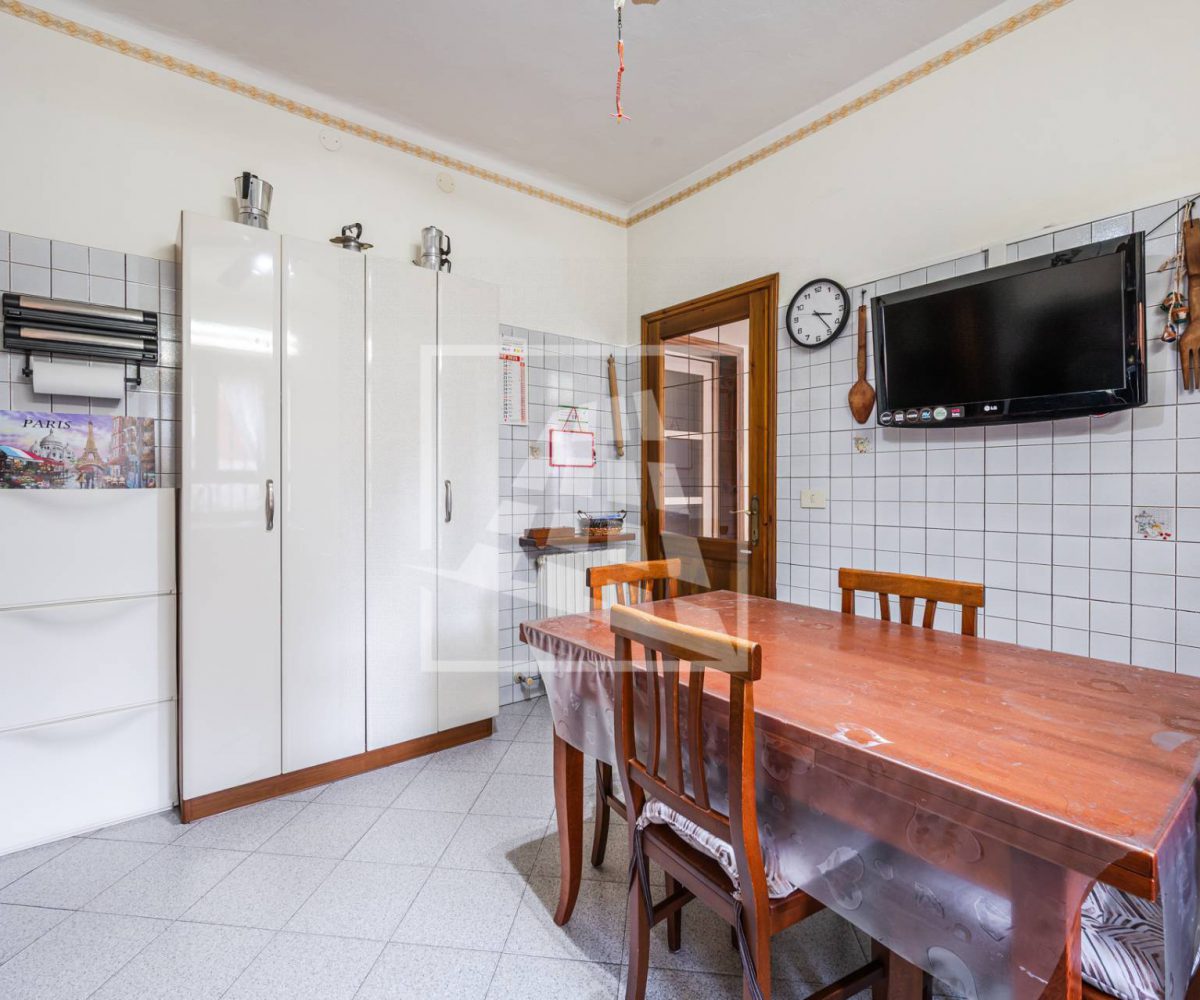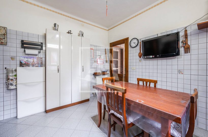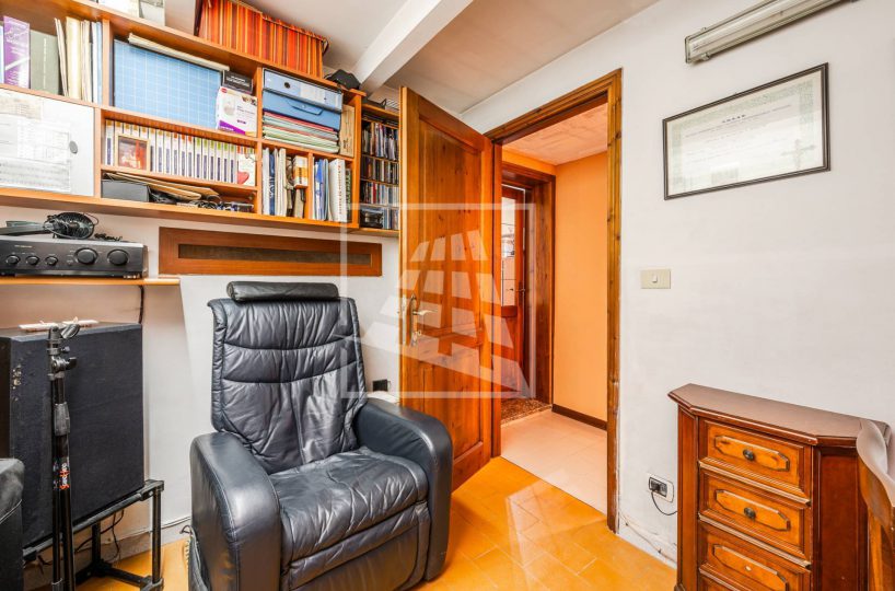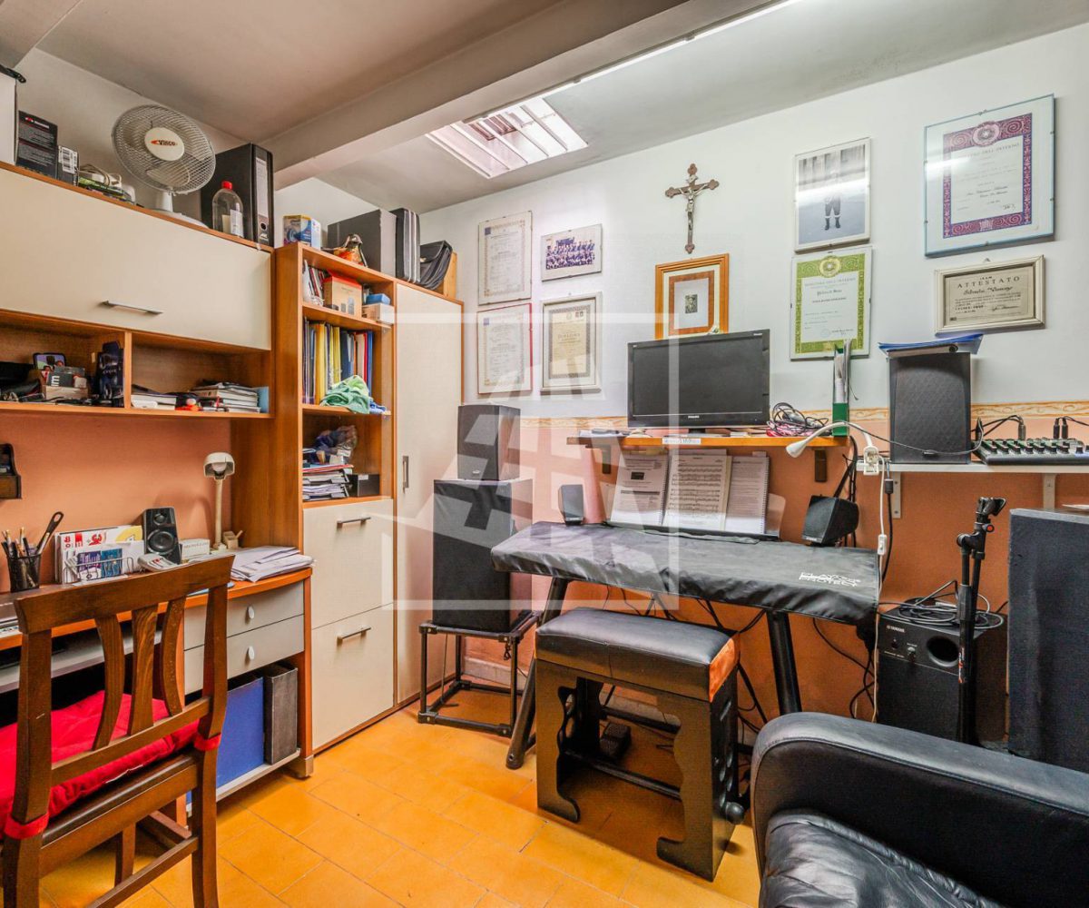 Lo completano una spaziosa cucina abitabile di 15 mq, un disimpegno, un bagno finestrato e un ripostiglio di 7 mq, attualmente adibito a studio.