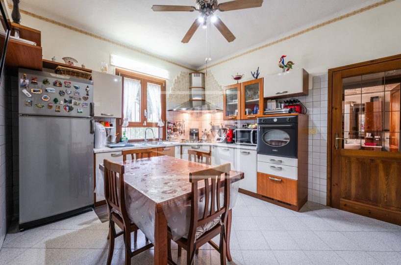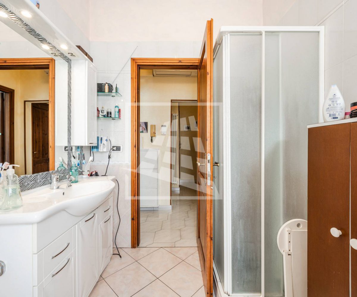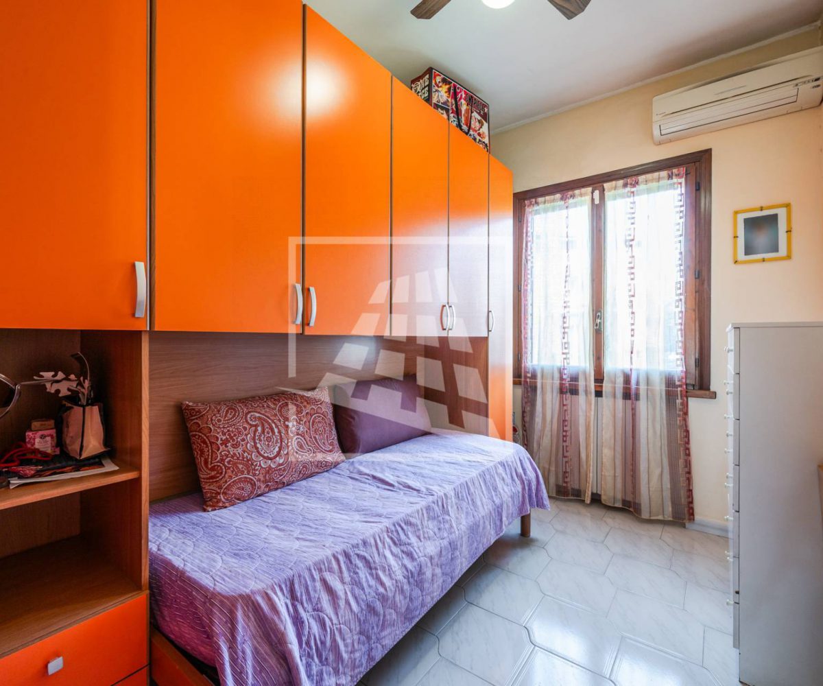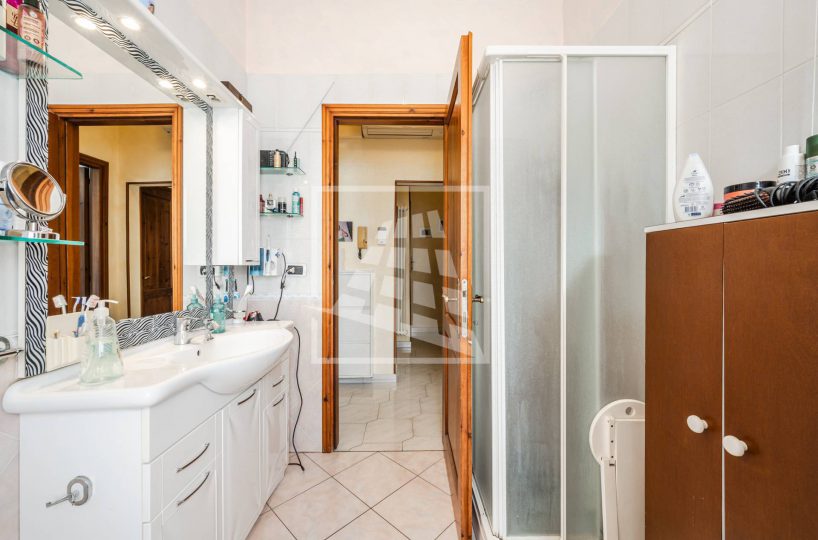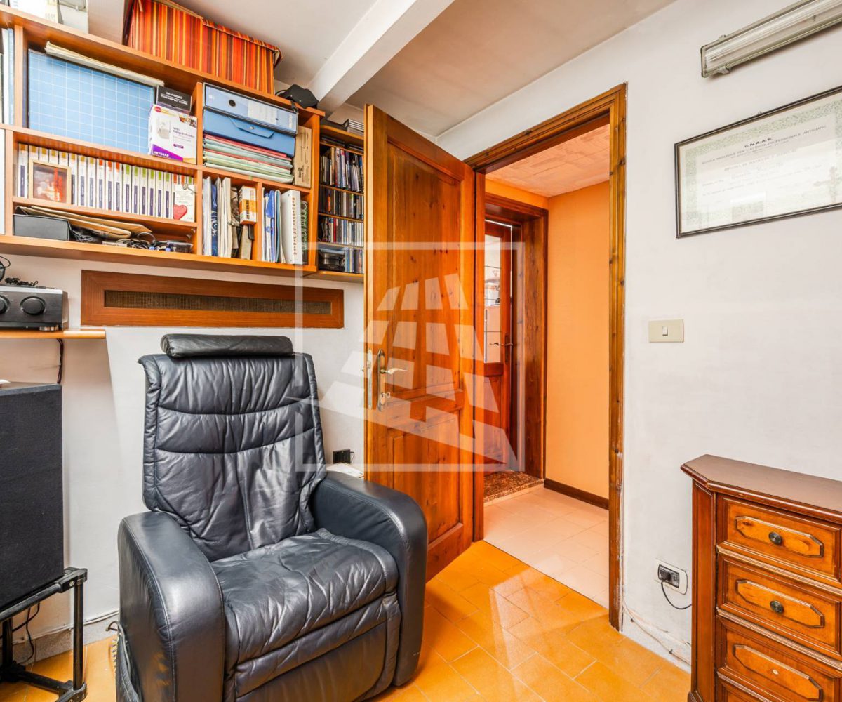 Lo completano una spaziosa cucina abitabile di 15 mq, un disimpegno, un bagno finestrato e un ripostiglio di 7 mq, attualmente adibito a studio.