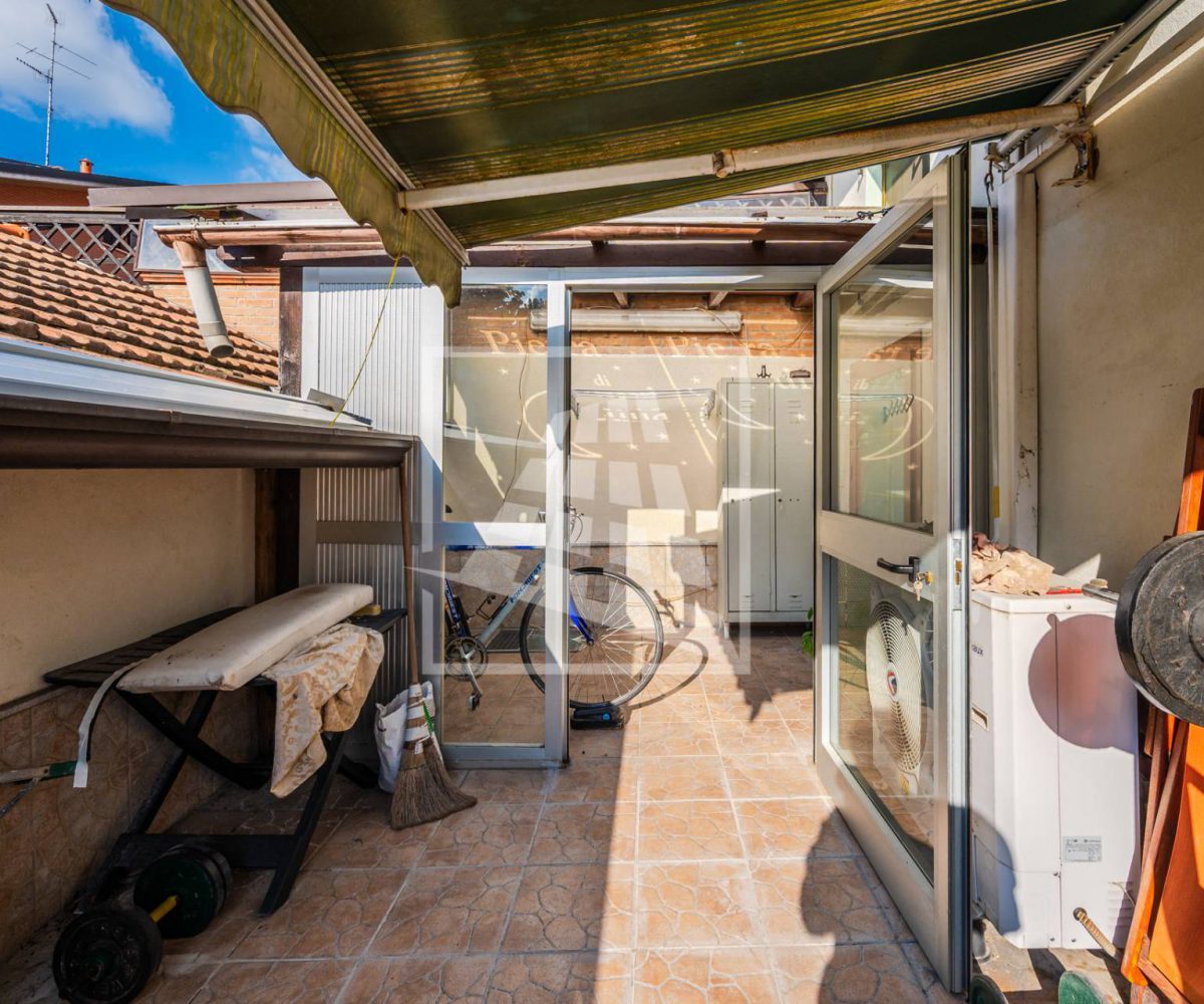 Salendo le scale, il piano è ulteriormente arricchito da una loggia coperta dotata di tenda da sole.
