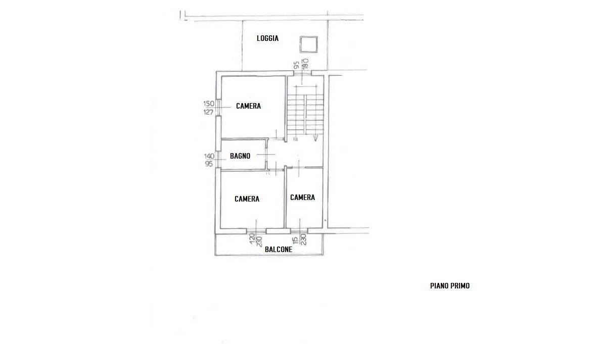 Salendo al piano primo, troviamo la zona notte che si compone di due camere matrimoniali e una camera singola, servite da un bagno finestrato.