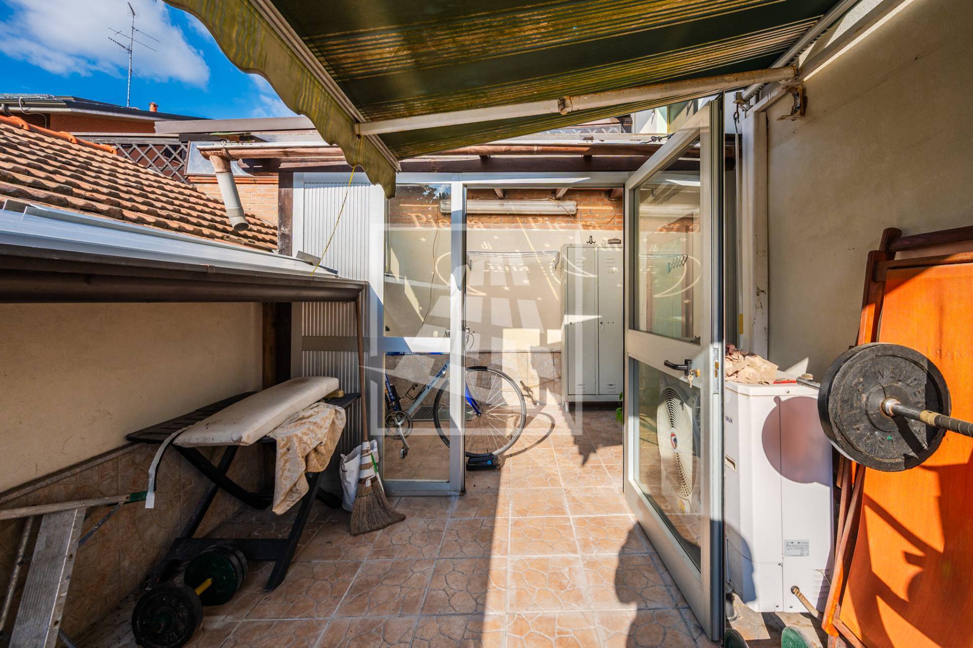 Salendo le scale, il piano è ulteriormente arricchito da una loggia coperta dotata di tenda da sole.