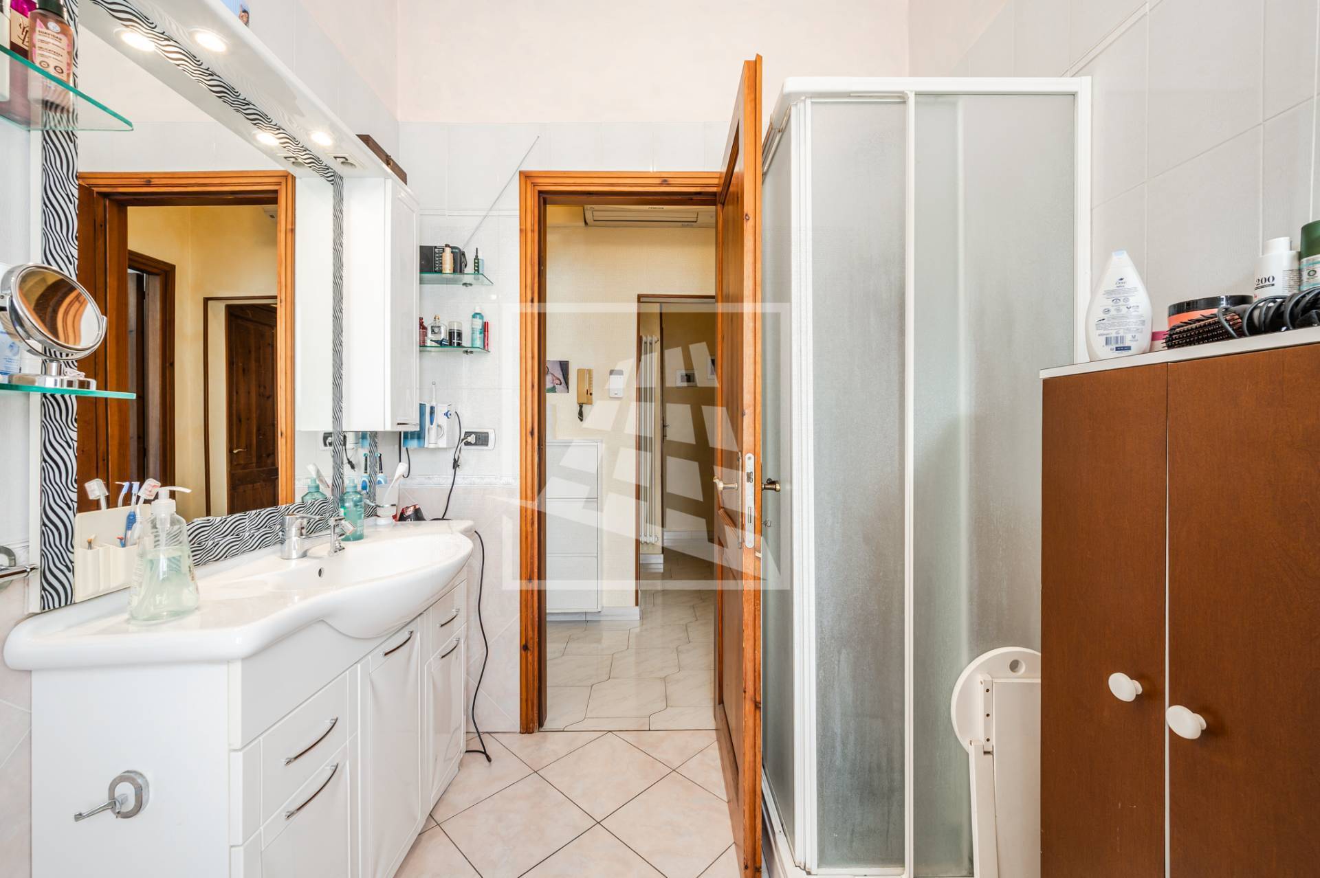 Lo completano una spaziosa cucina abitabile di 15 mq, un disimpegno, un bagno finestrato e un ripostiglio di 7 mq, attualmente adibito a studio.