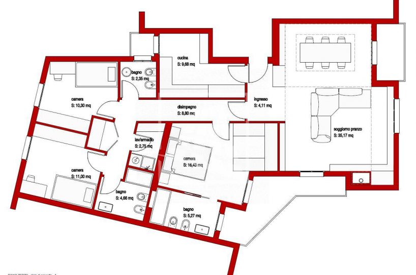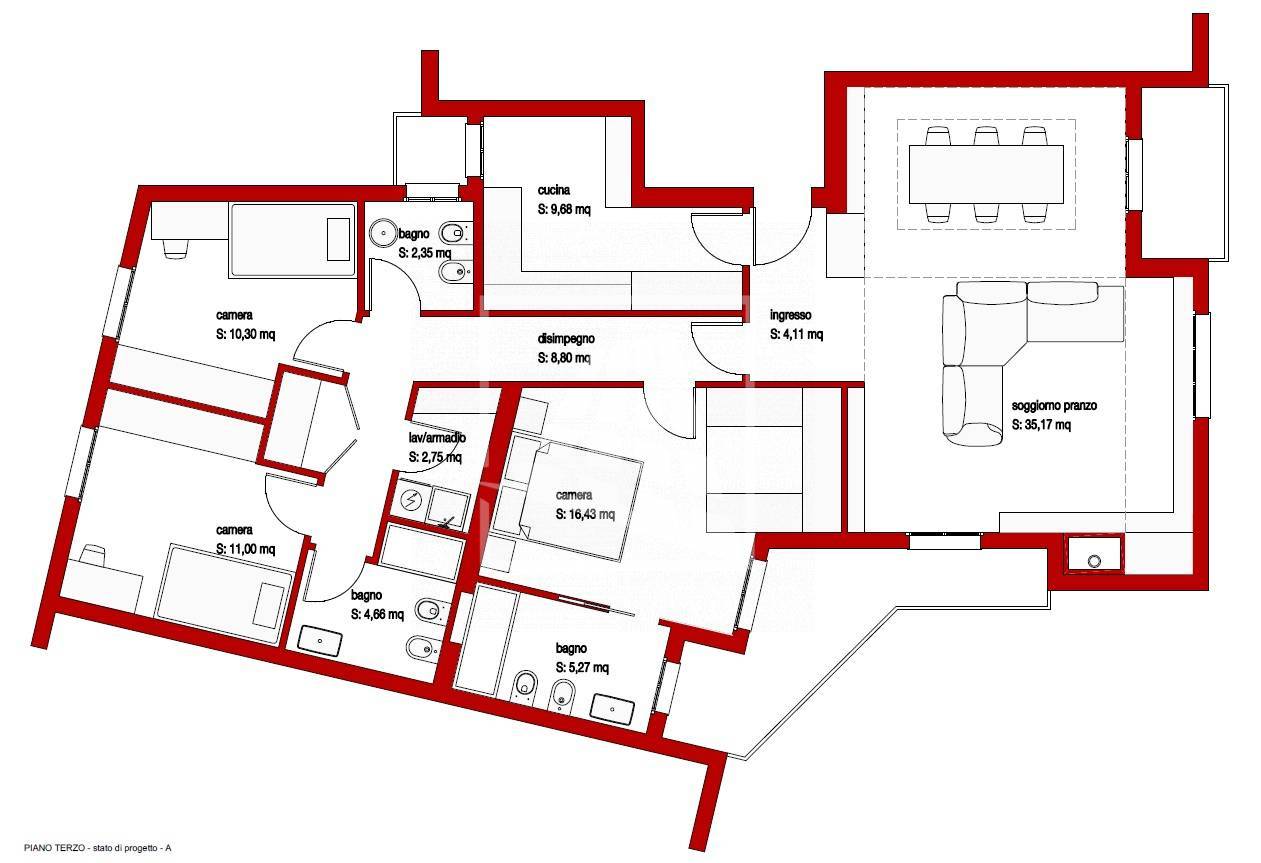 La zona notte comprenderà due camere matrimoniali entrambe dotate di bagno privato, una camera da letto a tre quarti, un terzo bagno e una comoda lavanderia.
