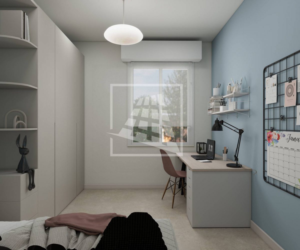 L’appartamento sarà composto da ingresso, un salone di oltre 35 mq con caminetto e balcone esposto a sud, e una cucina abitabile con balconcino.