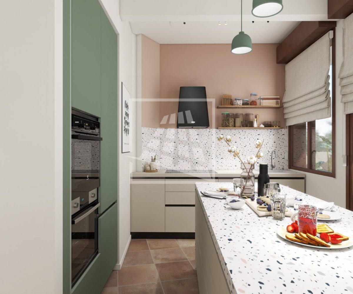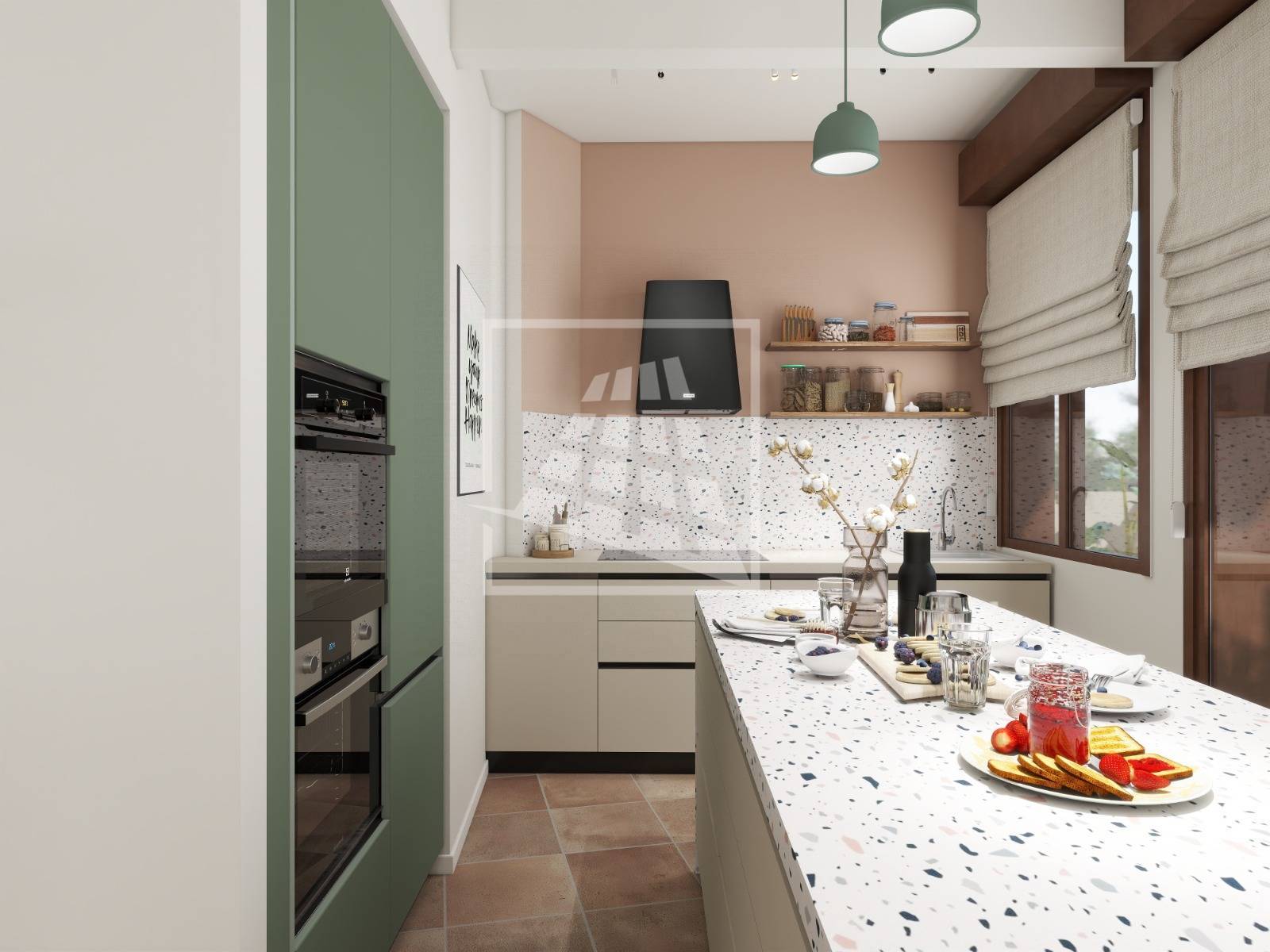La zona giorno si compone di un ingresso arredabile, un ampio e luminoso open space con zona living e cucina a vista, oltre a due balconi con doppio accesso.
