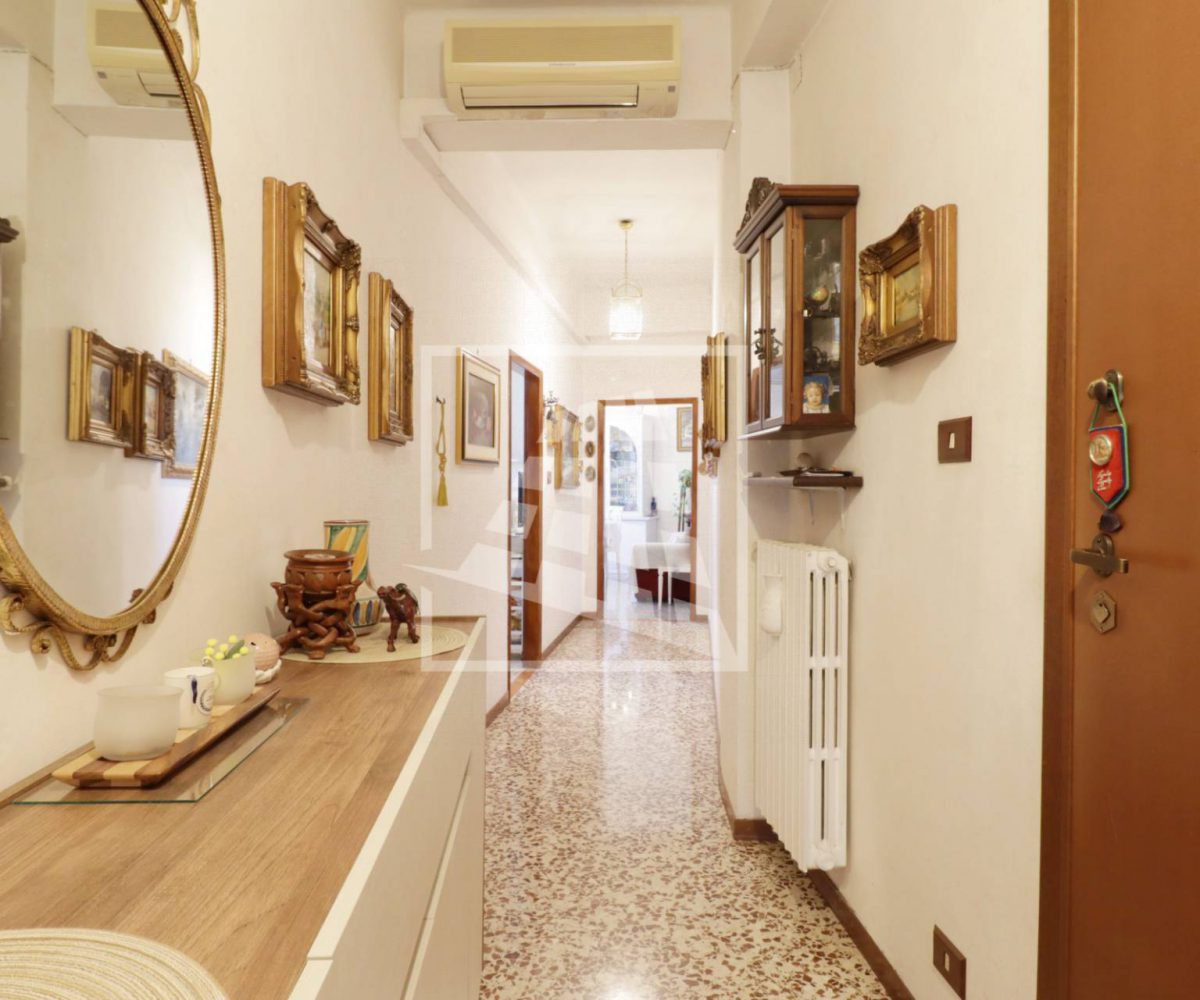Grazie alla sua metratura generosa, offre un notevole potenziale di riorganizzazione: con piccole modifiche è possibile ricavare tre camere da letto matrimoniali, due bagni e una sala con angolo cottura.