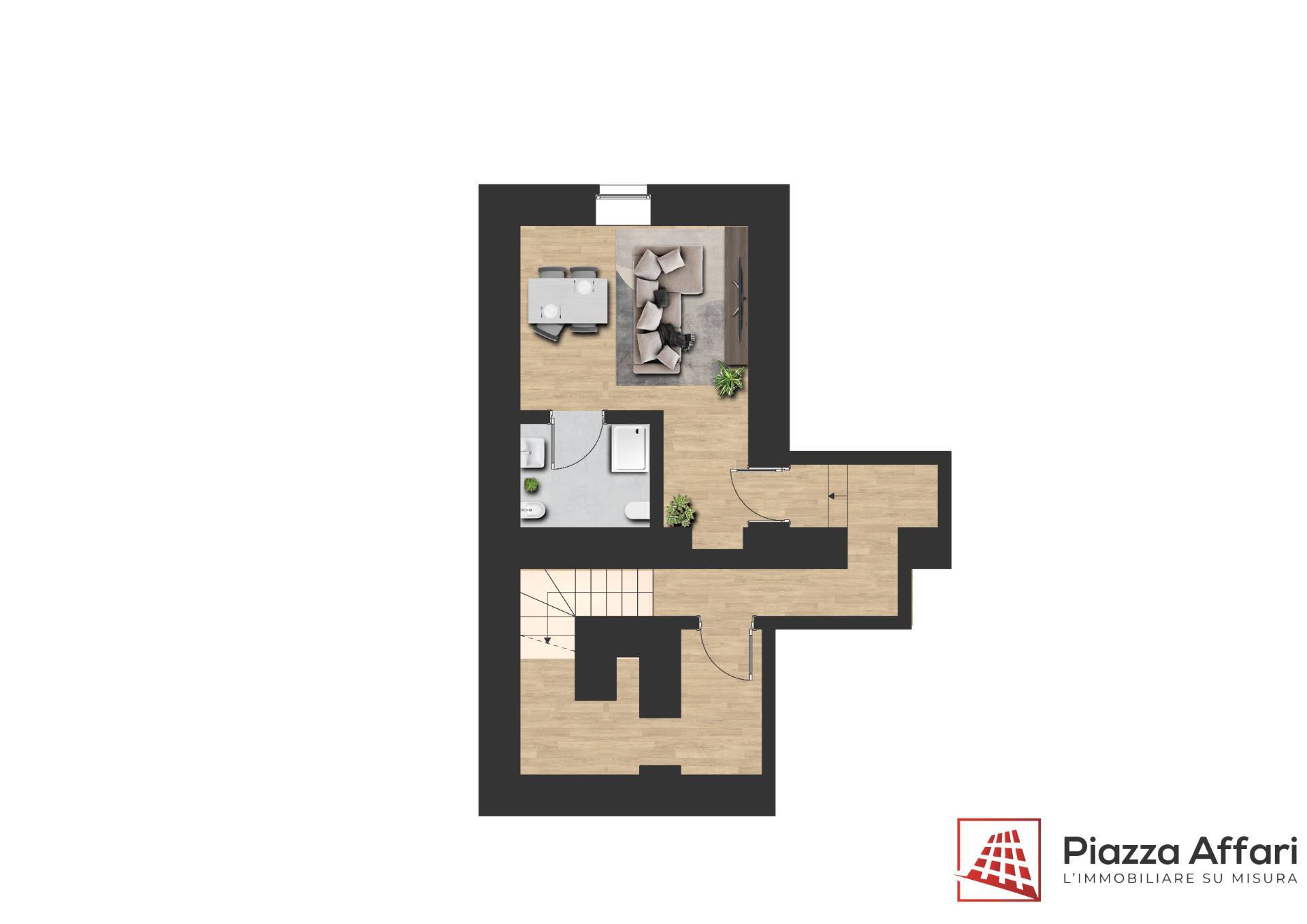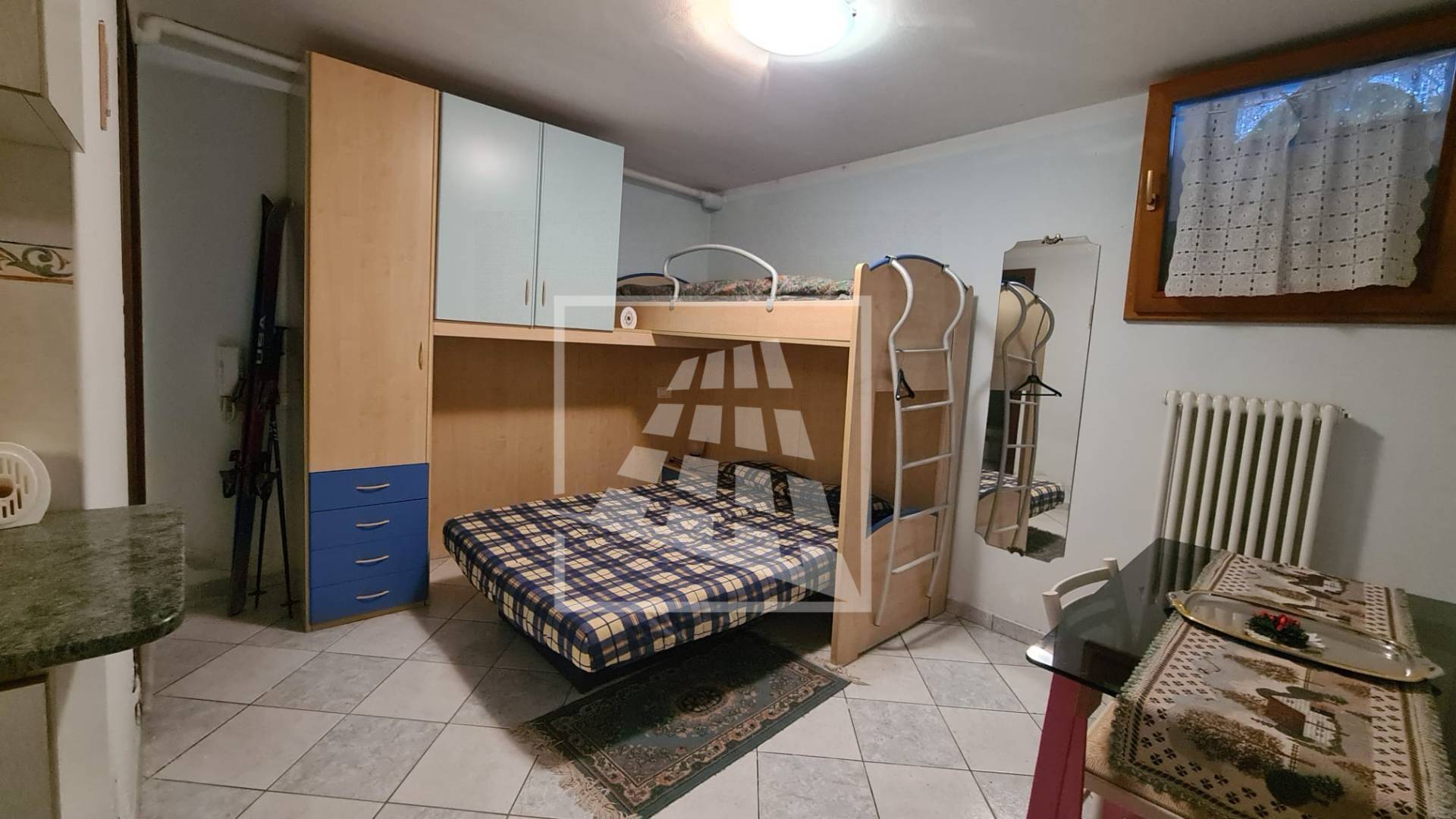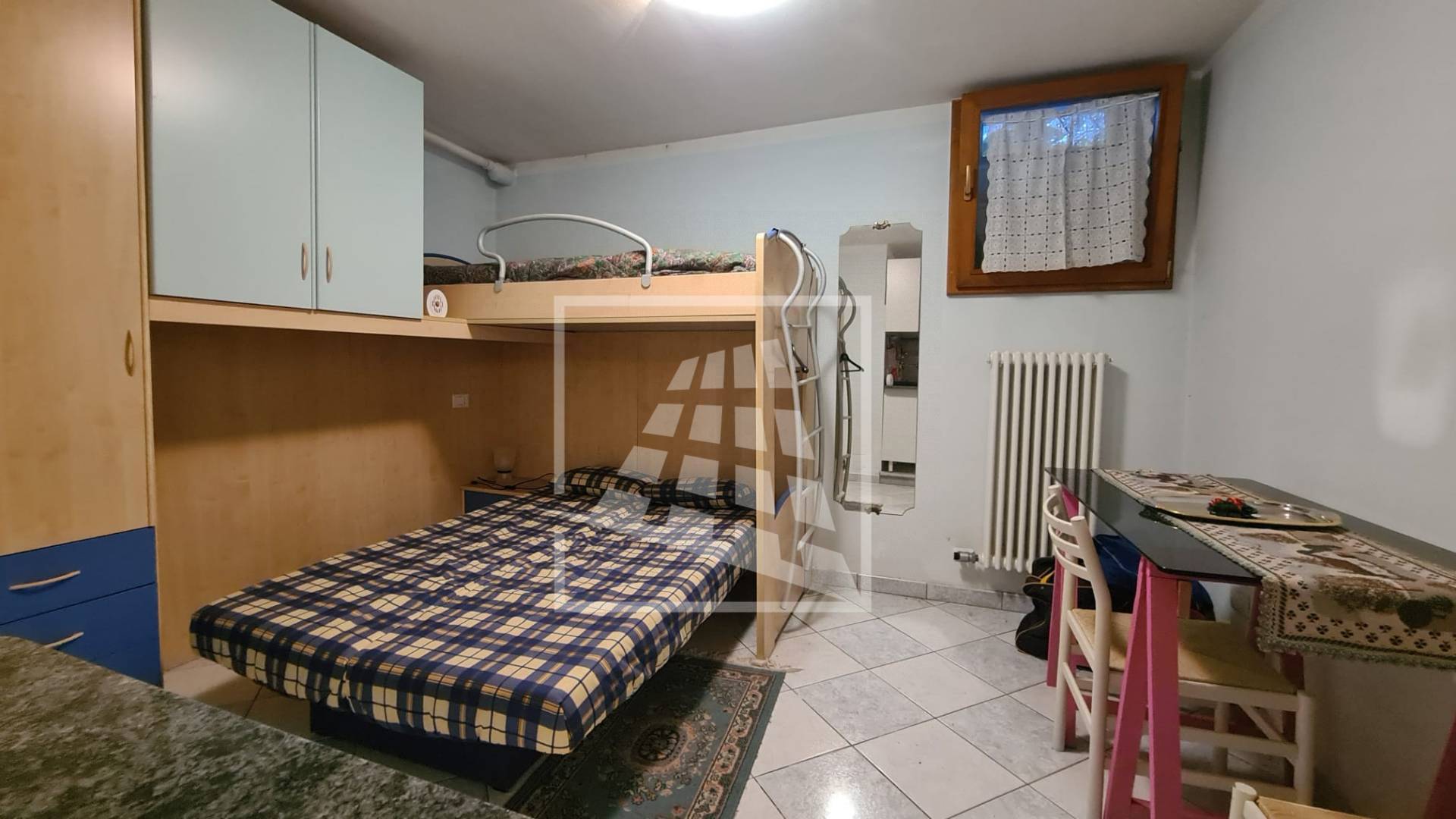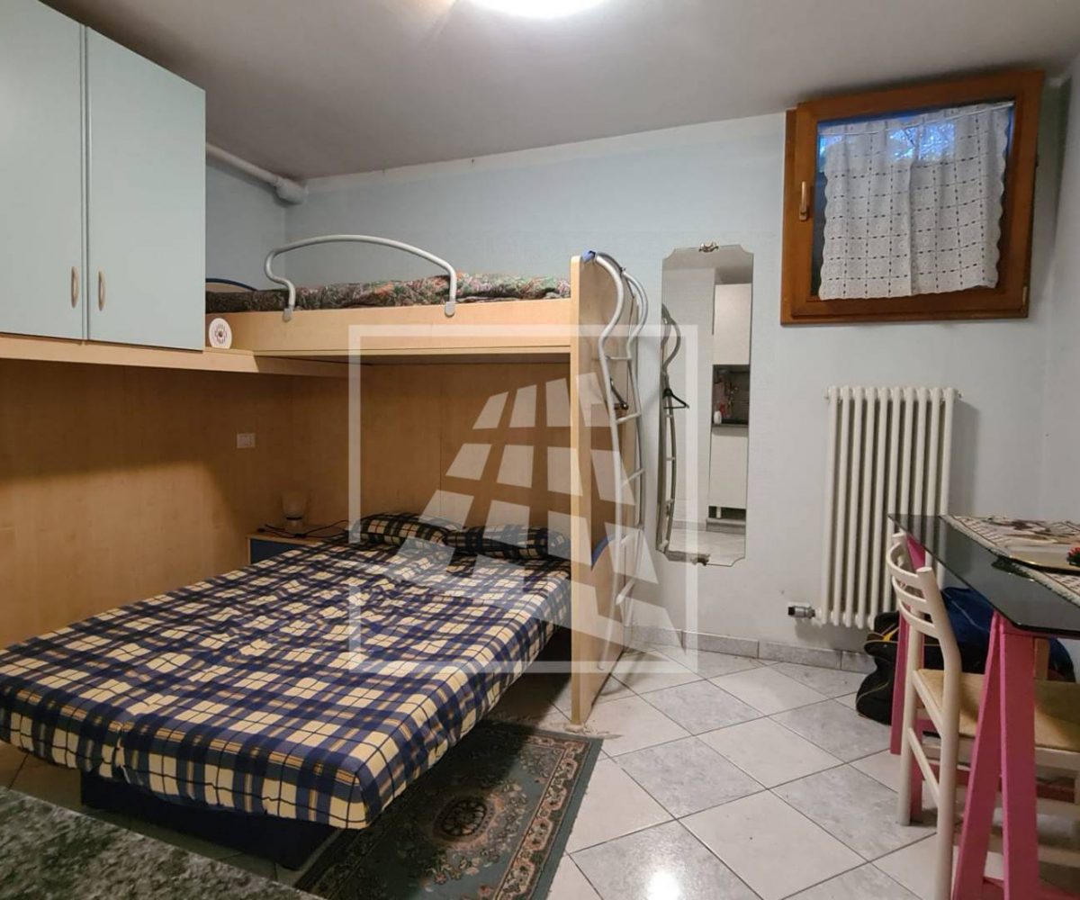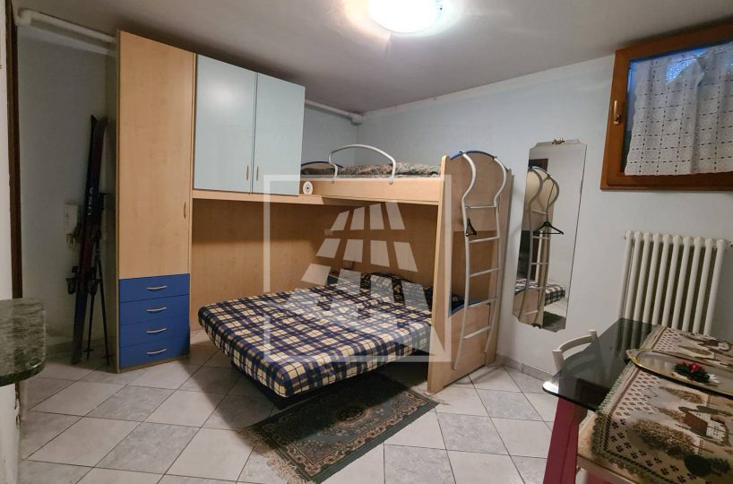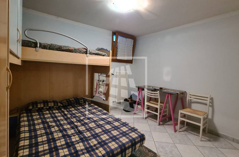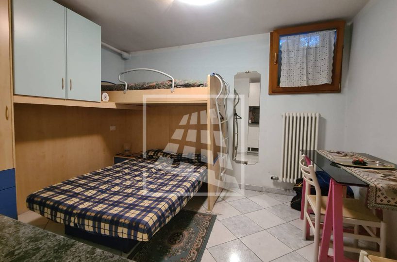 L’abitazione si apre su un ingresso con corridoio, ripostiglio (con possibilità di essere trasformato in bagno di servizio) e un luminoso soggiorno con cucina a vista.