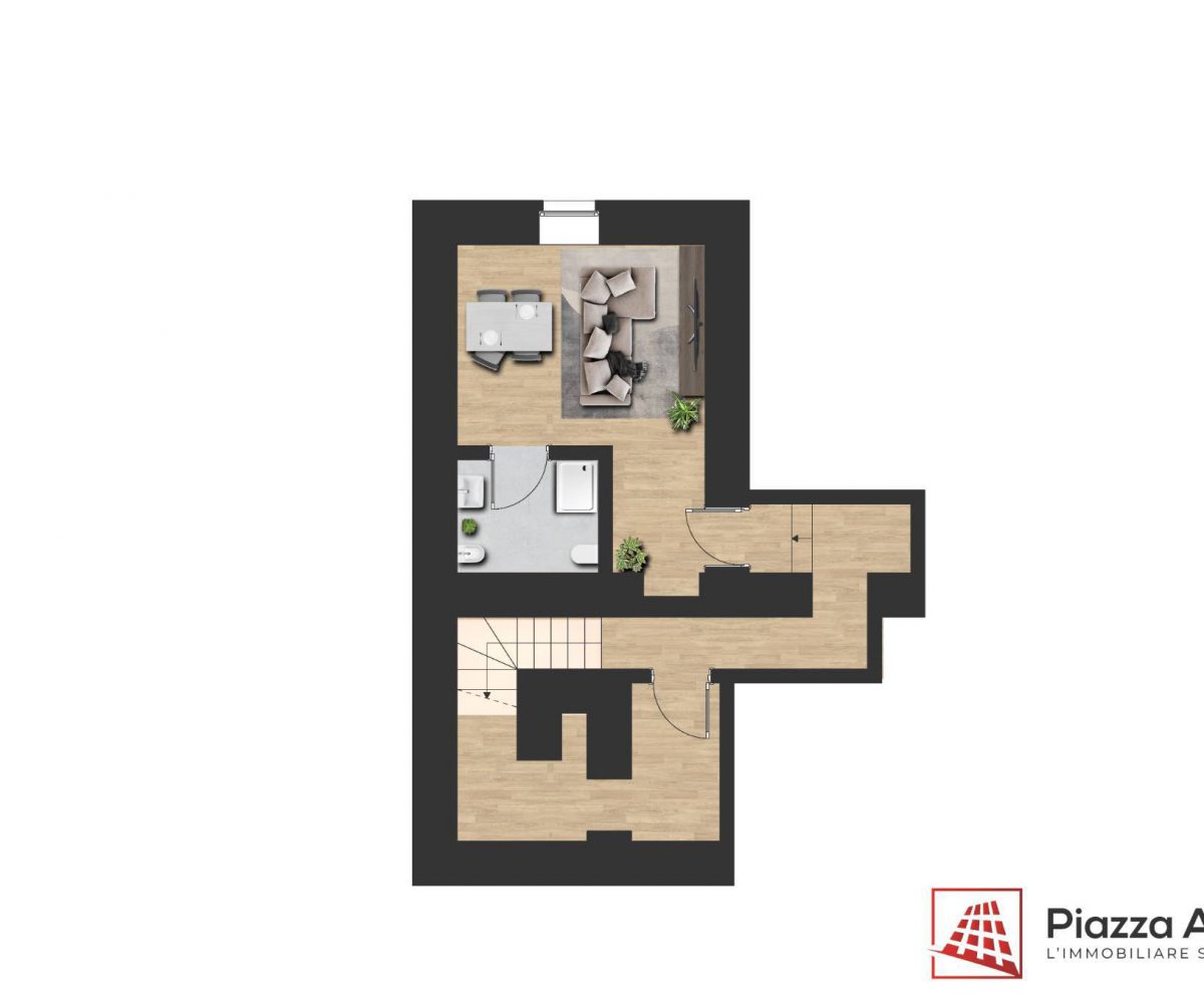 Il piano seminterrato offre un valore aggiunto: una taverna di 28 mq completa di finestre e bagno (non collegata direttamente all’appartamento).