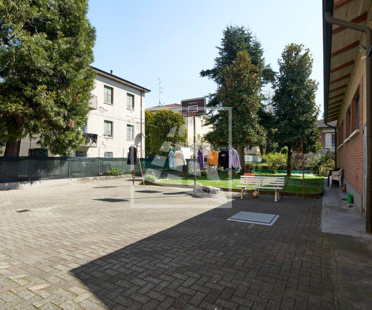 Nel prezzo richiesto rientrano anche spazi comuni come un cortile con doppio accesso carraio, una lavanderia, una soffitta e un giardino.