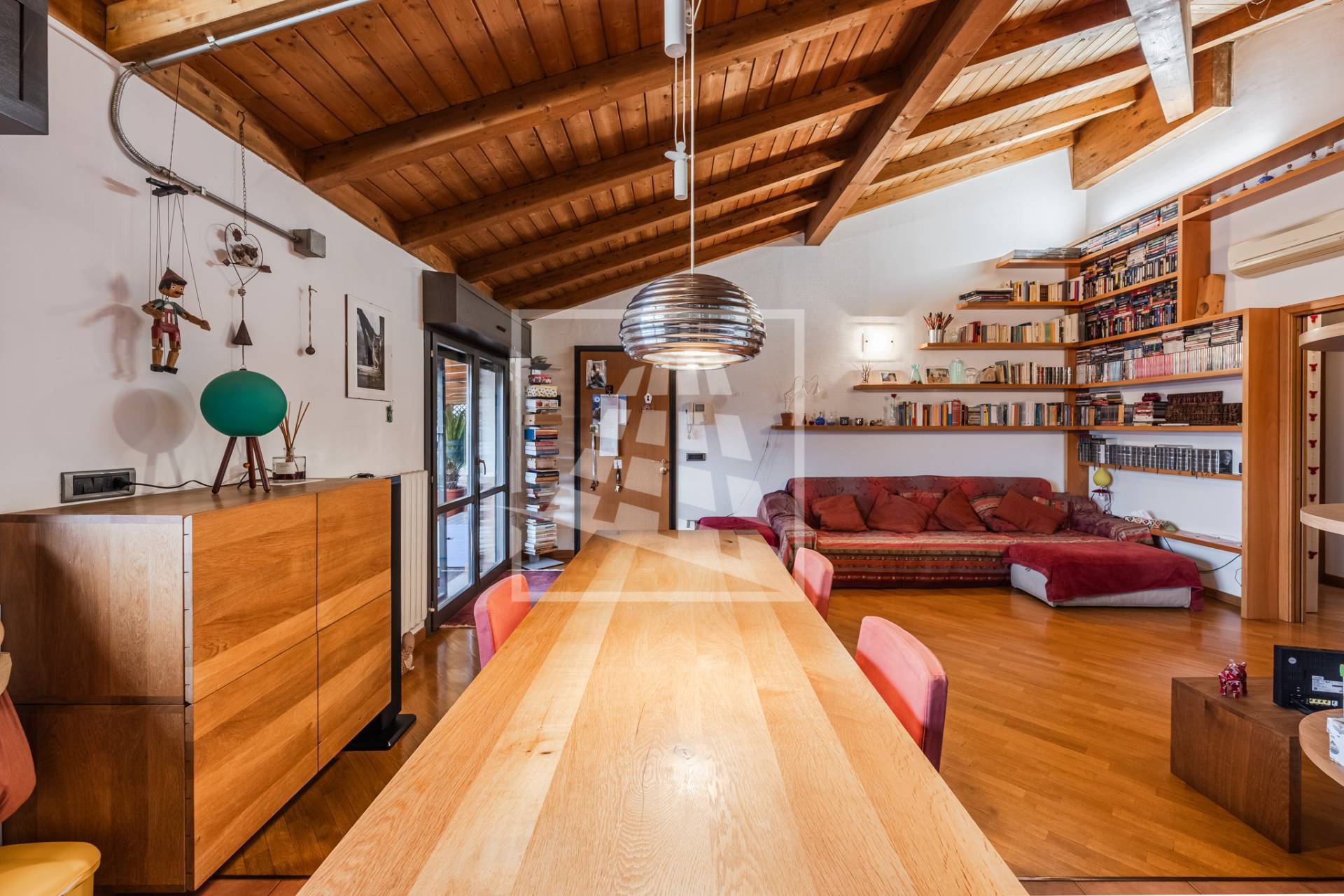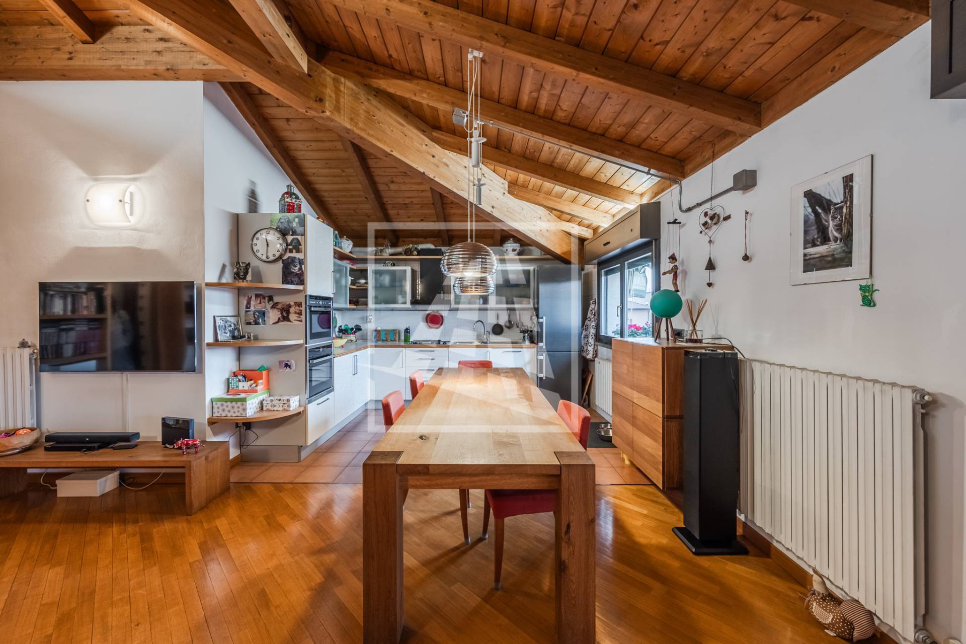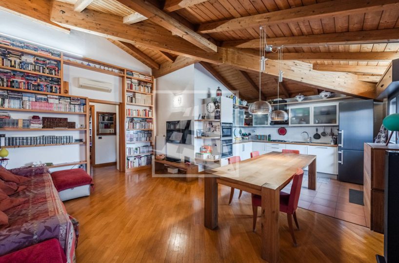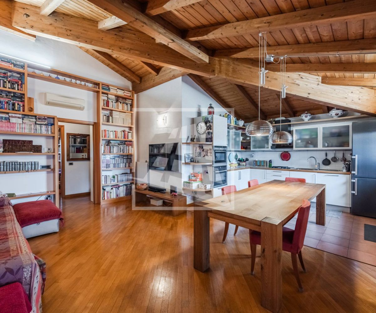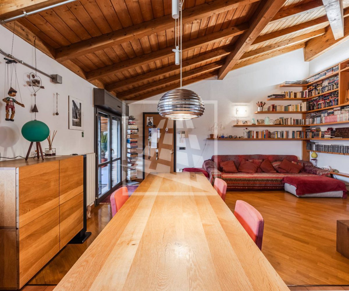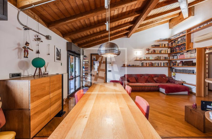 L’immobile si distingue per i suggestivi soffitti in legno con travi a vista ed eleganti pavimenti in parquet.