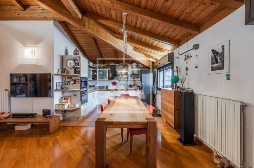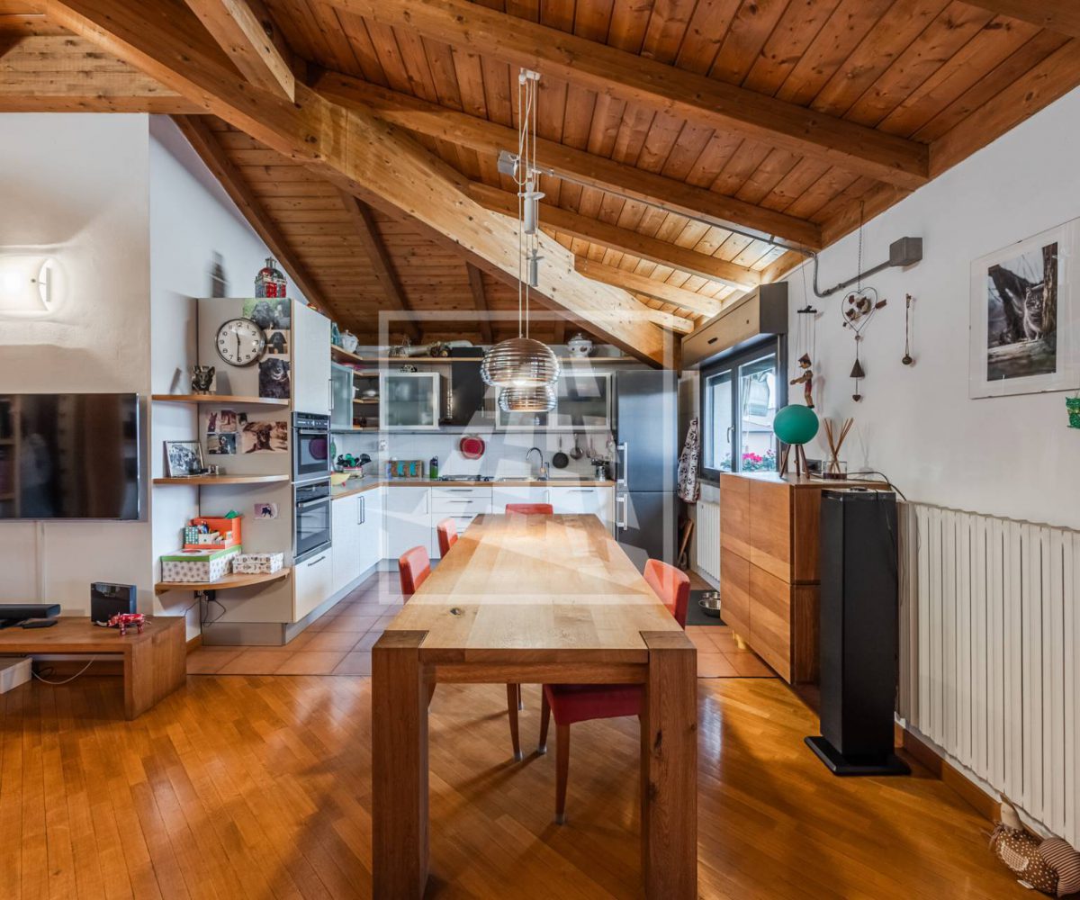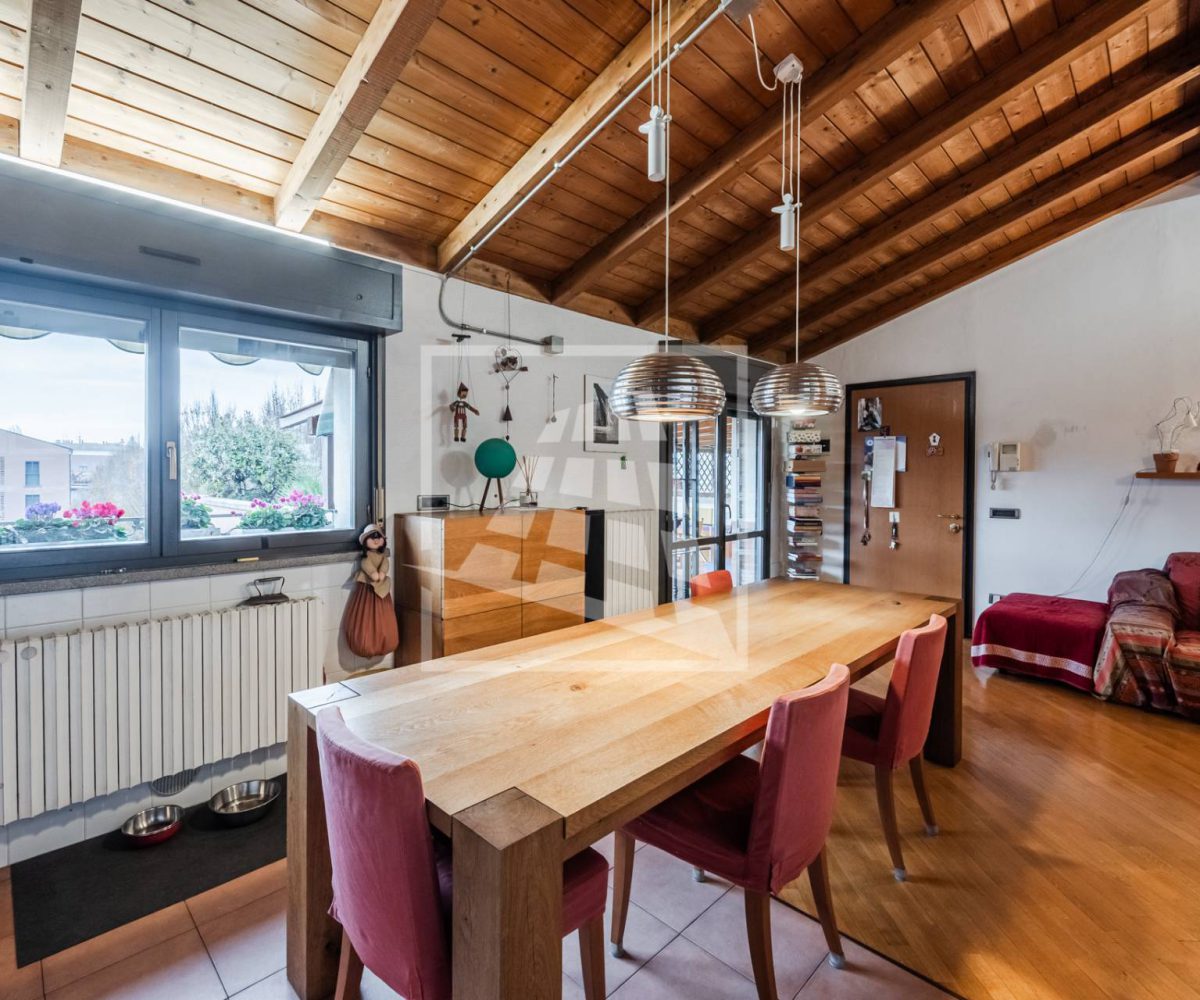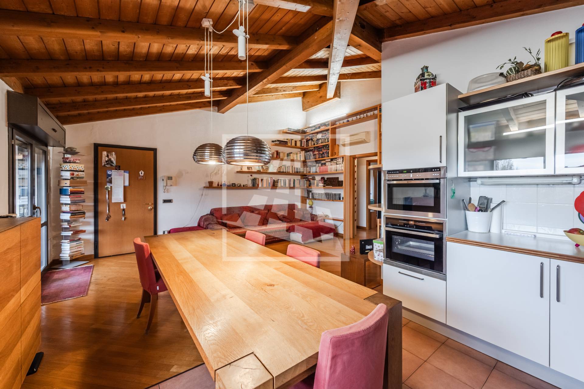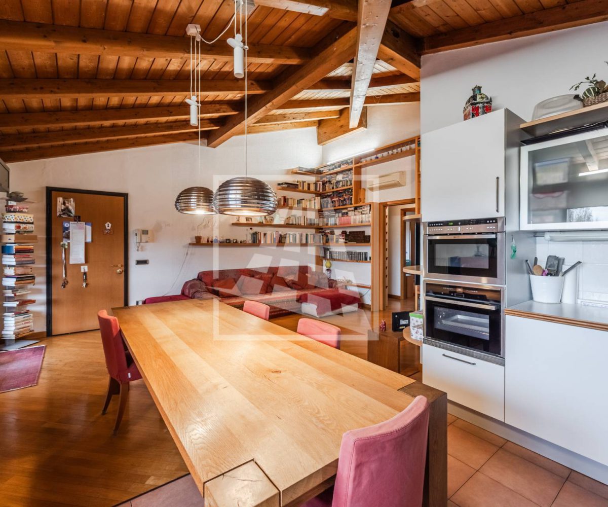 L’immobile si distingue per i suggestivi soffitti in legno con travi a vista ed eleganti pavimenti in parquet.