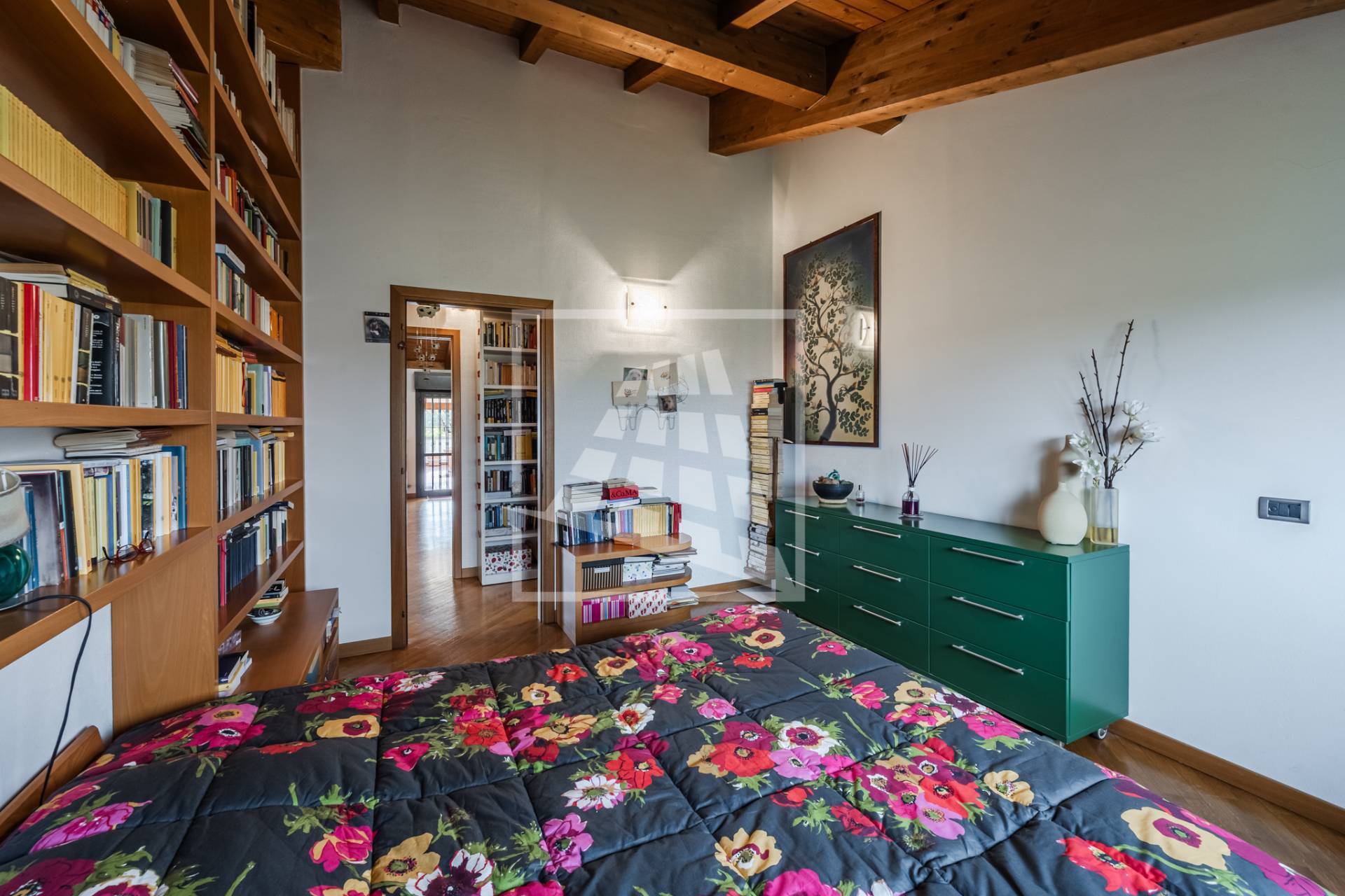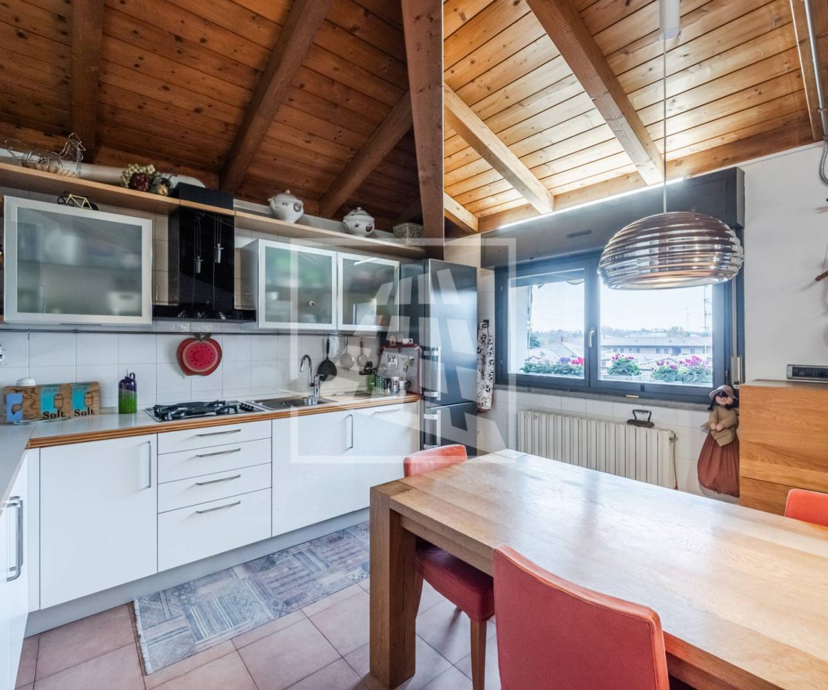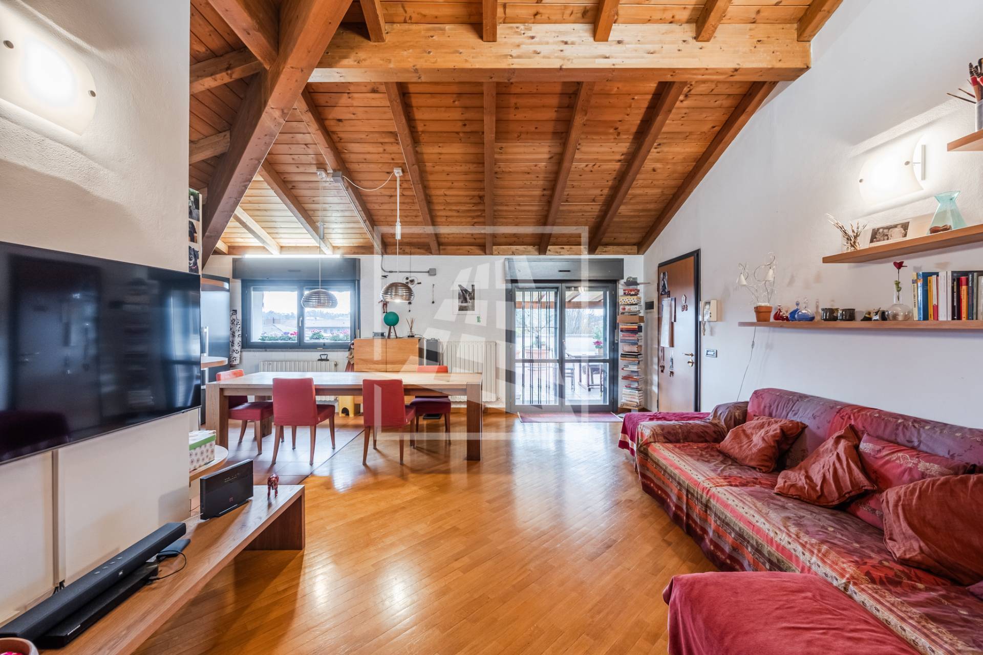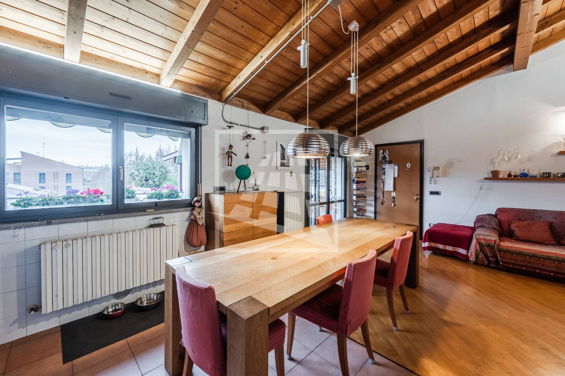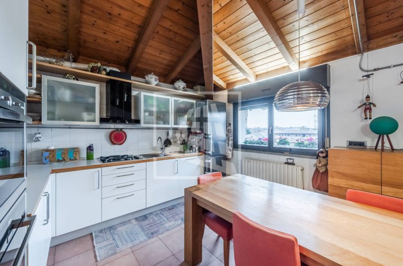 L’immobile si distingue per i suggestivi soffitti in legno con travi a vista ed eleganti pavimenti in parquet.
