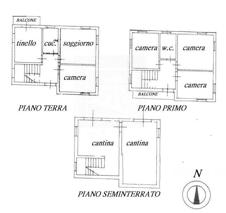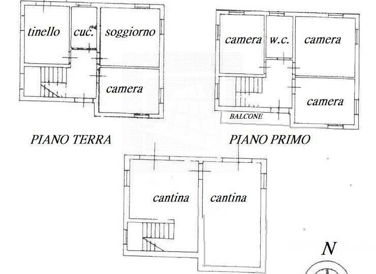 Il piano primo, raggiungibile da scala interna, comprende tre camere da letto matrimoniali, un bagno ed un secondo balcone.