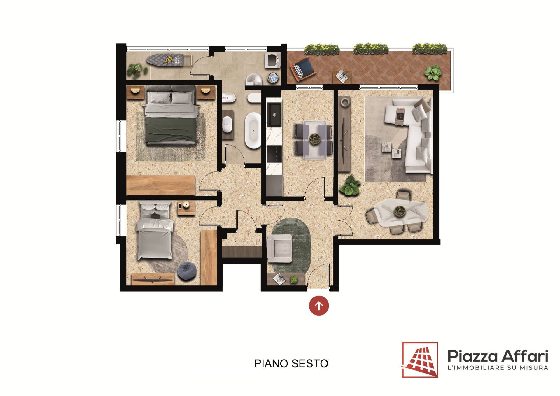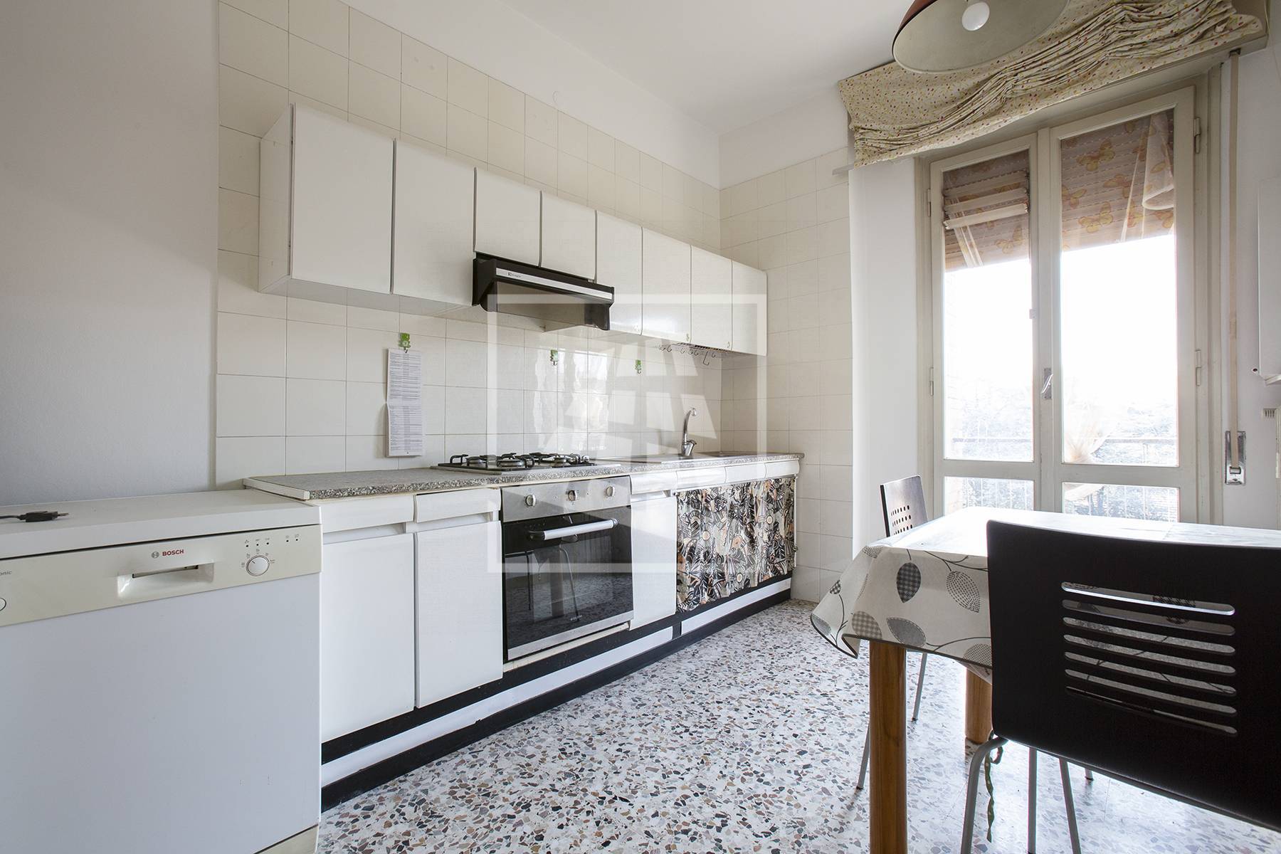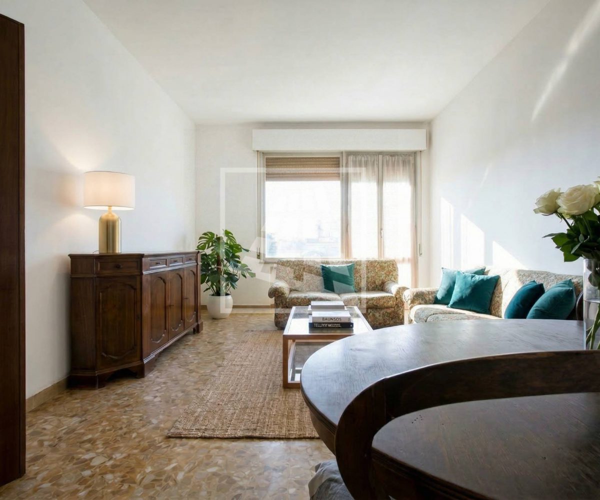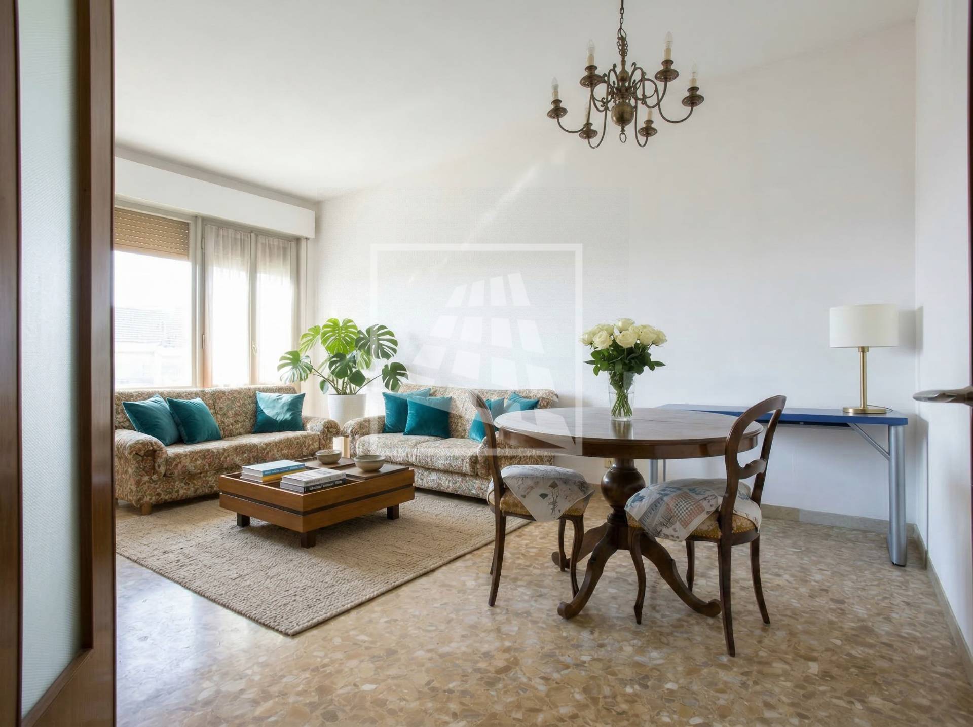 Appartamento sito al sesto piano con ascensore, l’abitazione dispone di un funzionale ingresso arredabile e di un soggiorno molto luminoso.