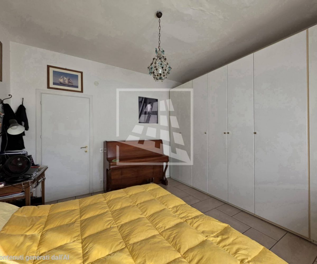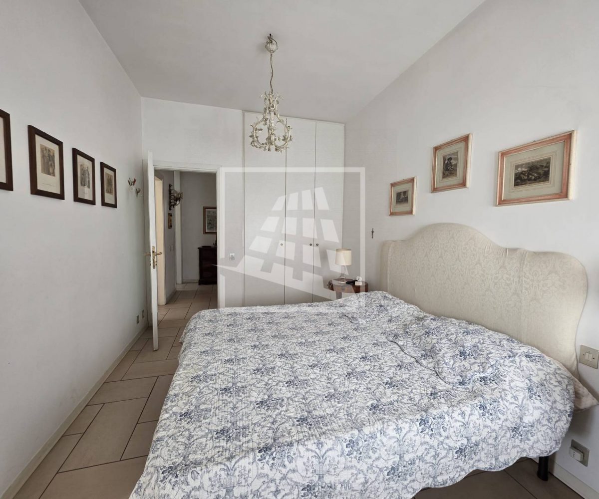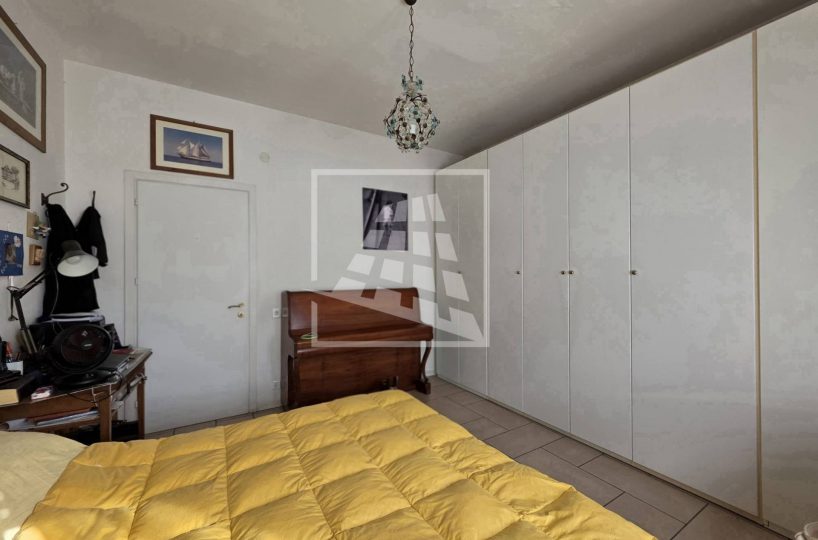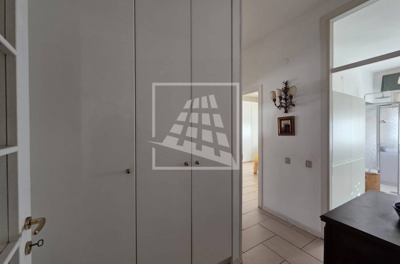 La zona notte, ben separata da un disimpegno con armadio a muro, ospita un bagno finestrato e due spaziose camere matrimoniali, una delle quali servita da un’ulteriore loggia semi-chiusa.