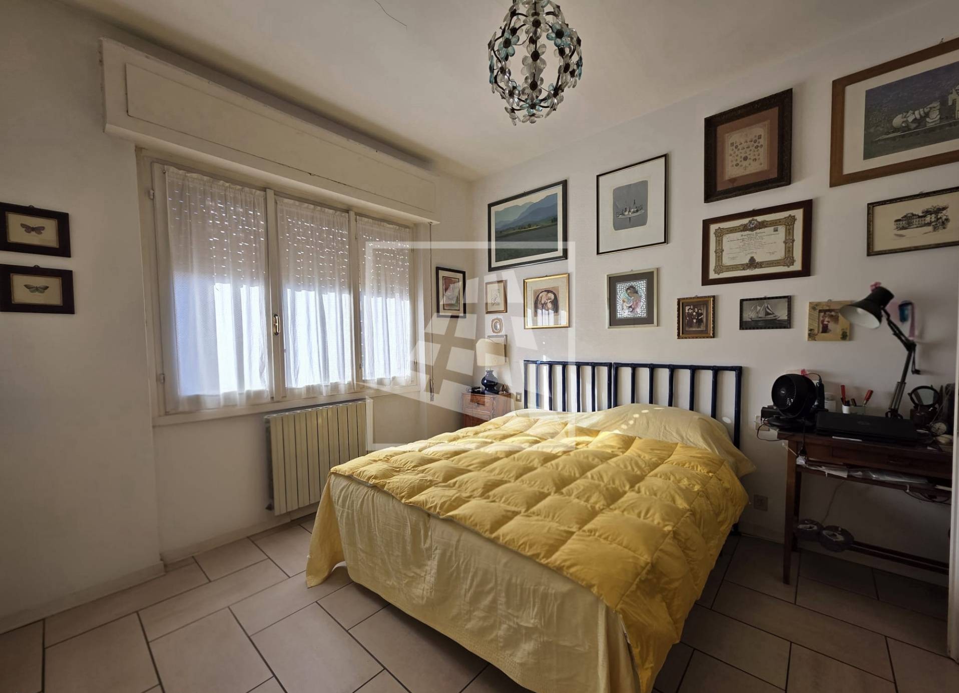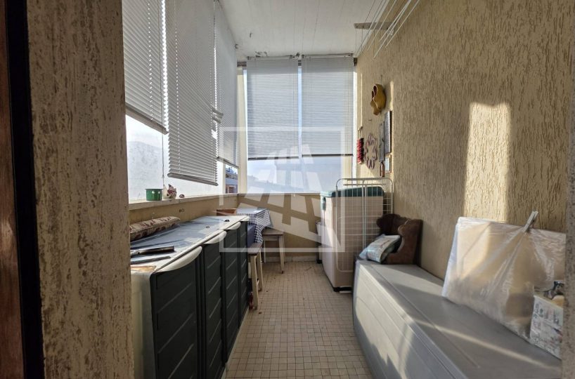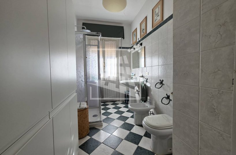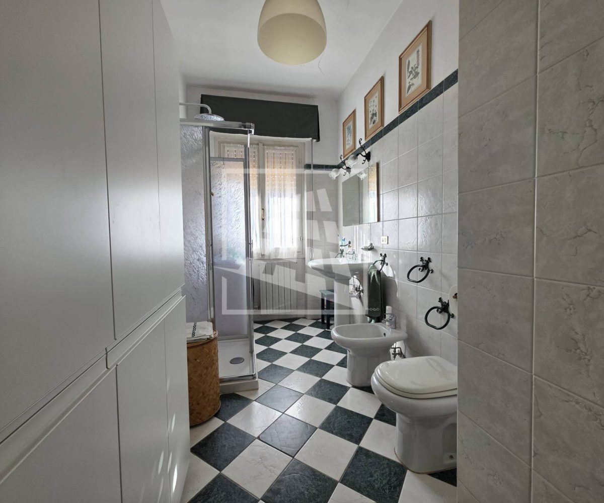 La zona notte, ben separata da un disimpegno con armadio a muro, ospita un bagno finestrato e due spaziose camere matrimoniali, una delle quali servita da un’ulteriore loggia semi-chiusa.