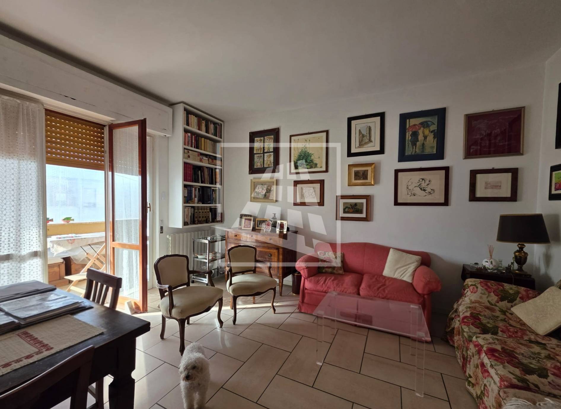 La zona giorno comprende un soggiorno e una cucina abitabile, entrambi con accesso diretto a una grande loggia semi-chiusa, spazio perfetto per pranzi all’aperto e momenti di relax.