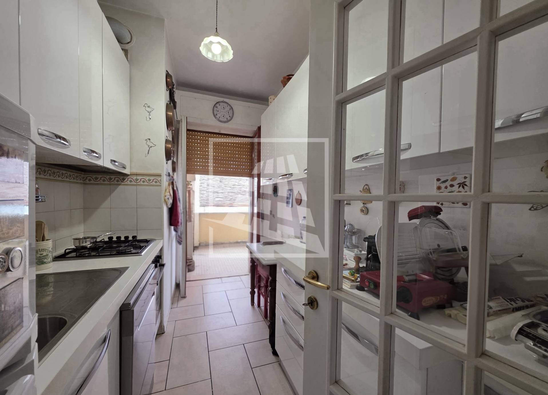 L’abitazione si compone di un ampio ingresso che conduce a un funzionale ripostiglio, ideale anche come dispensa.