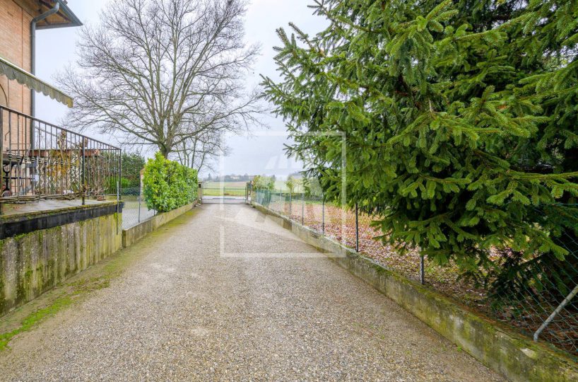 La casa è circondata su due lati dal giardino privato e sui restanti due dall’area cortiliva, il tutto interamente recintato e dotato di cancello automatico di accesso.