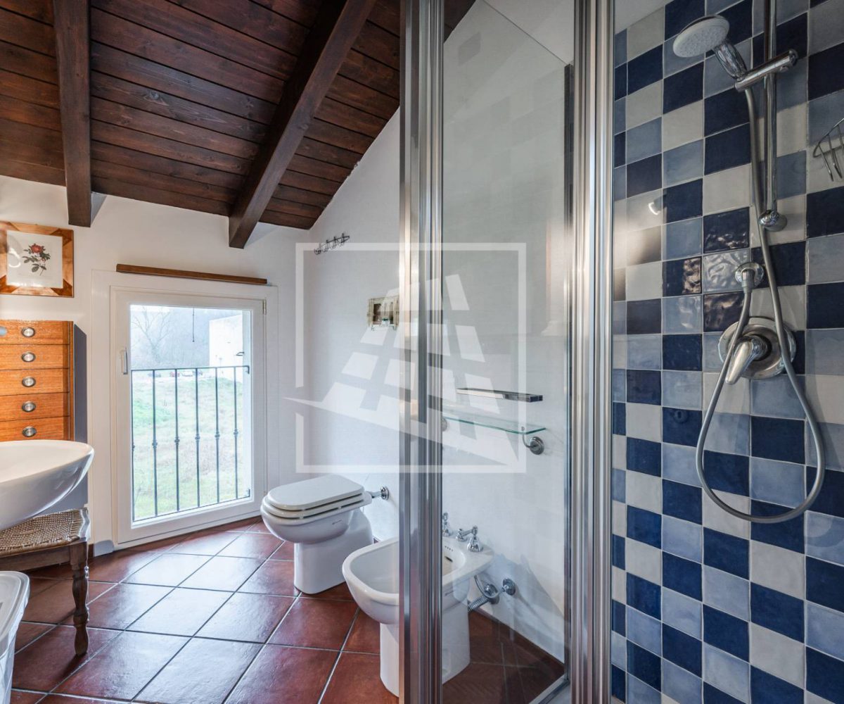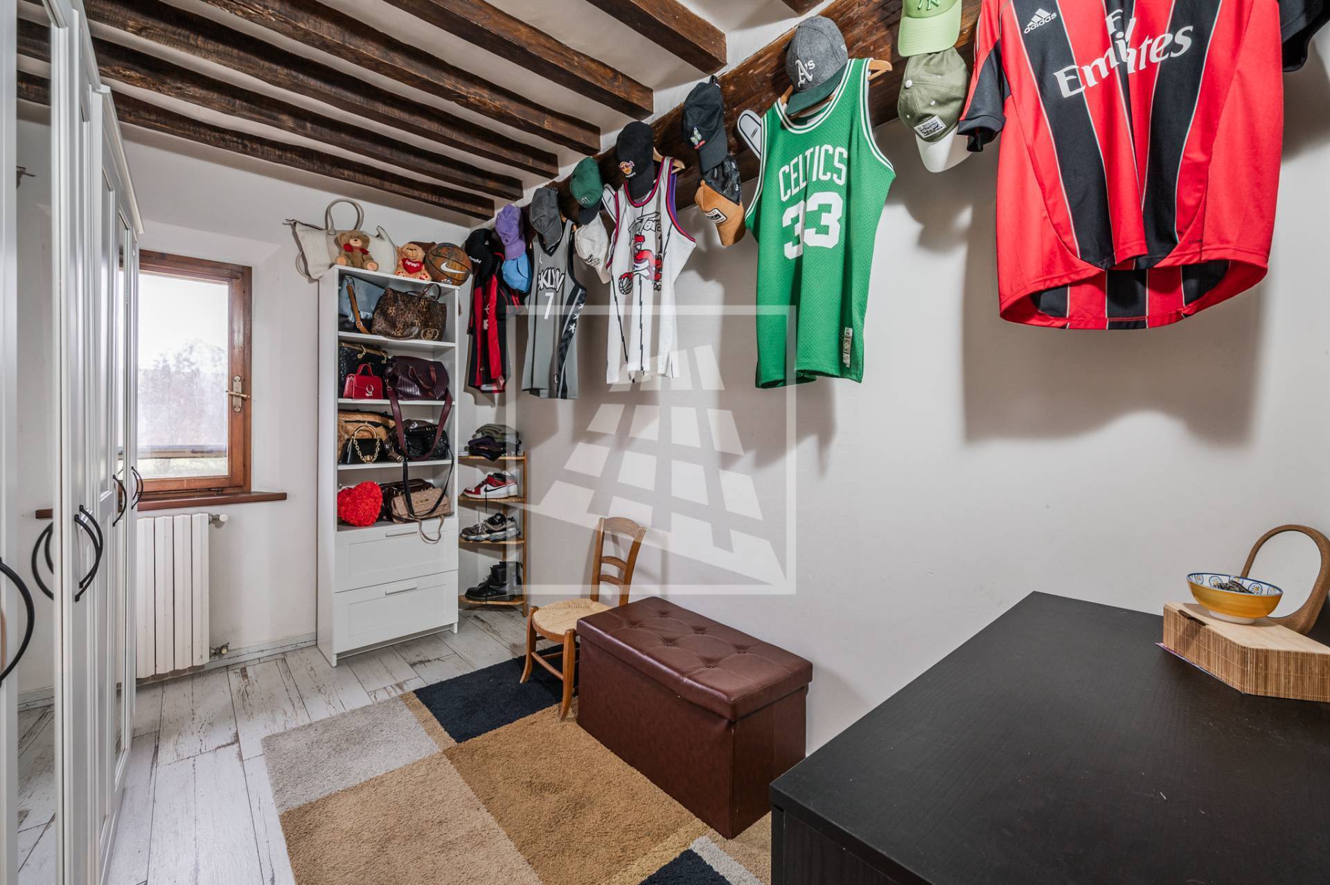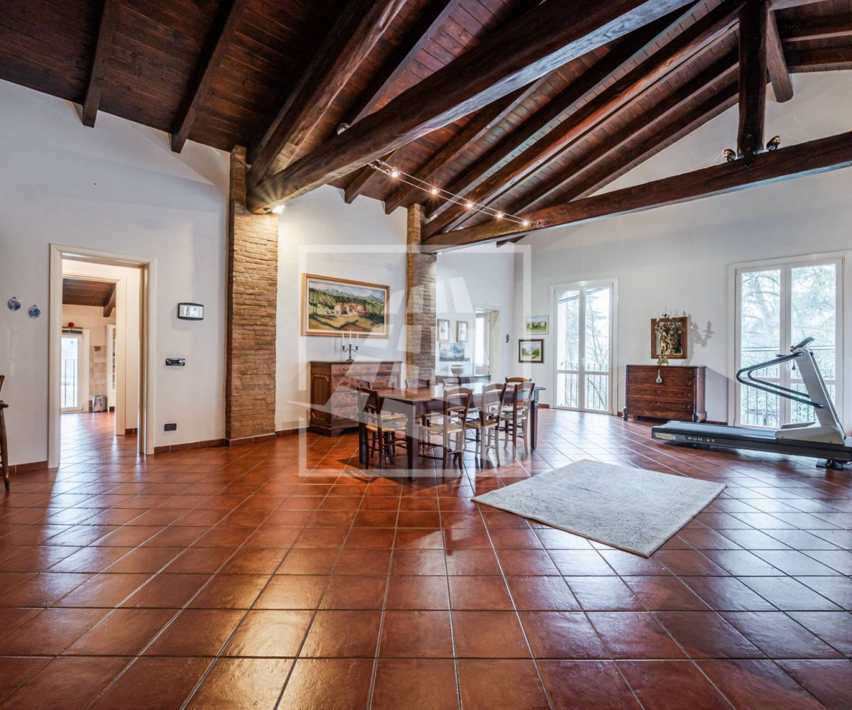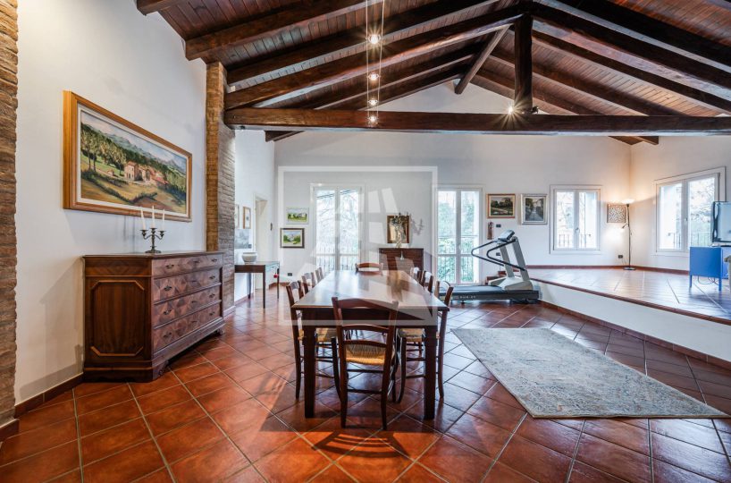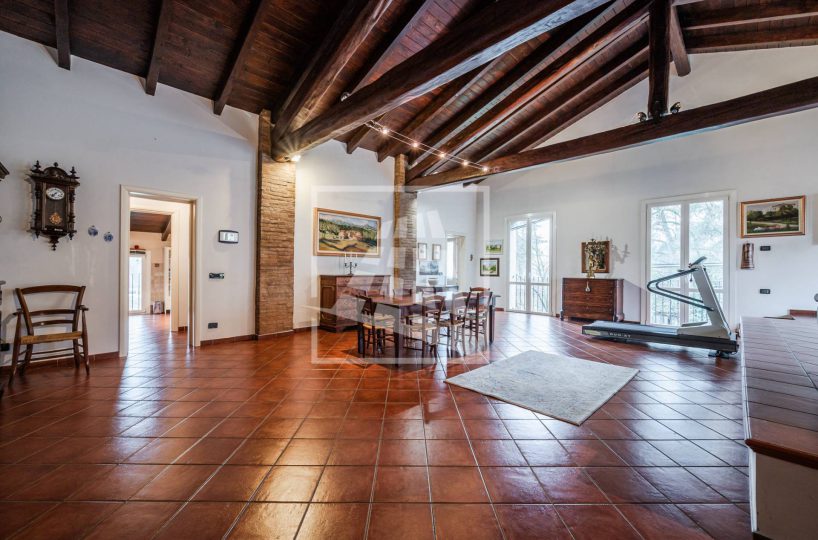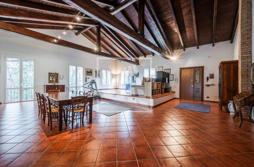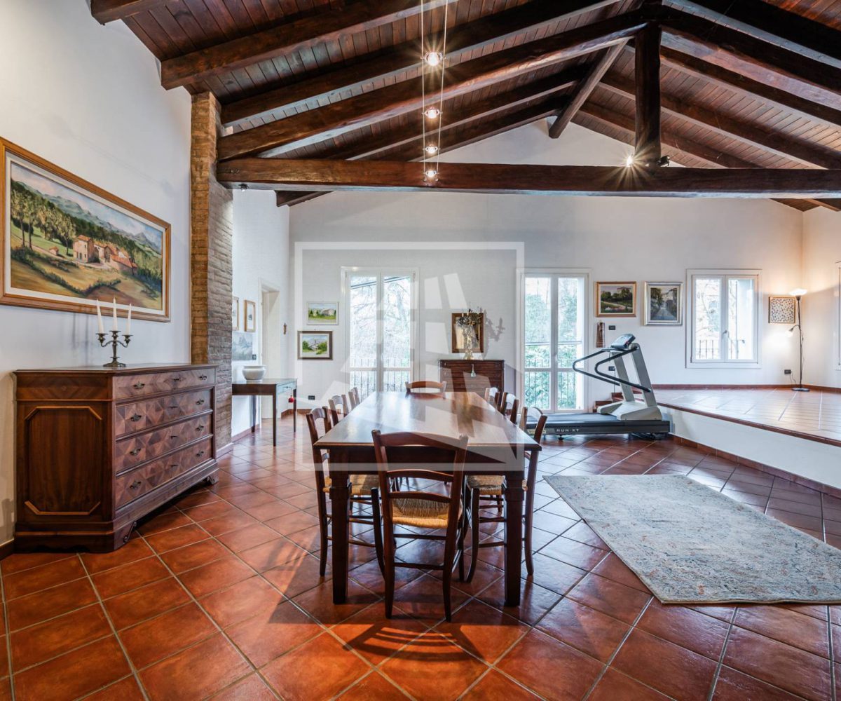 Di pertinenza, al piano terra, la proprietà dispone di una cantina, un’autorimessa di 65 mq, un magazzino di 130 mq e un ampio spazio sottotetto utilizzabile come palestra o studio.