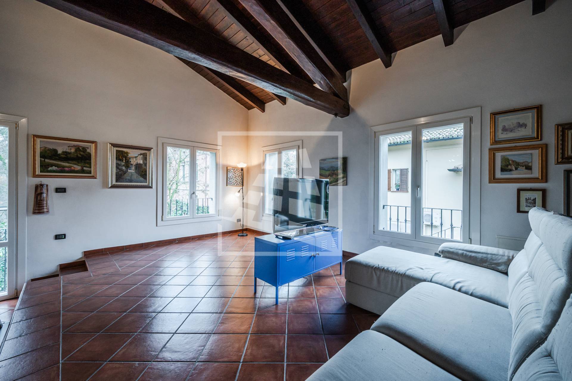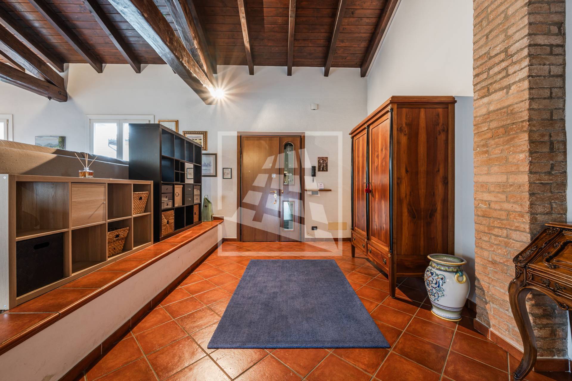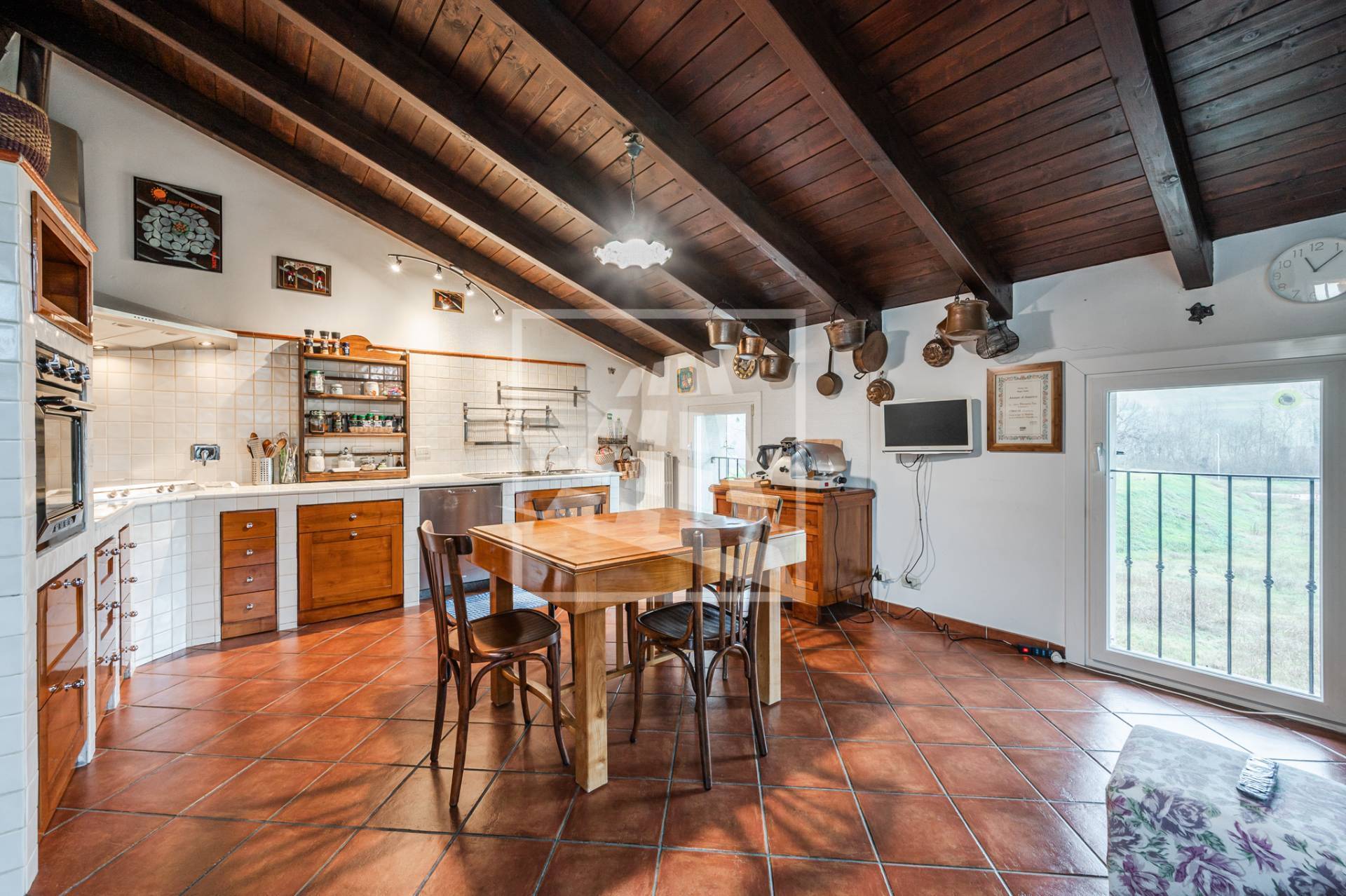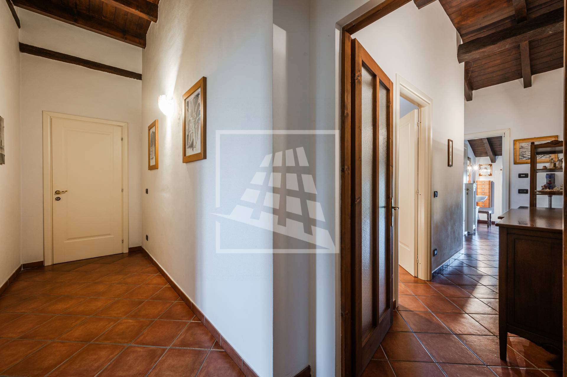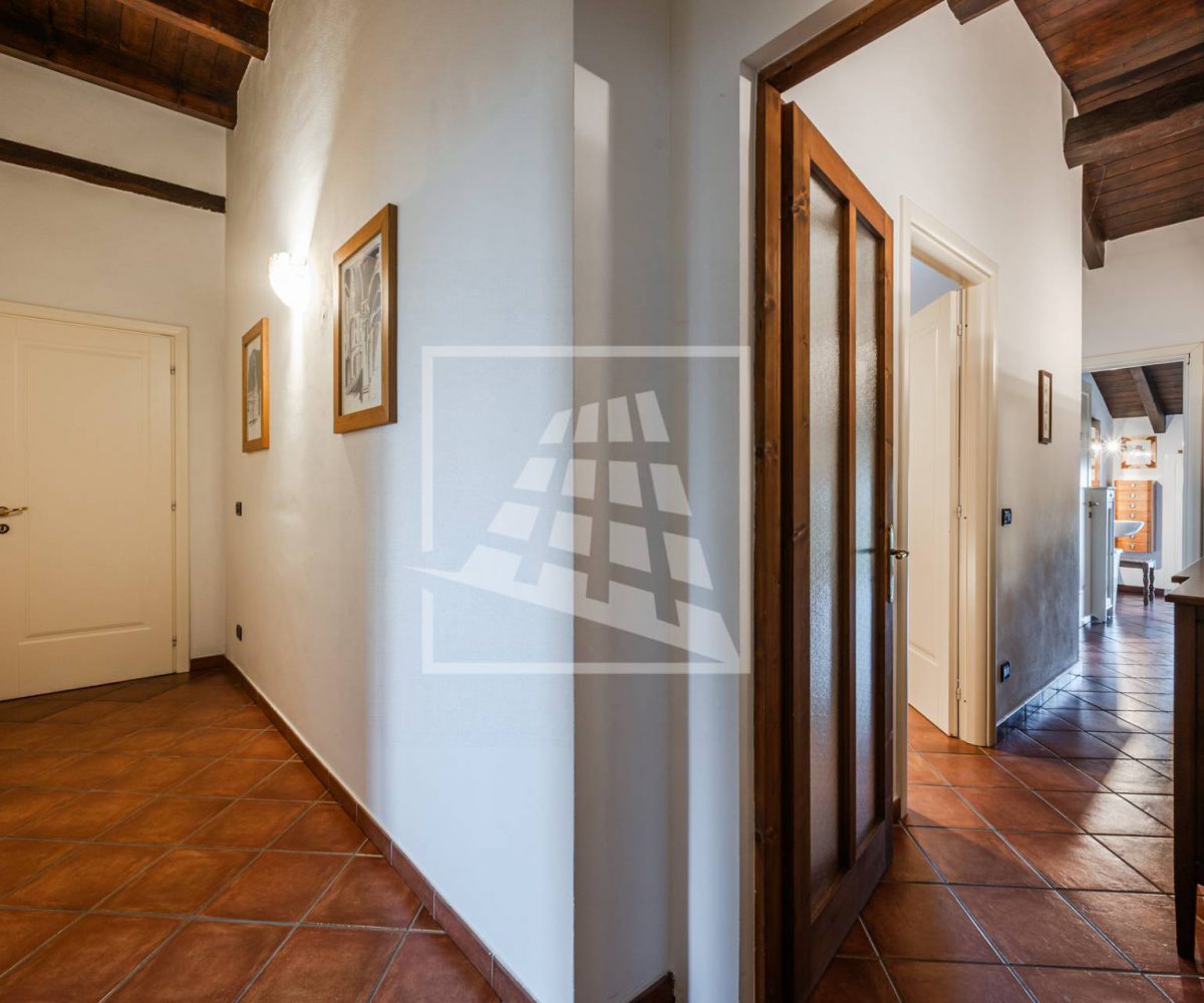 Di pertinenza, al piano terra, la proprietà dispone di una cantina, un’autorimessa di 65 mq, un magazzino di 130 mq e un ampio spazio sottotetto utilizzabile come palestra o studio.