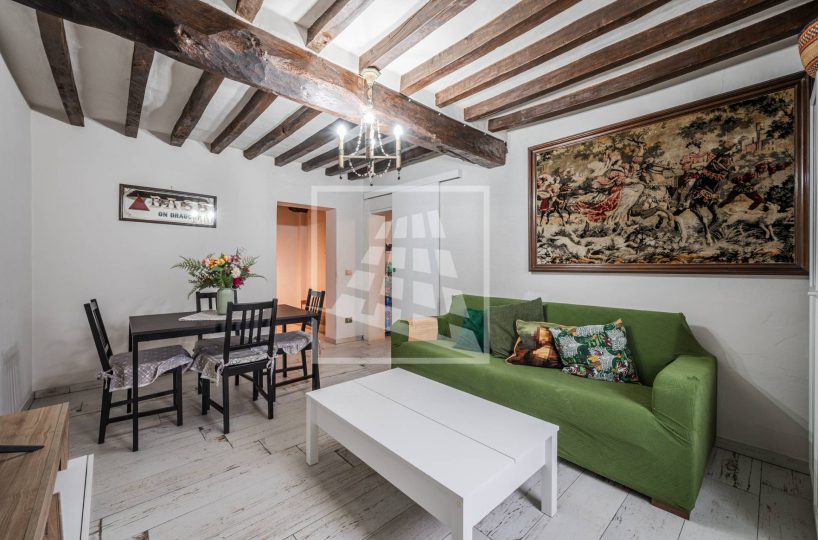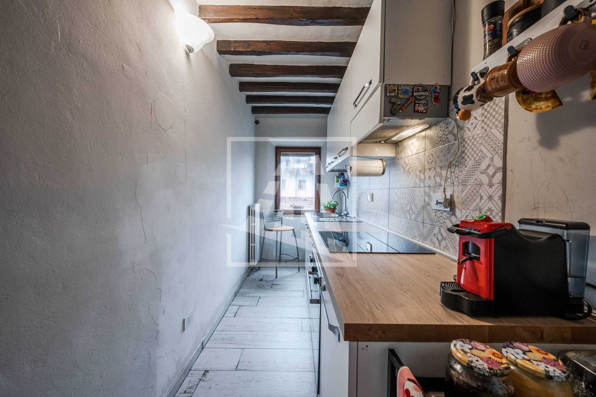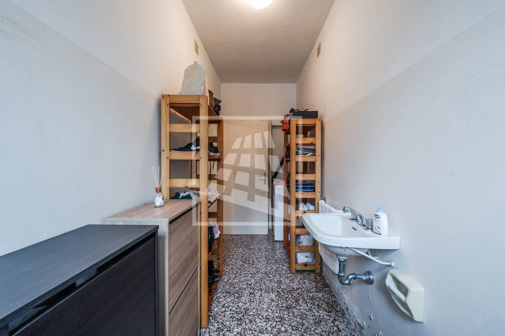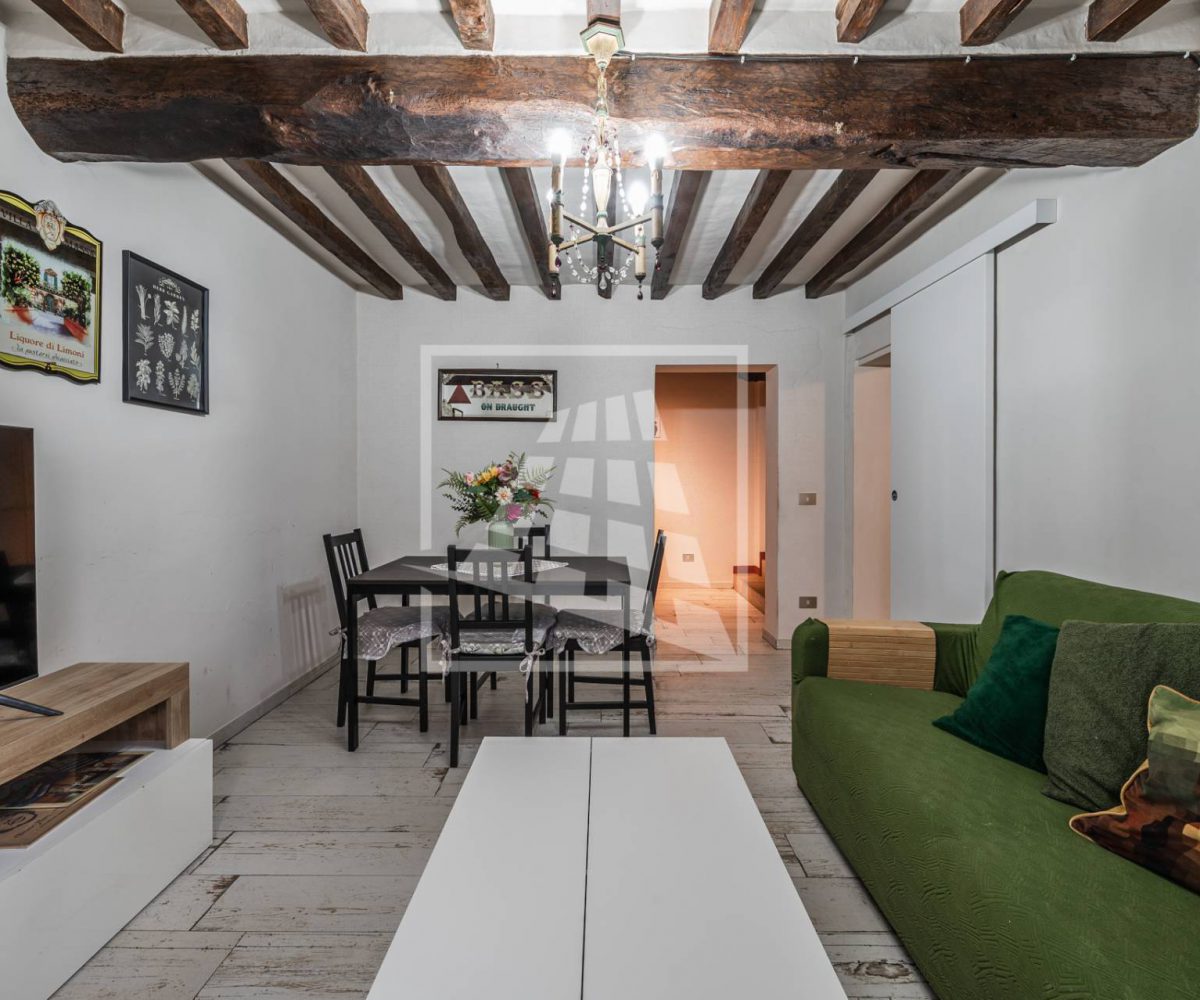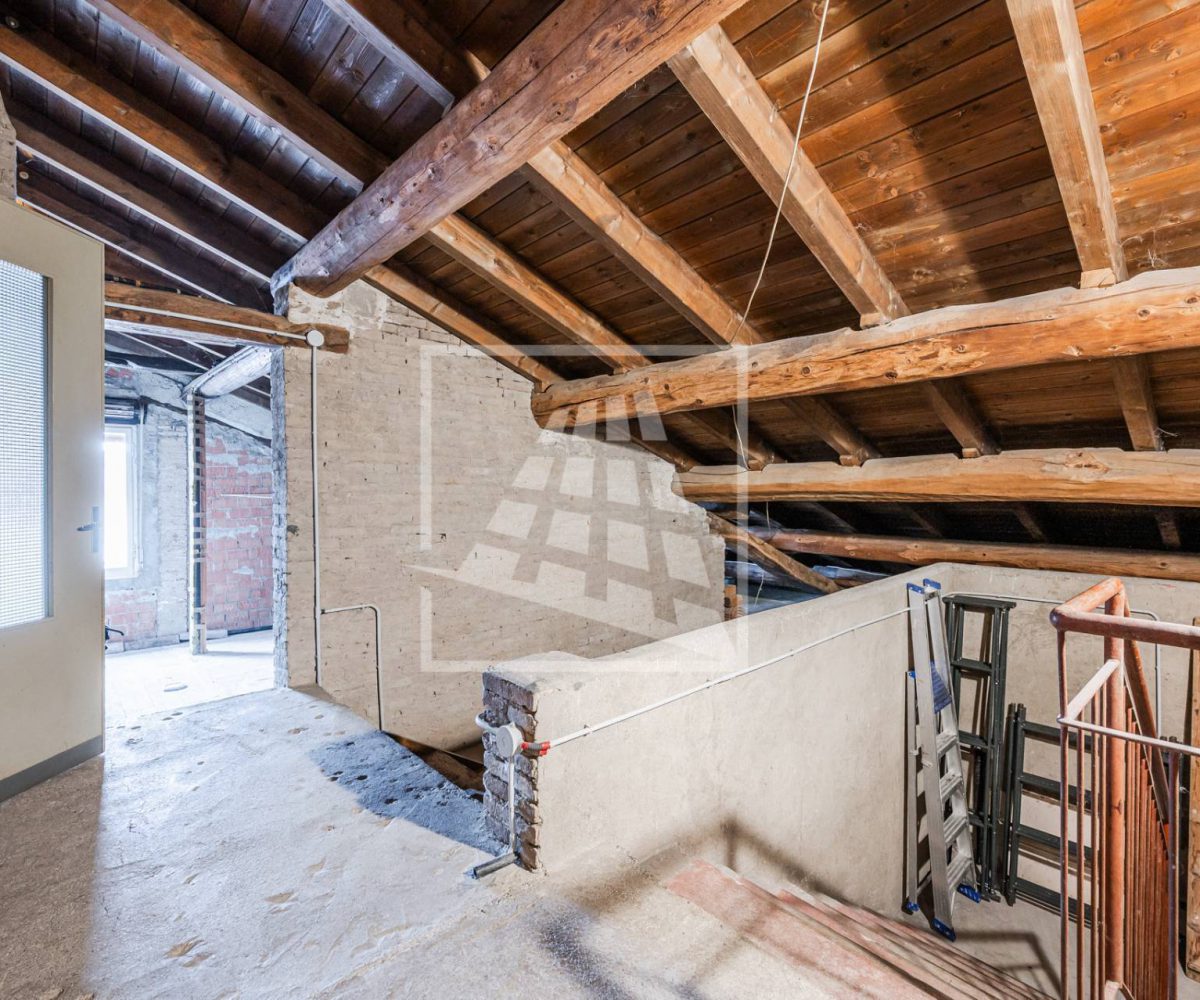 L’abitazione si apre su un luminoso salone di circa 82 mq, caratterizzato da un suggestivo soffitto in legno con travi a vista alto 5 metri e un accogliente pedana rialzata, attualmente dedicata alla zona living, completano la zona giorno una cucina abitabile in muratura, un antibagno e bagno finestrato.