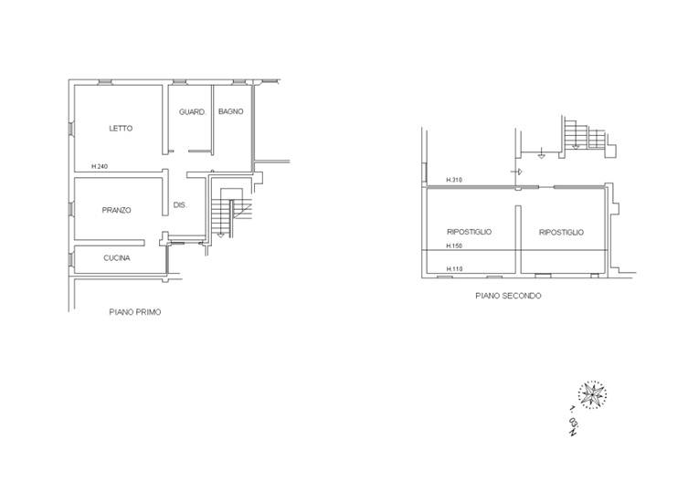 Sempre al primo piano sono collocate le altre due unità abitative: la prima, di 70 mq, è composta da un soggiorno con cucinotto, disimpegno, una camera da letto matrimoniale, bagno finestrato e una cabina armadio utilizzabile come camera singola, completano l’unità al piano terra, una cantina, tre ripostigli, un bagno con finestra, un garage singolo e due locali mansardati al secondo piano.