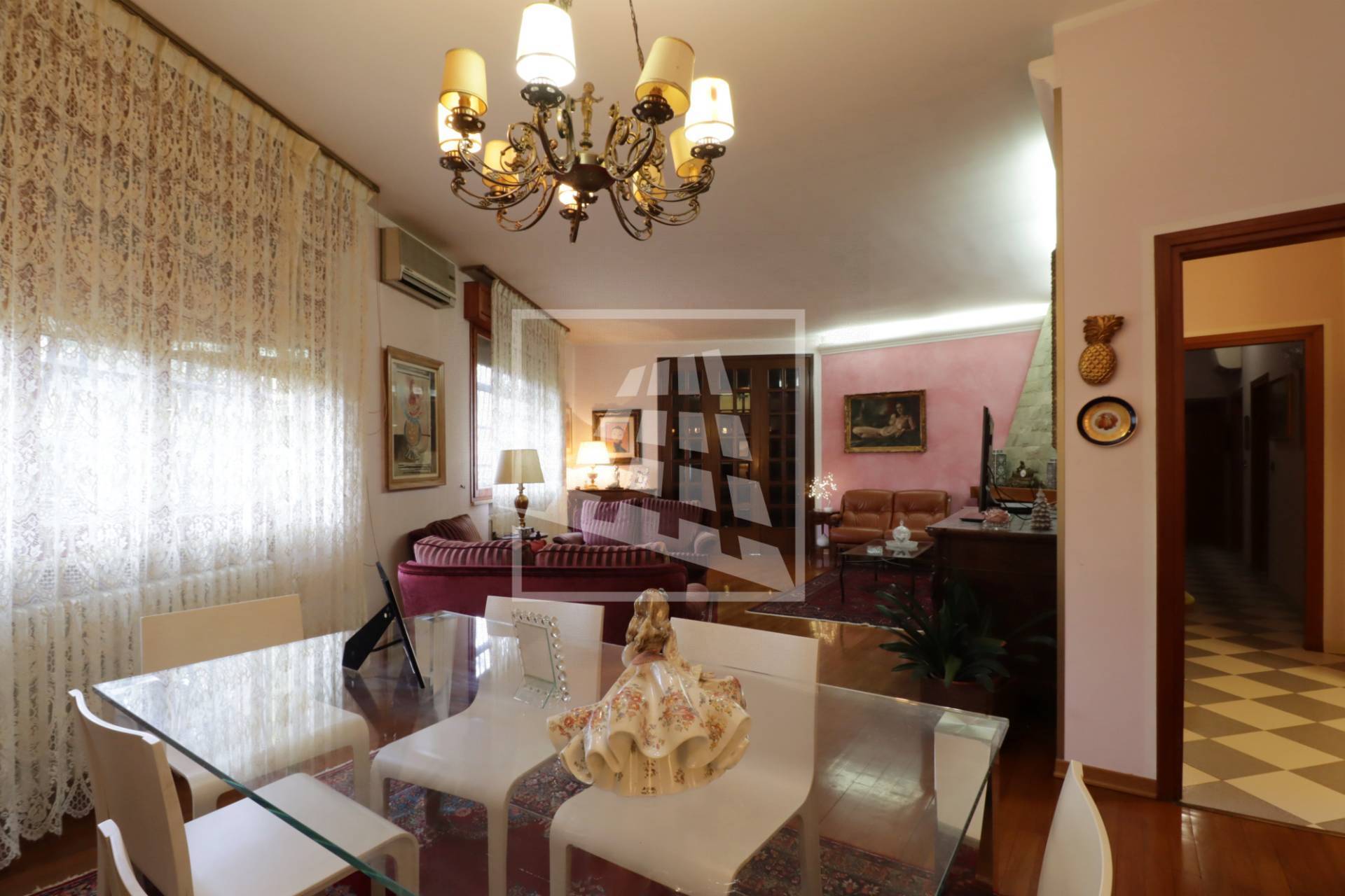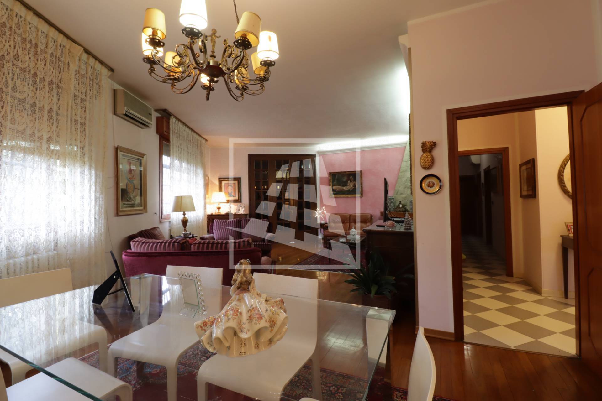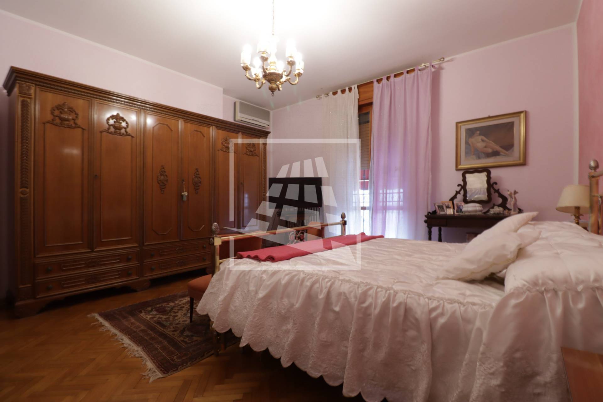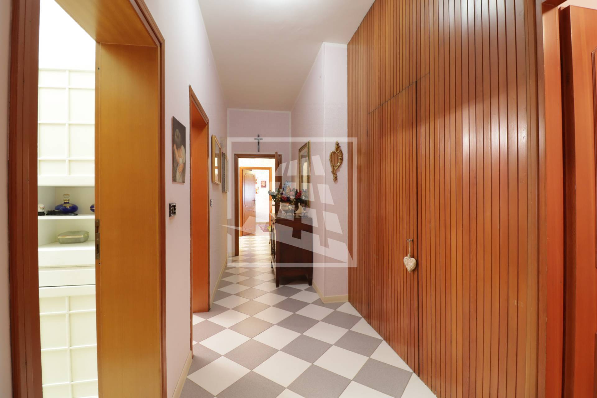 La zona notte, separata da un disimpegno con ripostiglio ad uso cabina armadio, ospita tre camere matrimoniali, di cui una servita da balcone privato ed infine un bagno completo di vasca e doccia.
