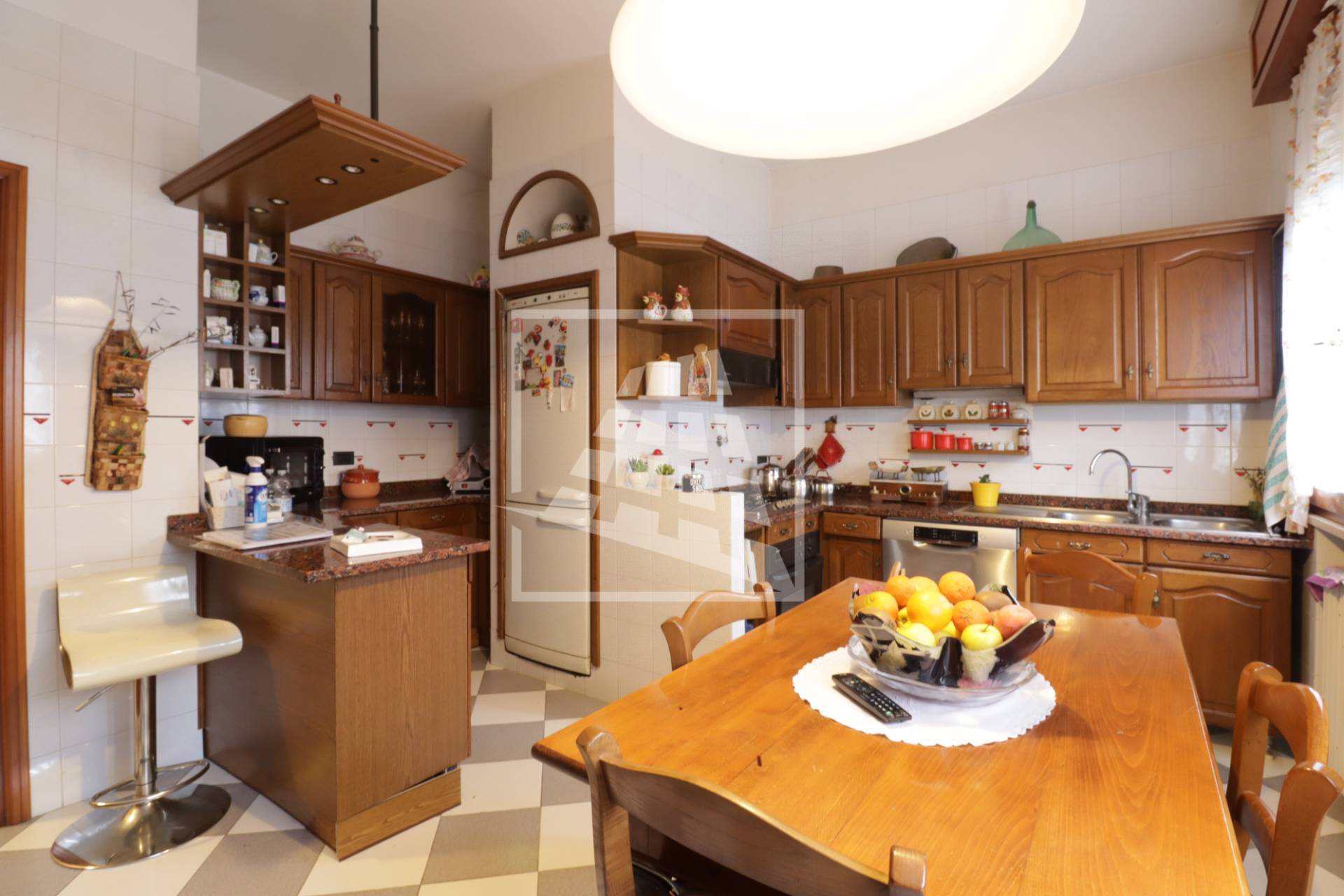 L’ingresso conduce a un ampio salone con camino e a una cucina abitabile in muratura.