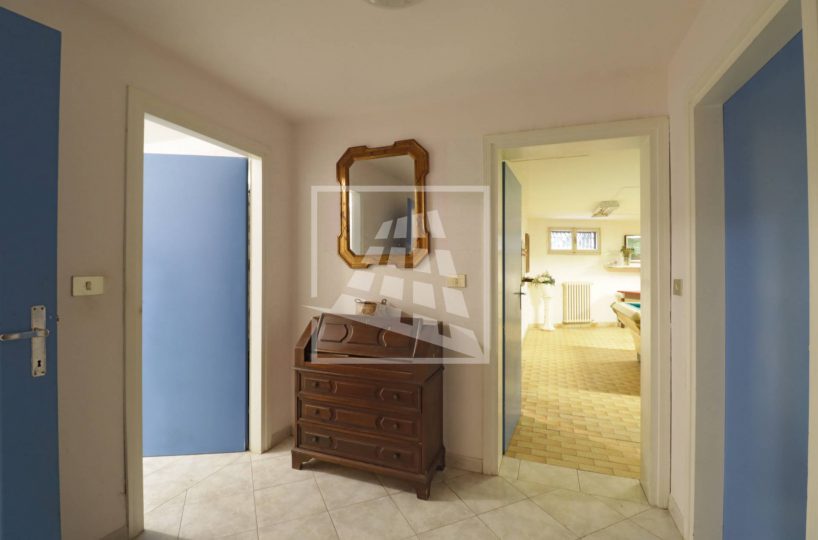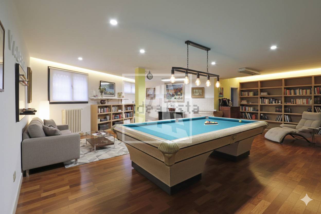 La casa è completata da un comodo piano seminterrato con ingresso autonomo, ideale per chi desidera coniugare casa e lavoro: lo spazio comprende infatti un magazzino di 110 mq, oltre a cantina, lavanderia e un’autorimessa doppia.