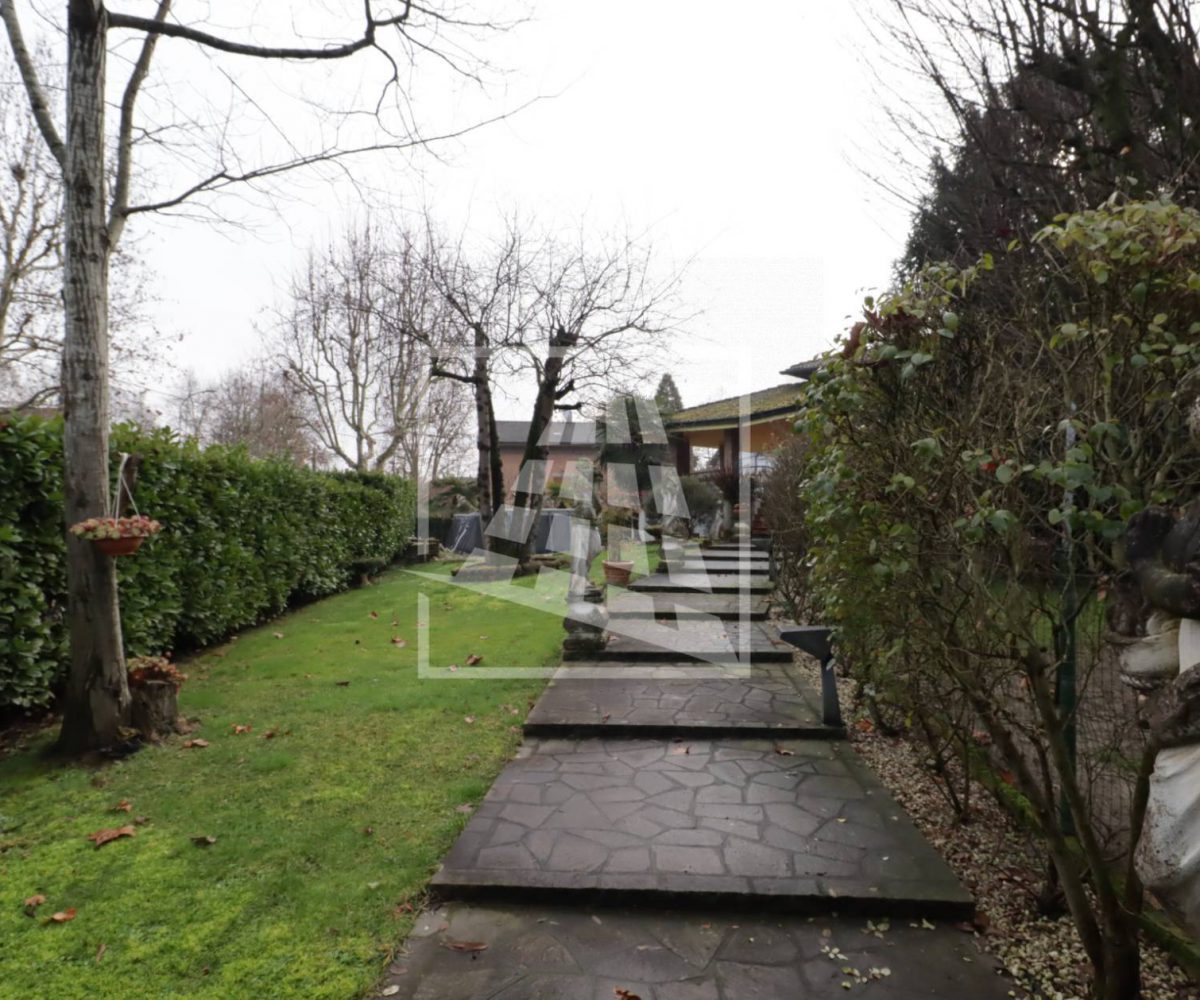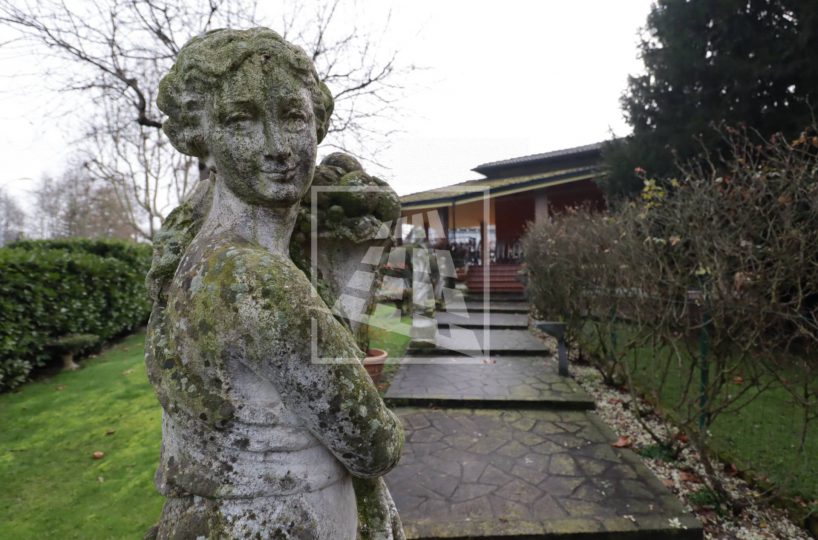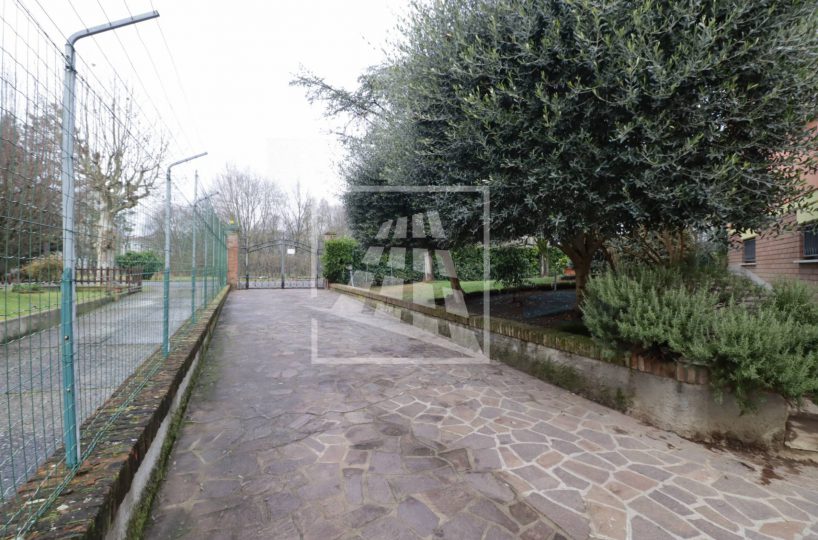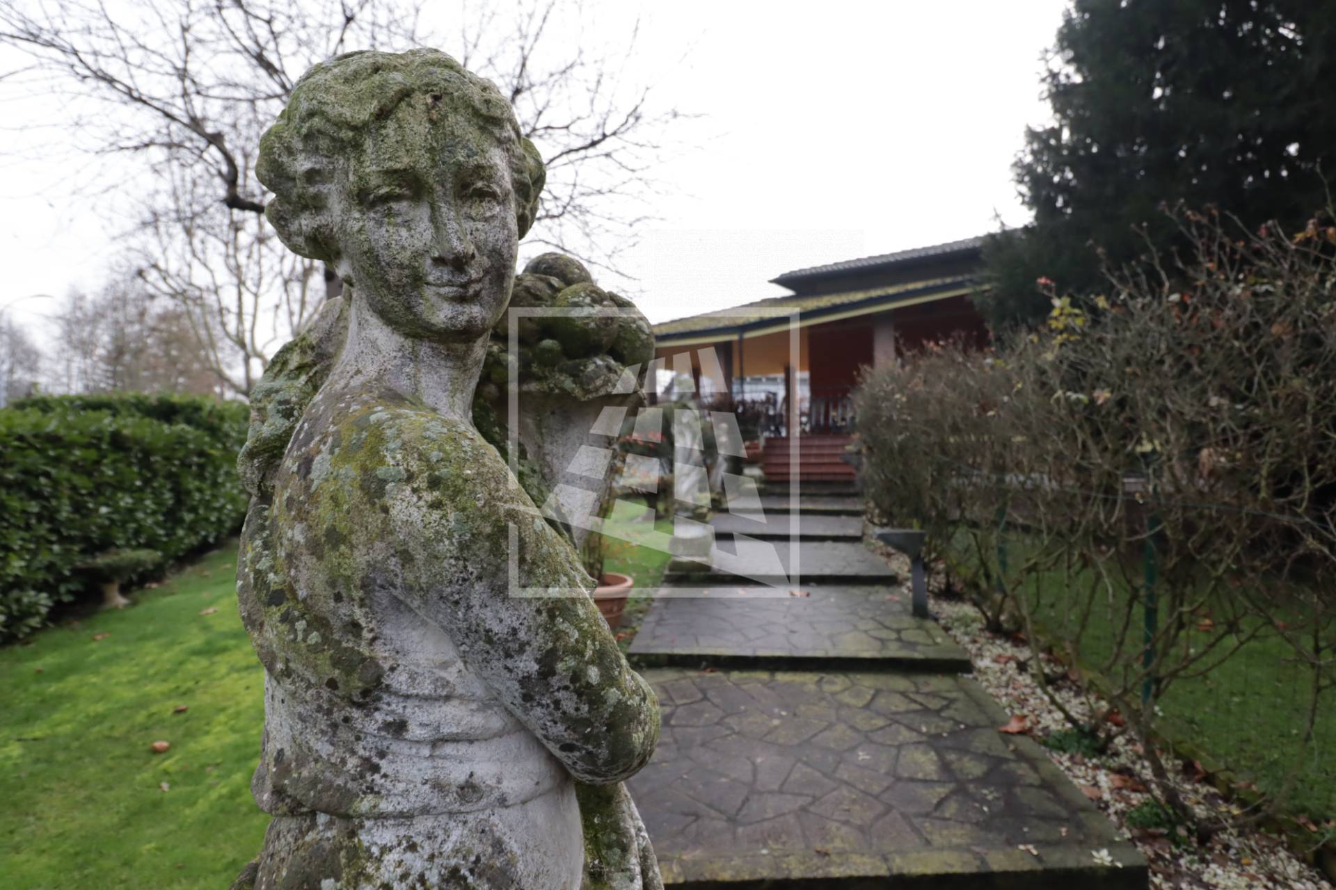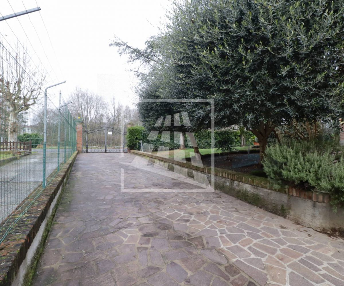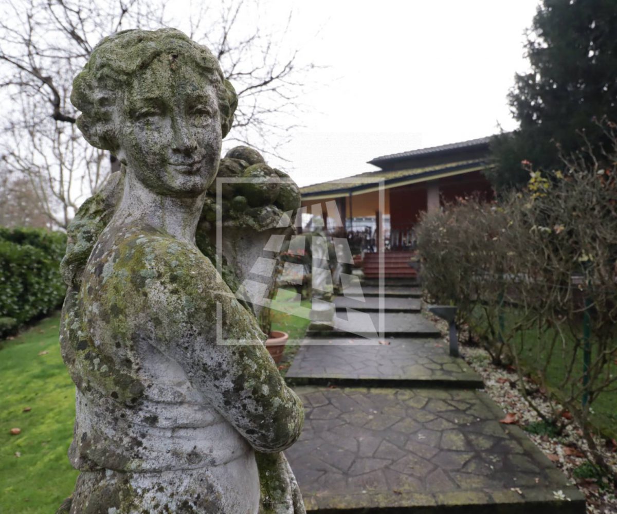 L’accesso alla dimora si distingue per un fascino nobile e d’altri tempi: un lungo vialetto pedonale attraversa il rigoglioso giardino privato, accompagnando lo sguardo tra eleganti statue d’ispirazione classica che le conferiscono un carattere unico.