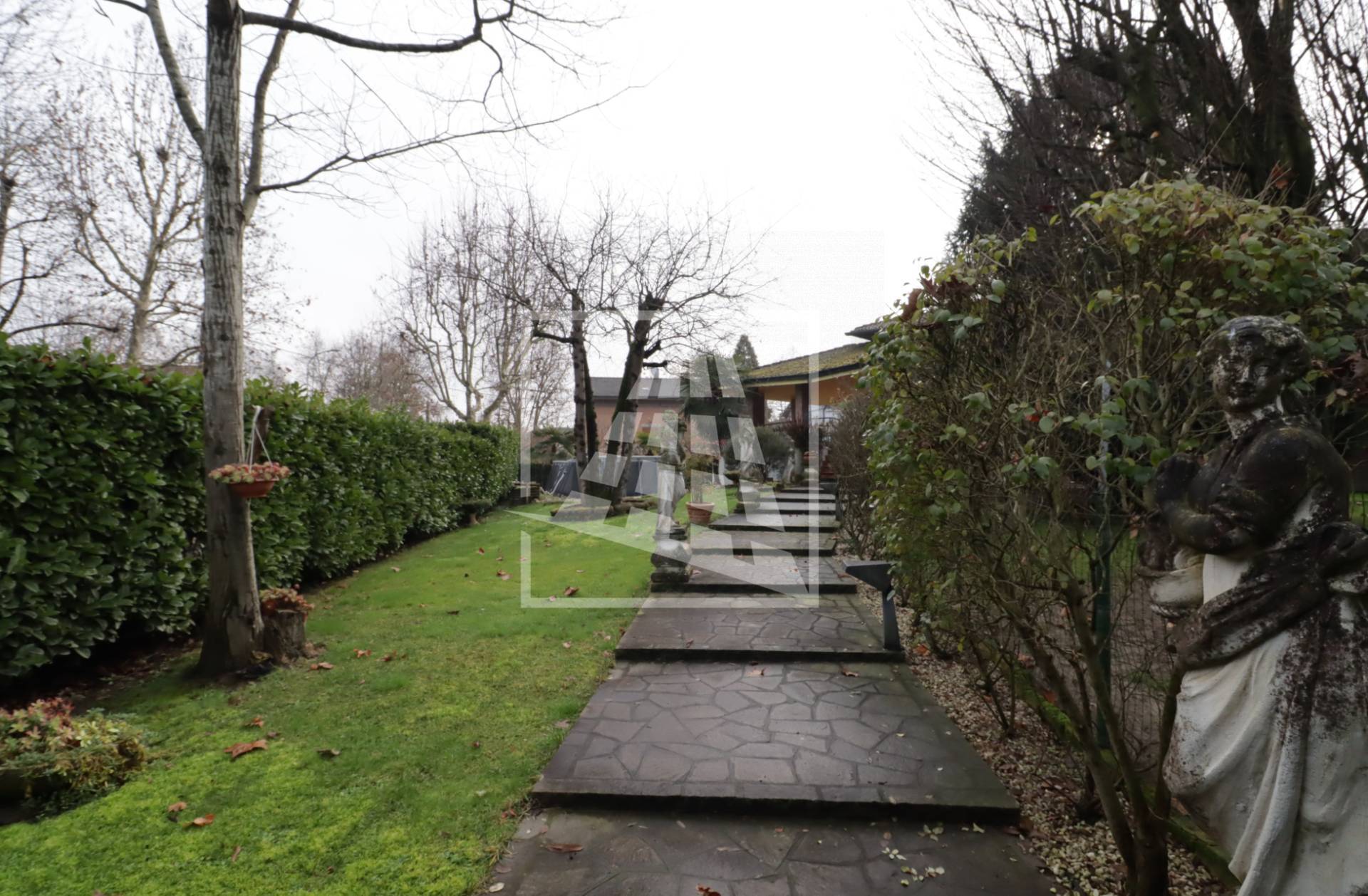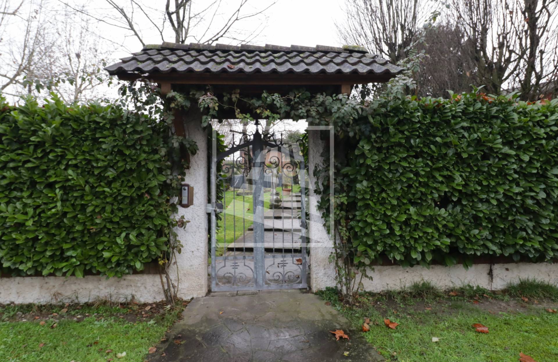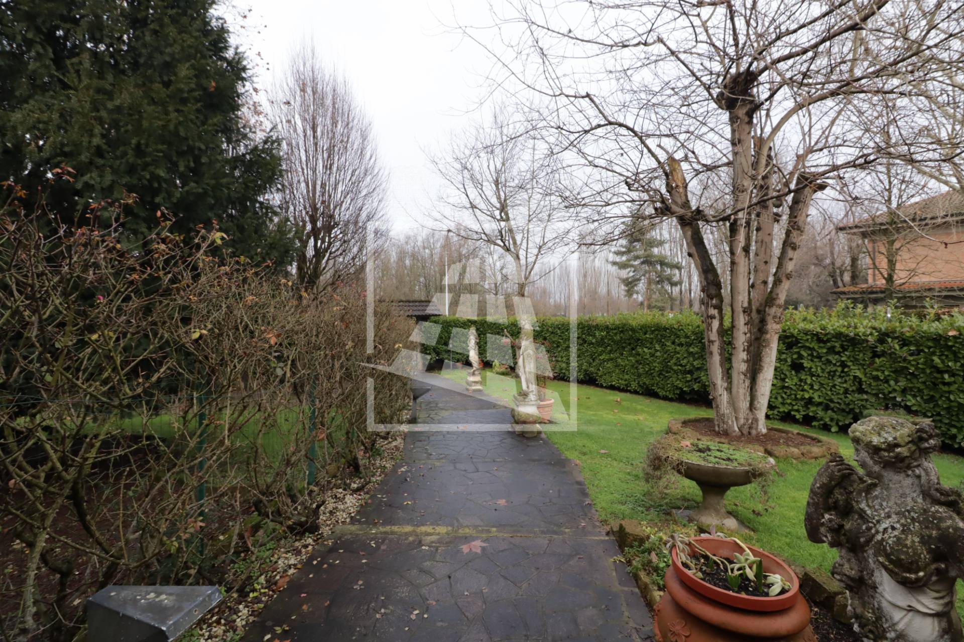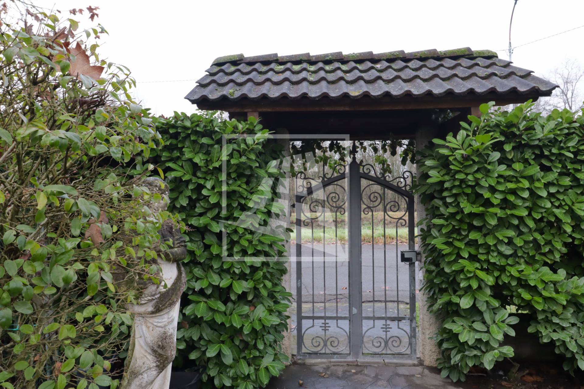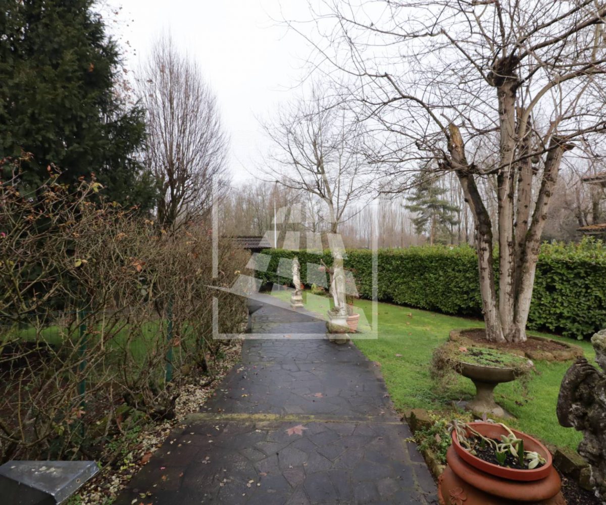 L’accesso alla dimora si distingue per un fascino nobile e d’altri tempi: un lungo vialetto pedonale attraversa il rigoglioso giardino privato, accompagnando lo sguardo tra eleganti statue d’ispirazione classica che le conferiscono un carattere unico.