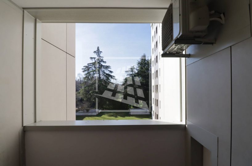L’immobile è composto da un ingresso che conduce al soggiorno con angolo cottura, servito da una loggia esposta a Sud con un piacevole affaccio nel verde.