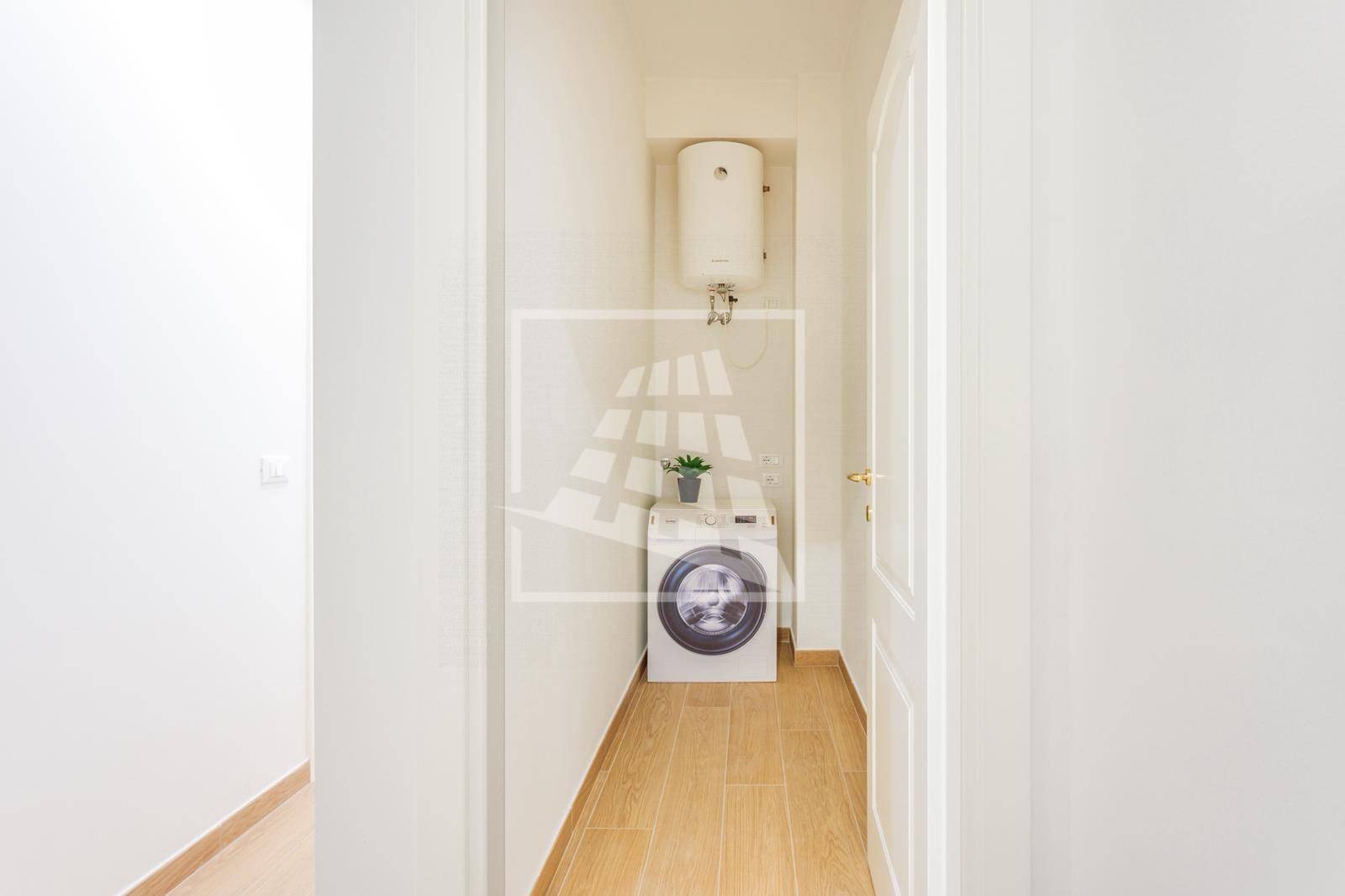 L’ingresso dell’abitazione accoglie con un pratico ripostiglio, già predisposto per ospitare lavatrice e asciugatrice, ottimizzando al meglio gli spazi.